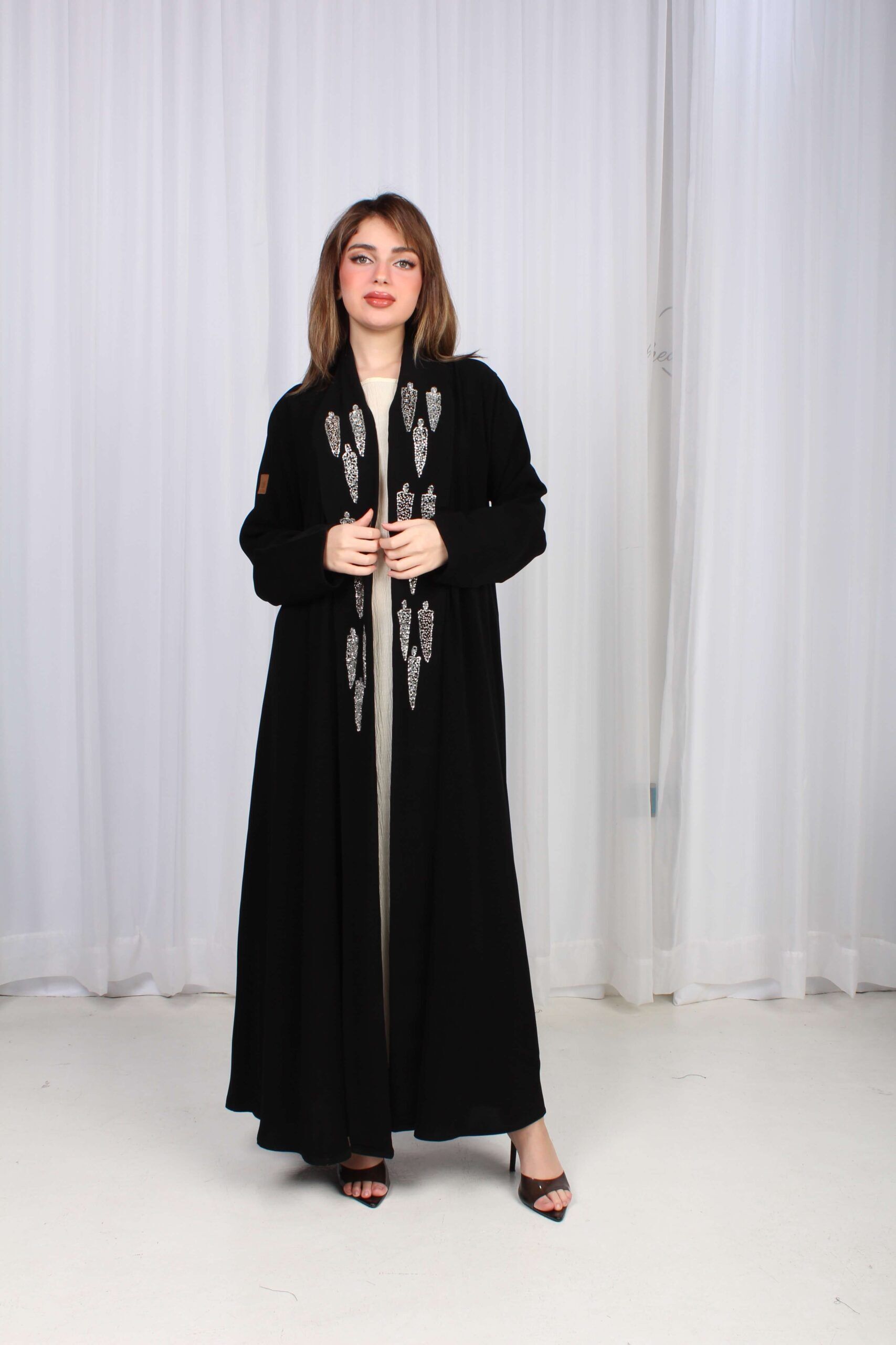 فخامة اللون الأسود لا يضاهيها شيء ، فما بالك بعباية شك كلاسيك فخمه مطرزة يدوياً بالخرز ، مصممه بإبداع من قماش تيجان عالي الجودة ، و تطريز شك بلون ابيض مبتكر ذي لمعة مميزة من امام العباية بنقاط متناثرة ، ستكون اكثر عباية سوداء شيك في خزانتك ، تناسب مختلف المناسبات و الأوقات