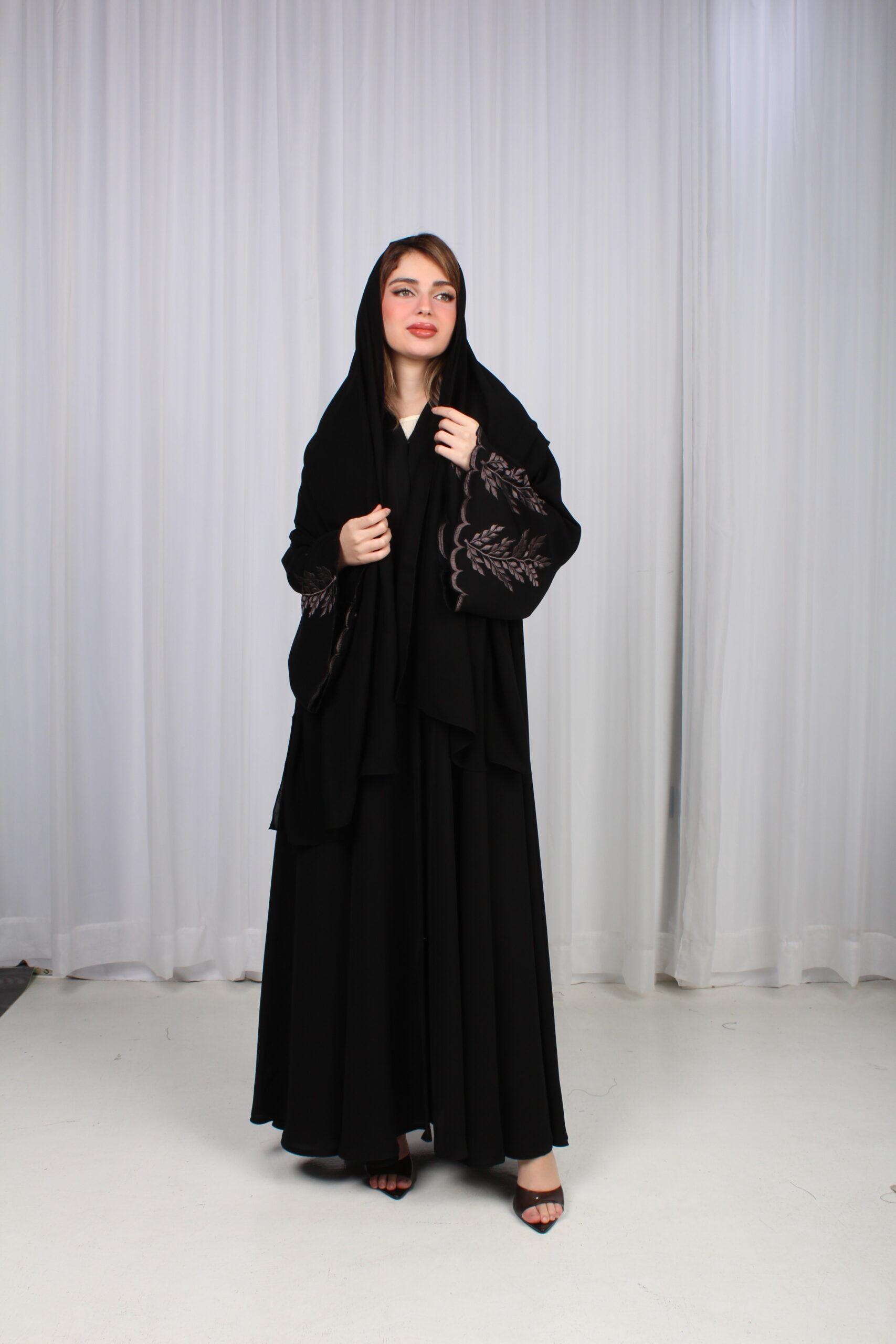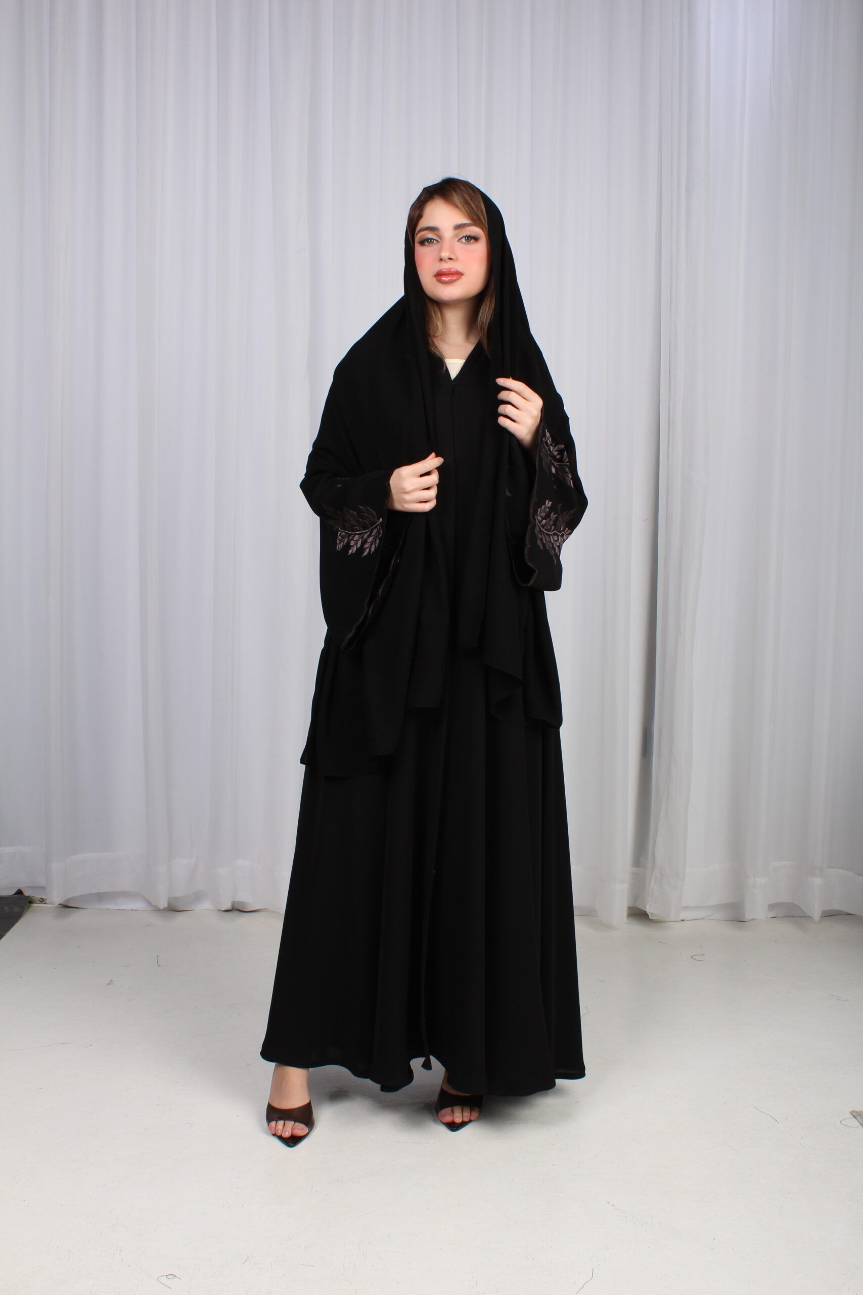 مميزات عبايه كتف مطرز اسود مخفى على الكم :
