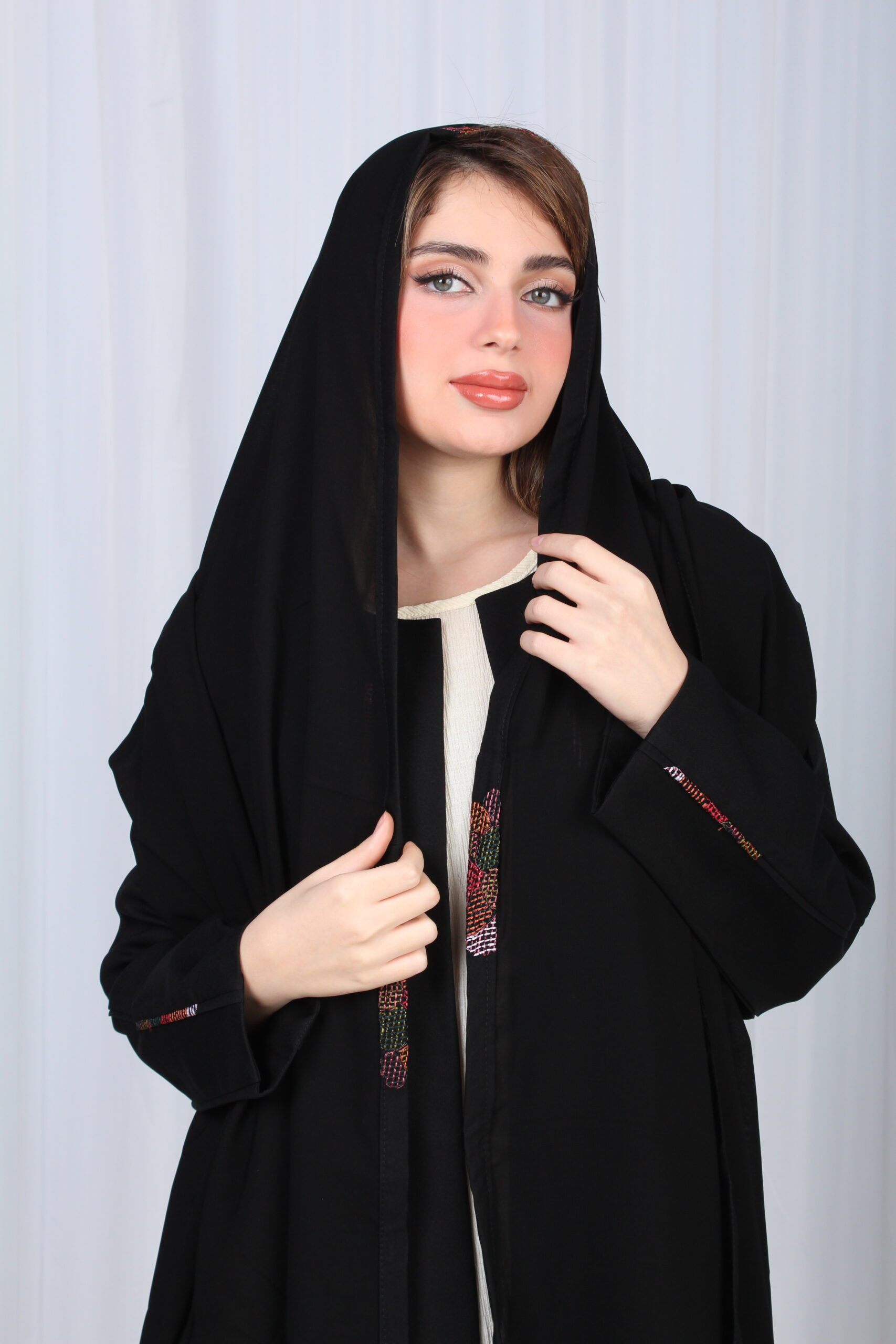 عبايه بقصة اماراتي بتطريز شك مخفي مميز
