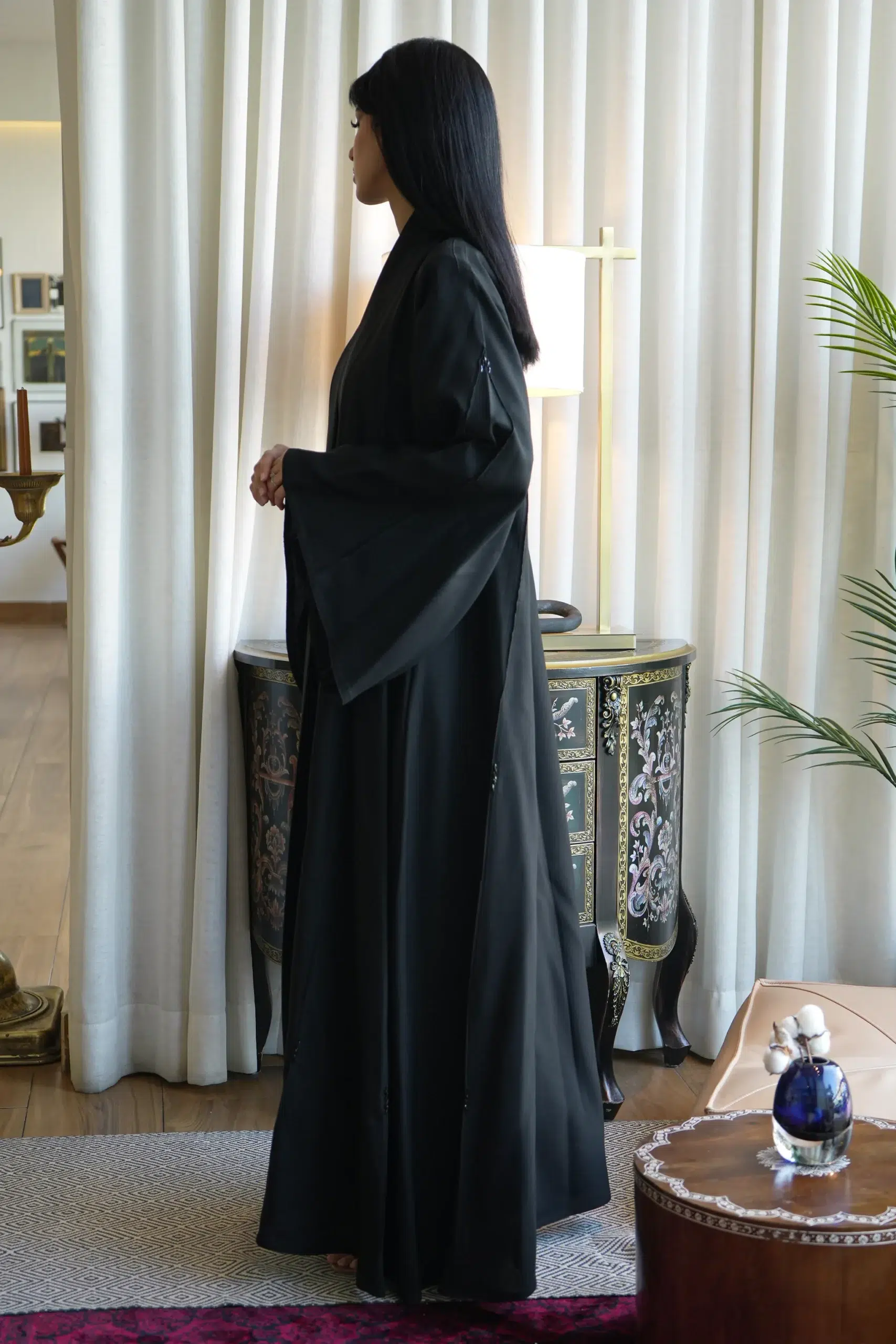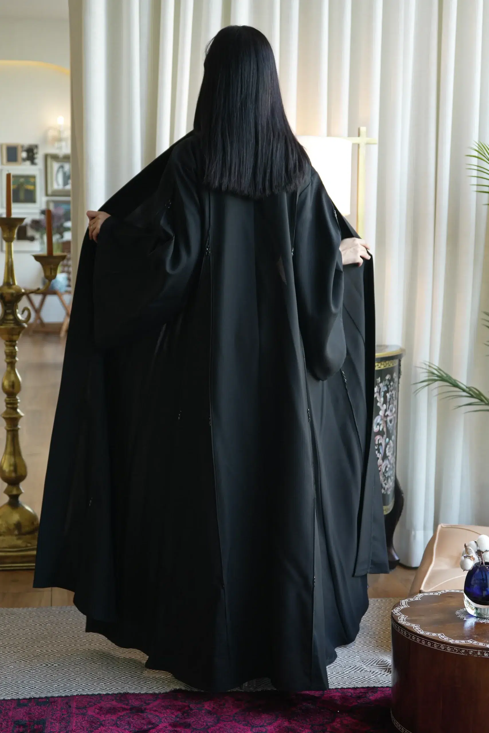 - تميزت العباية بتصميمها العصري الجذاب، حيث توفرت في متجرنا باللون الاسود الحالك الذي يتناسب مع جميع الاذواق.