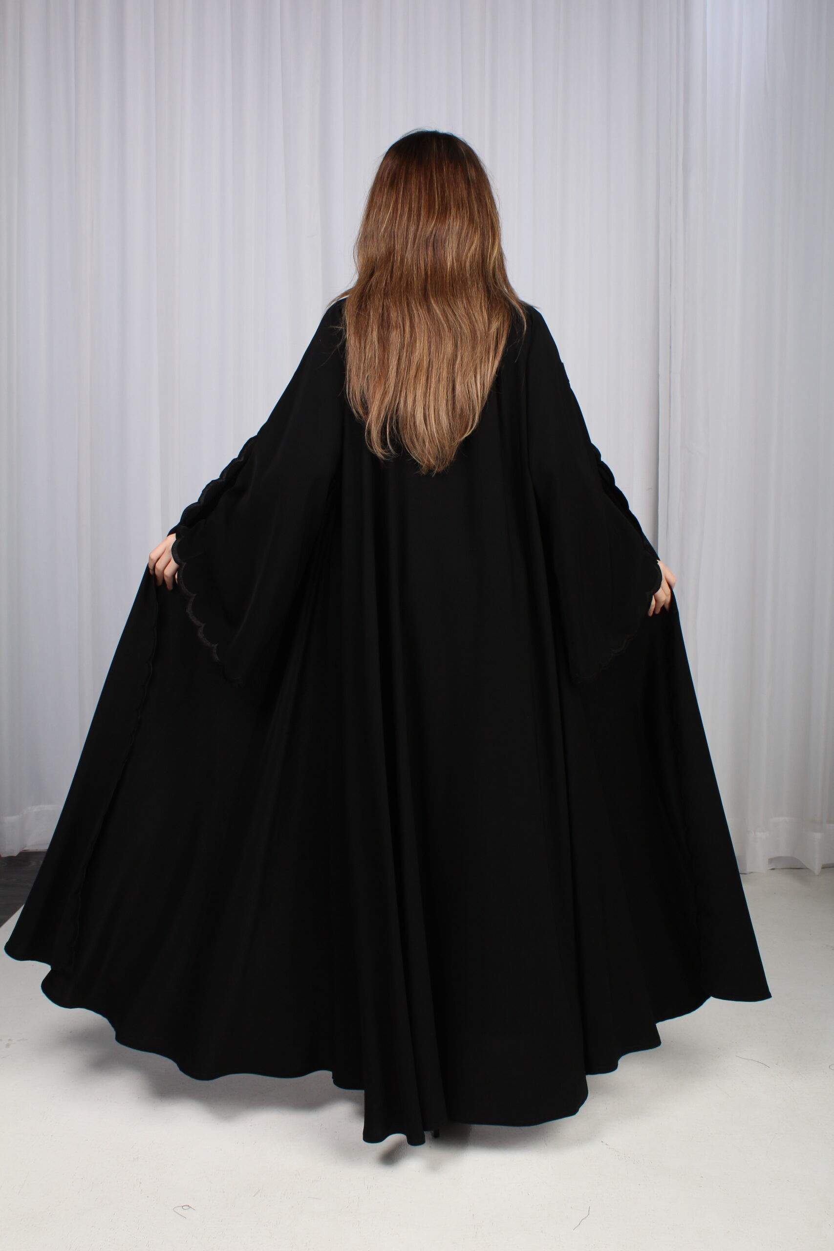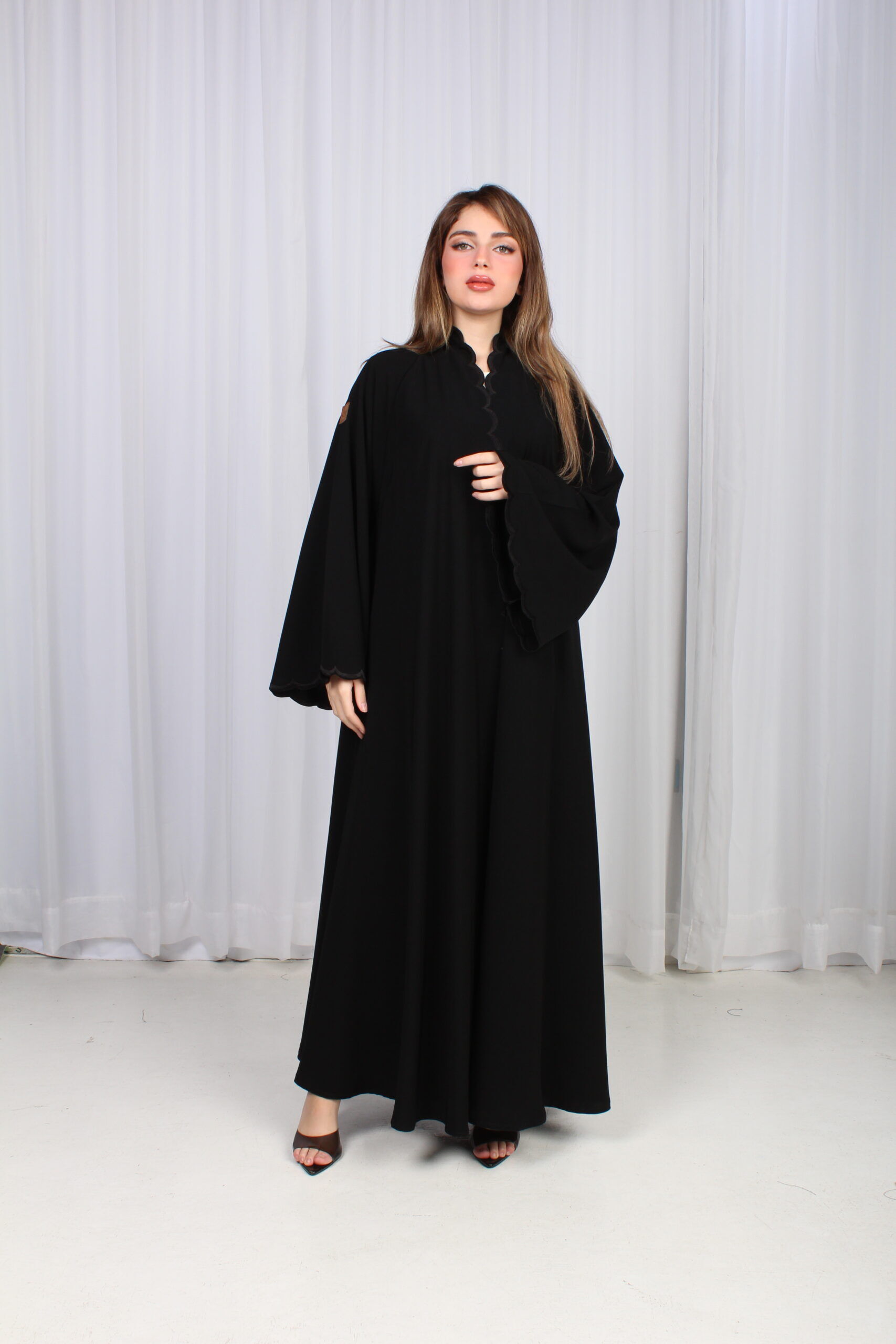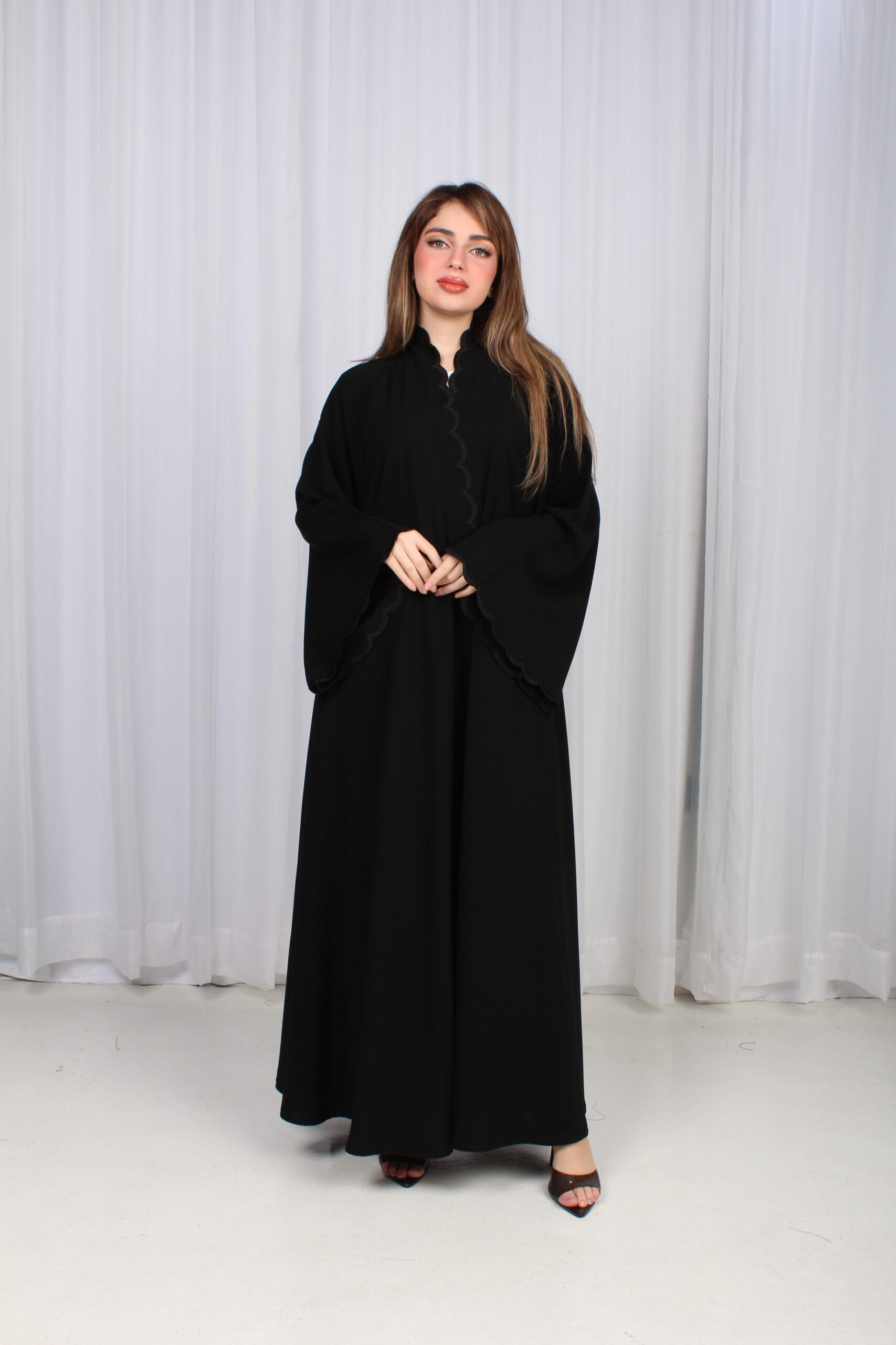 عباية كلوش بتطريز مموج من الأكمام و امام العباية