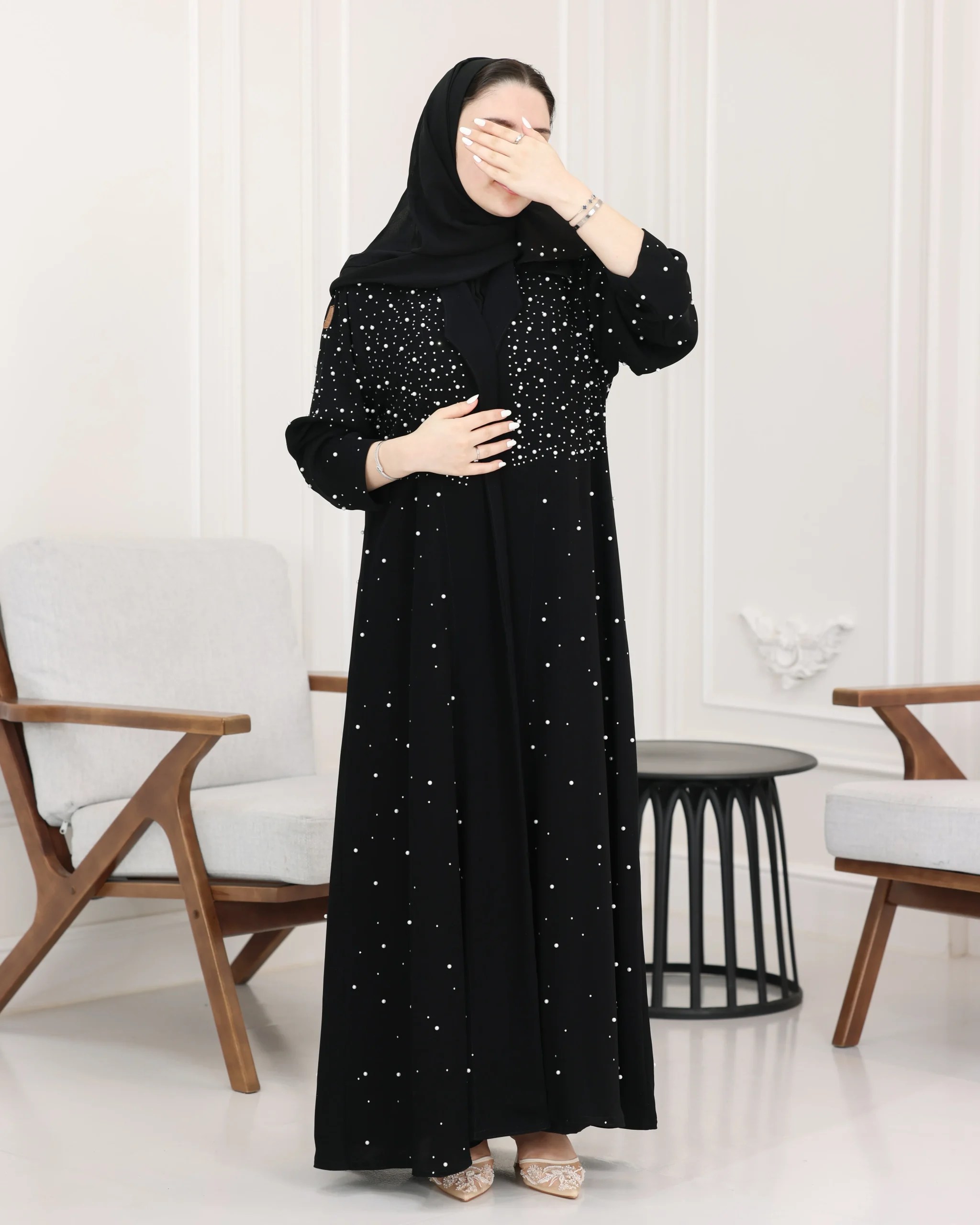 مواصفات عباية لوسين باللؤلؤ الأبيض نص كلوش: