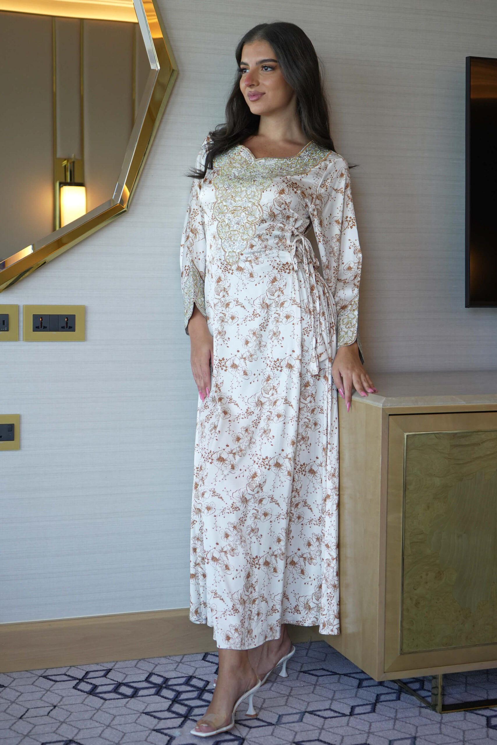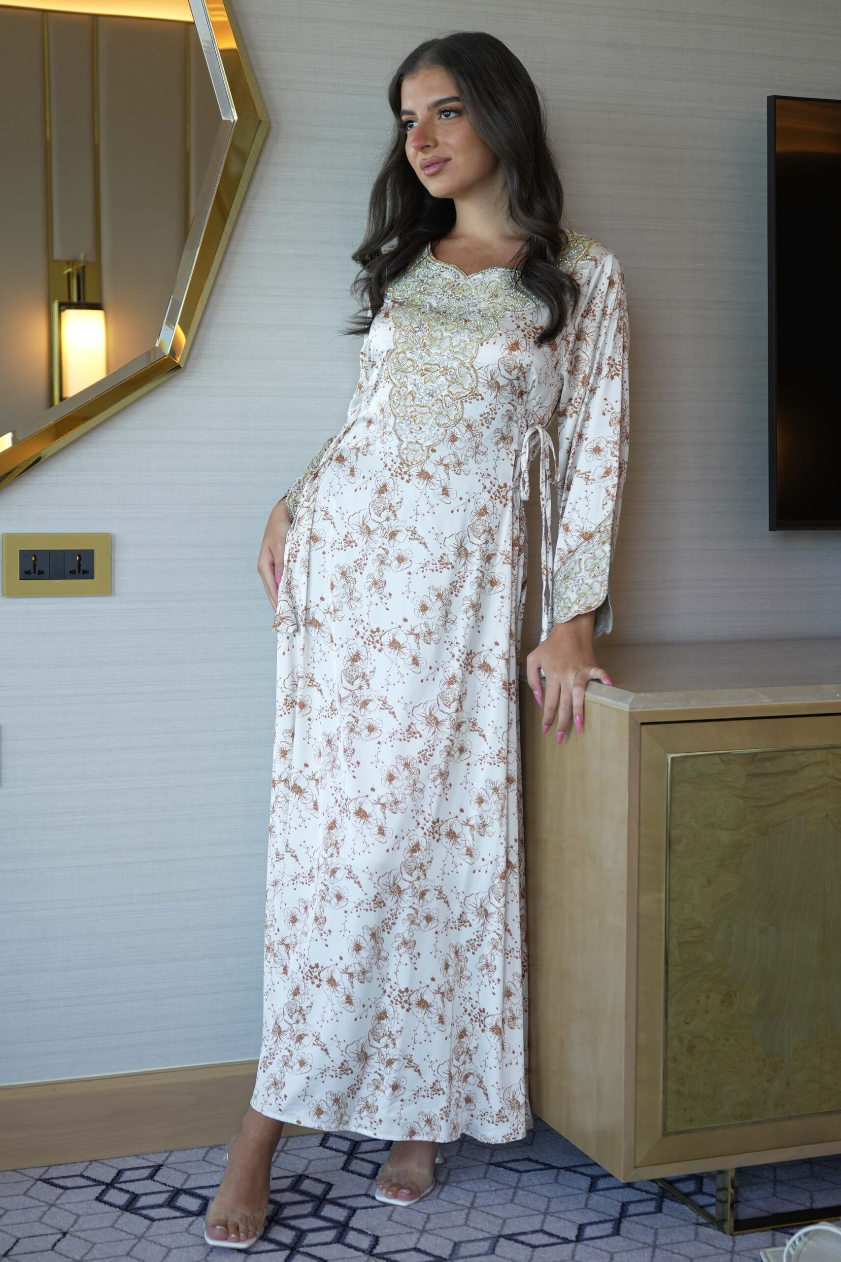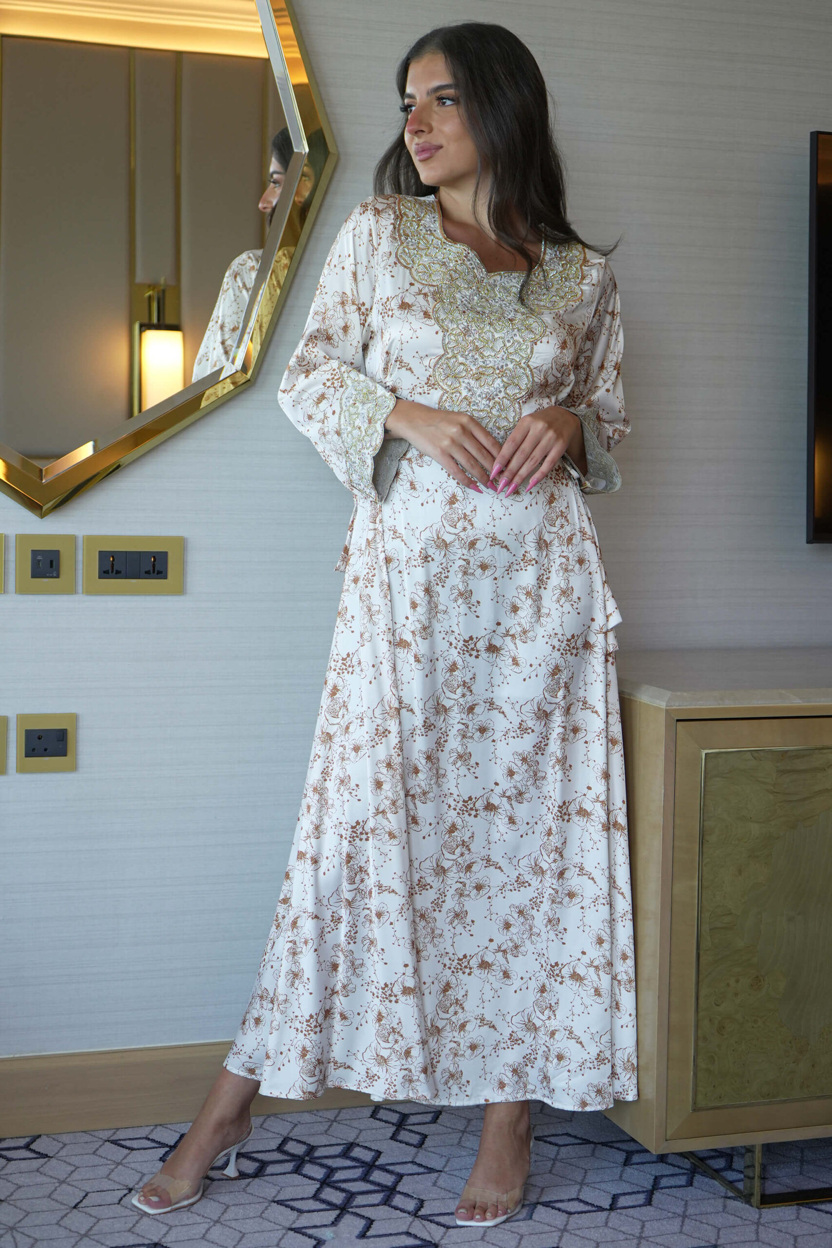 جلابيه بتطريز عربي وبكم وسيع بيج