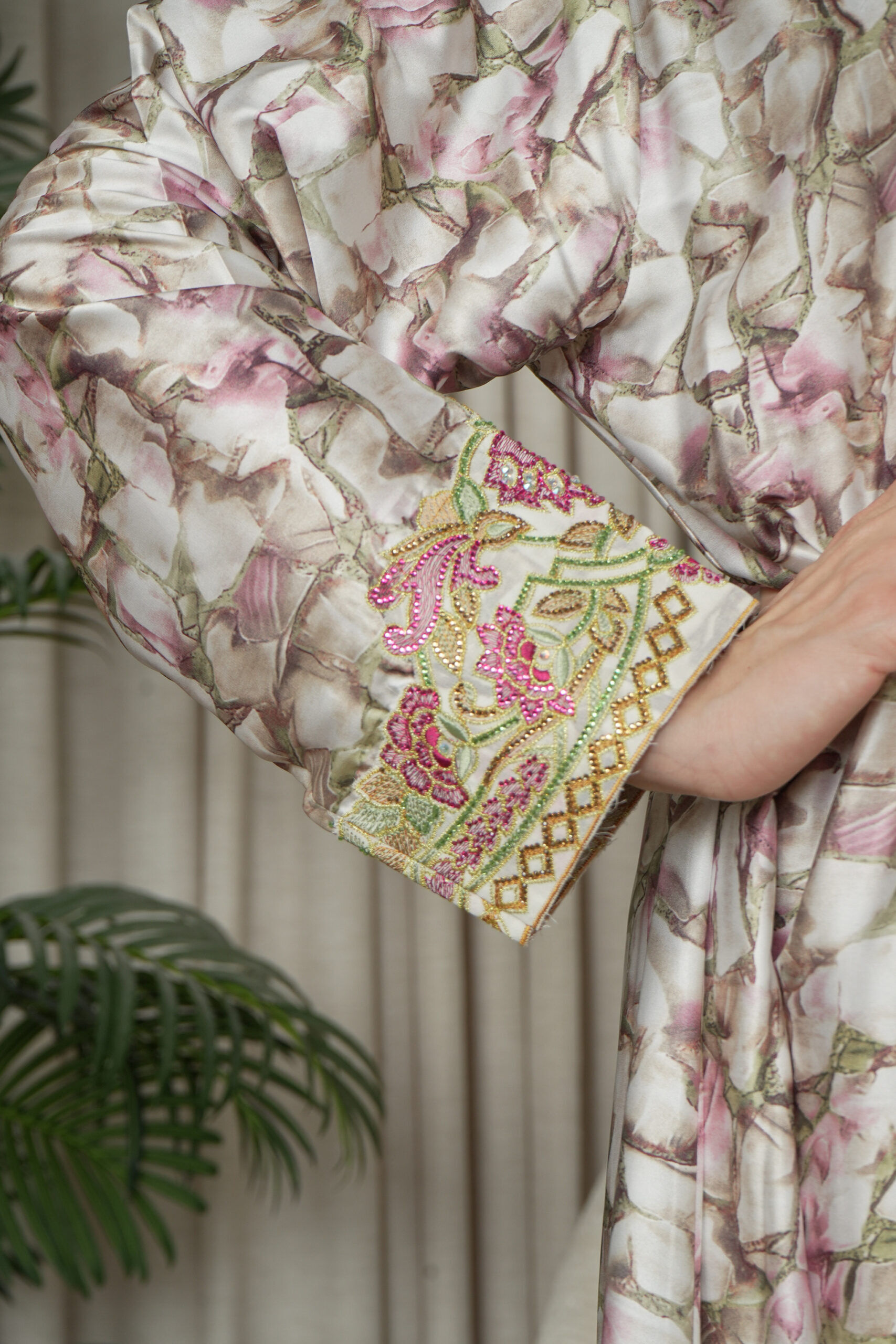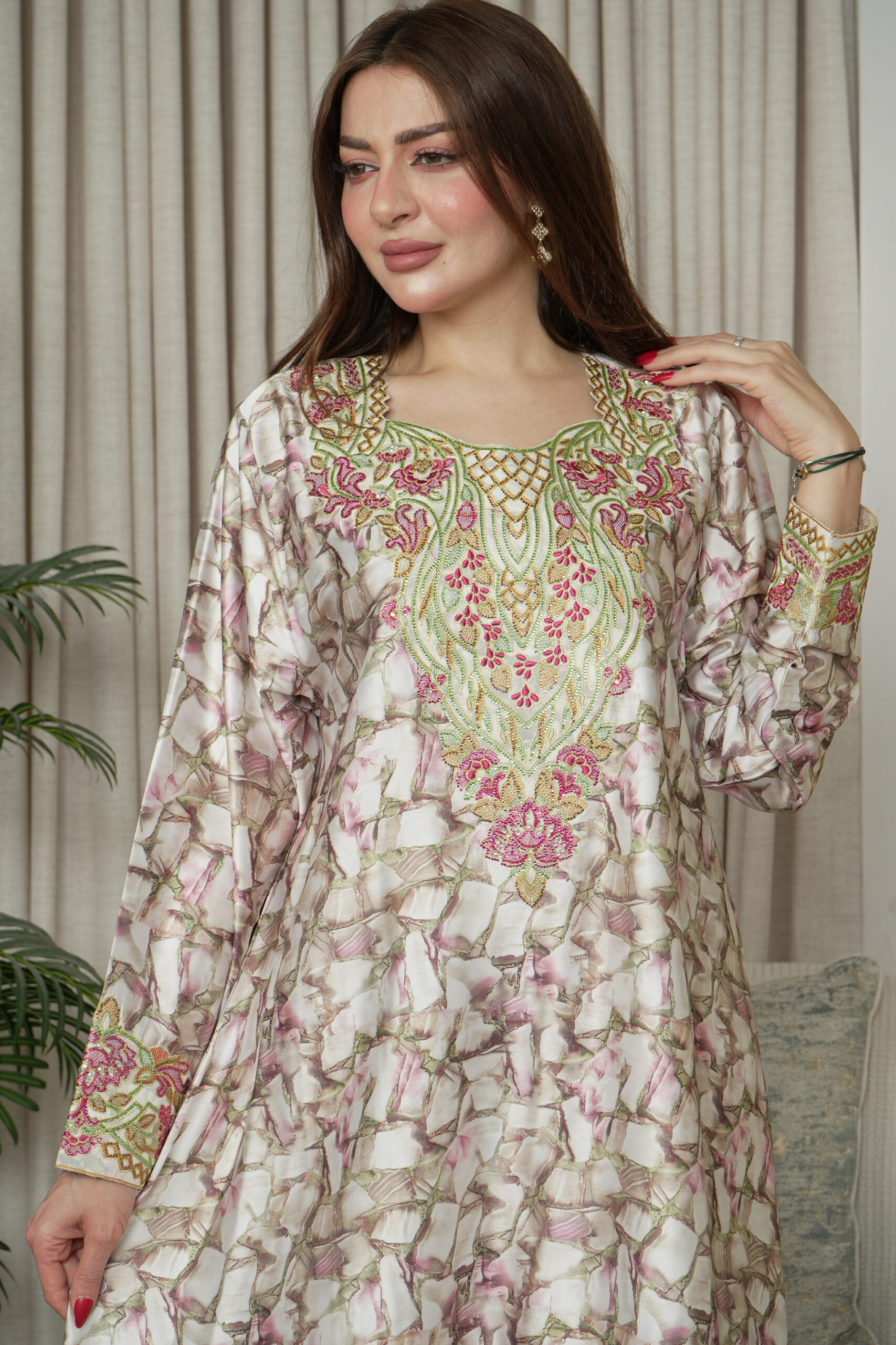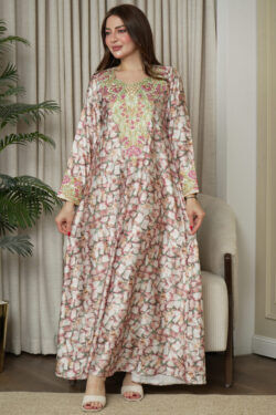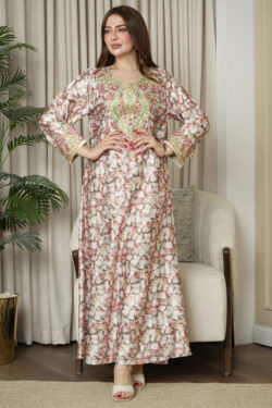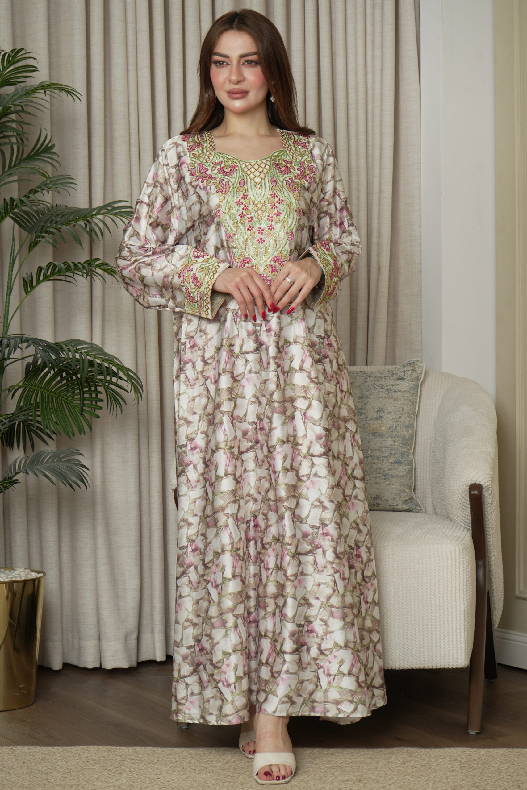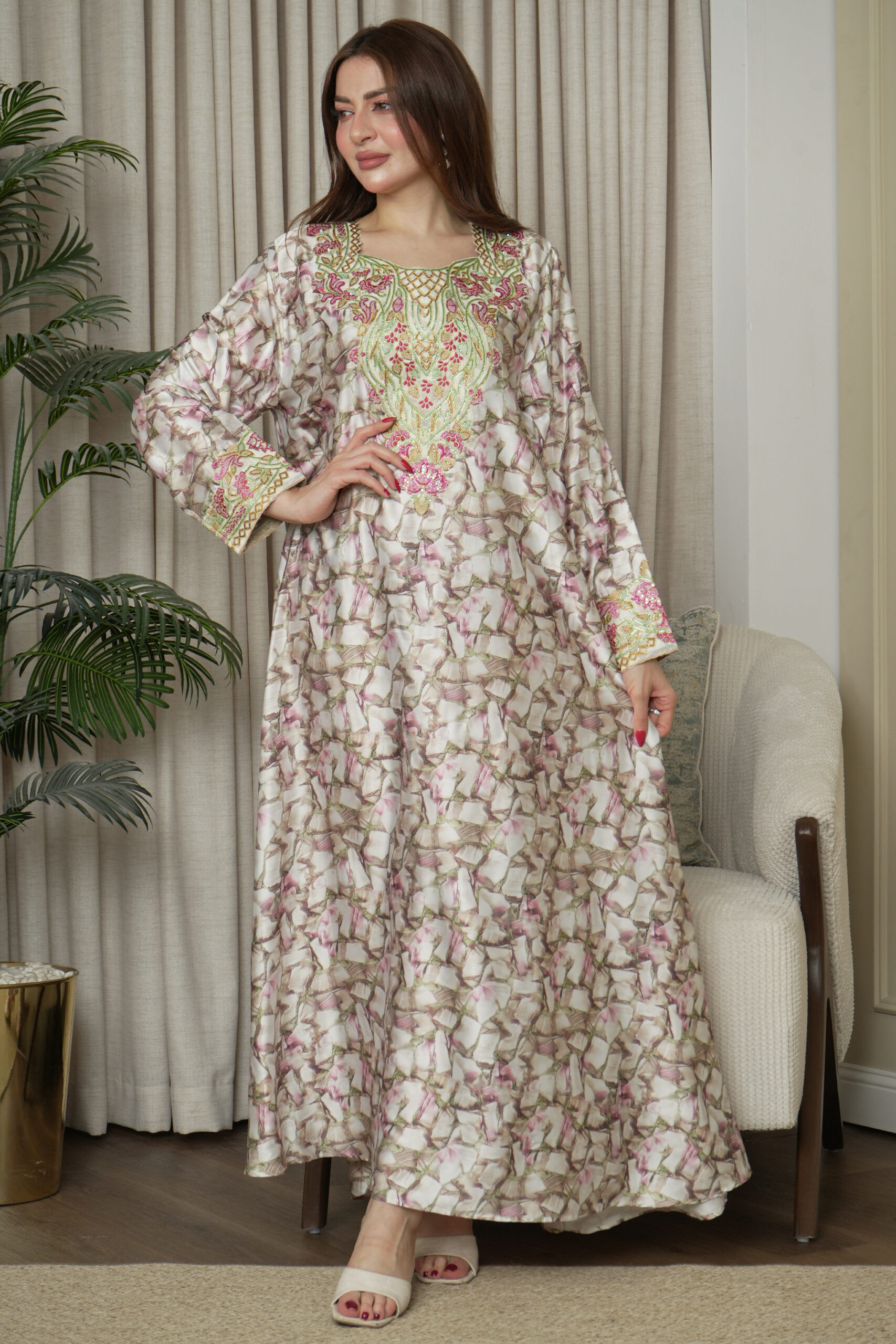 جلابيه بتطريز عربي وبكم وسيع بيج
