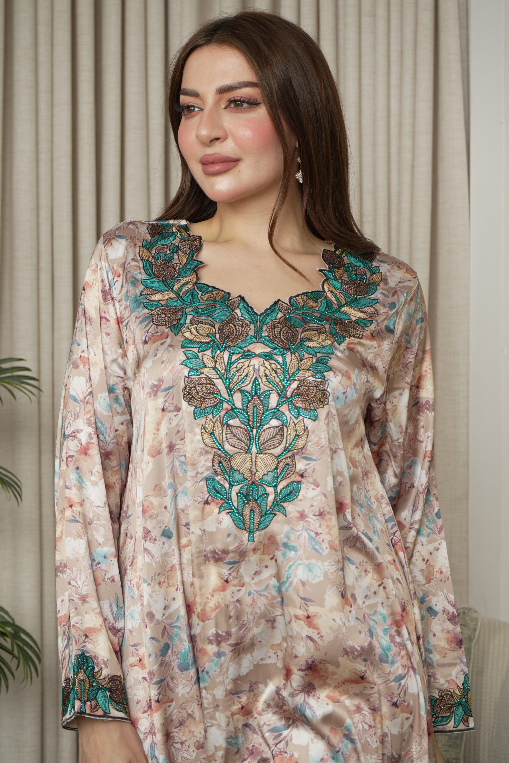 جلابيه خليجى بتطريز شك و فصوص من امام