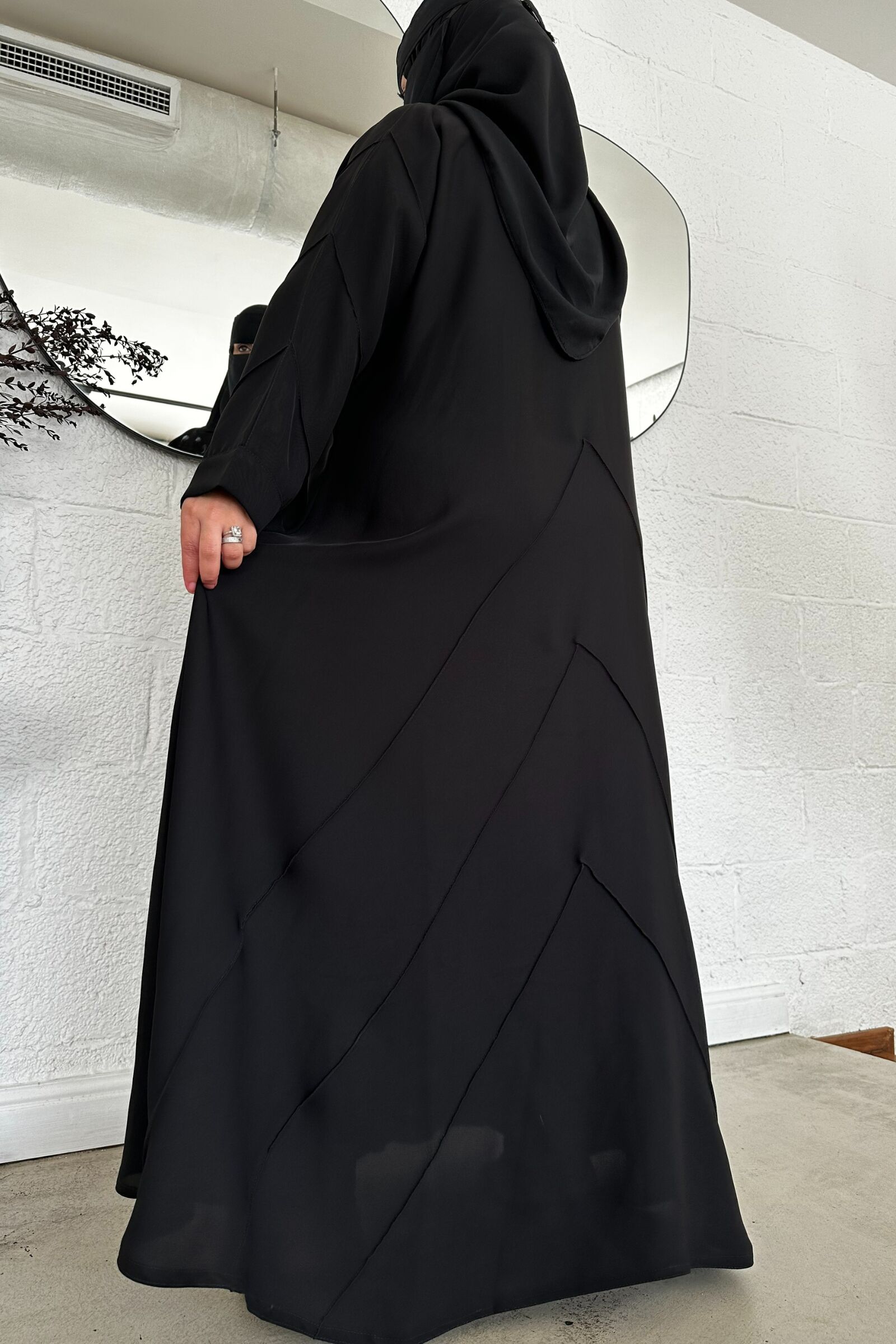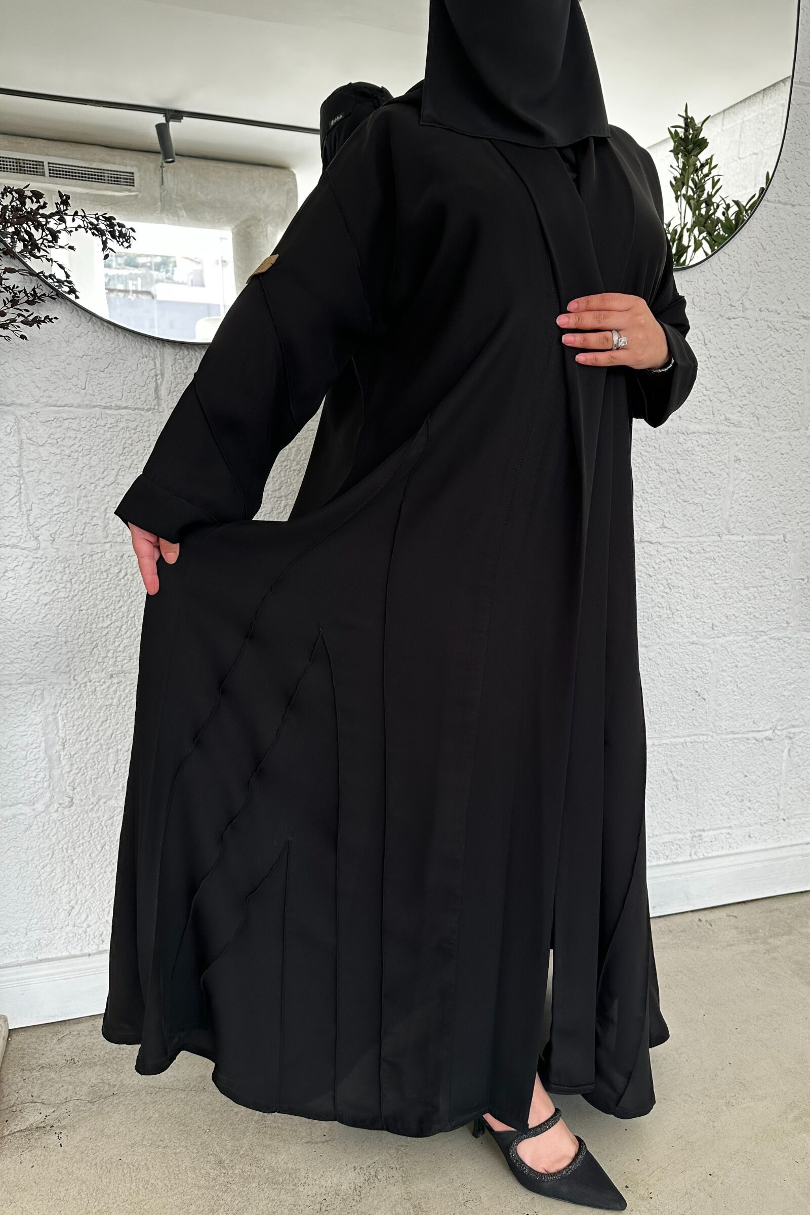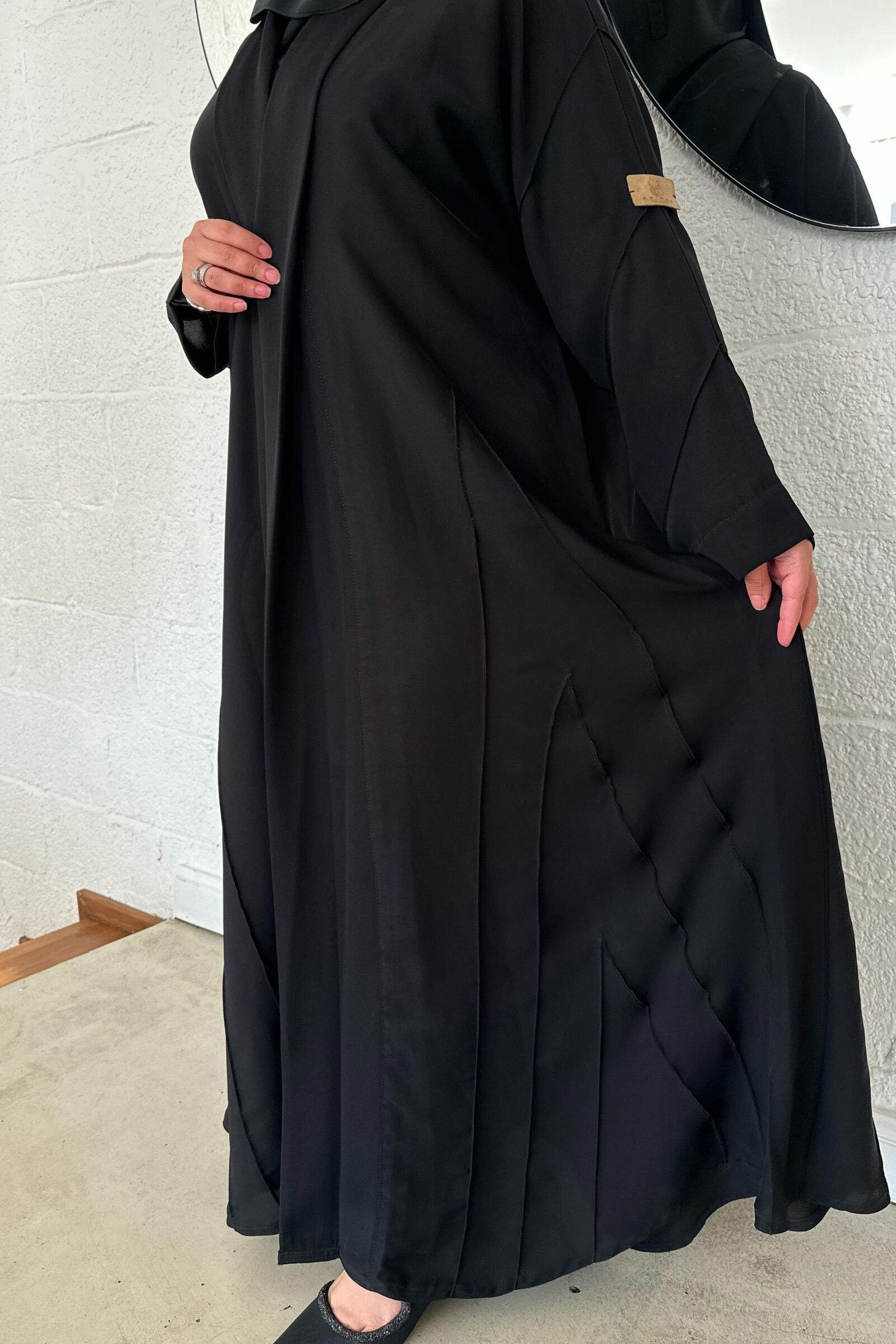 عبايه مغلقة بكسرة كلوش بجيوب مخفى وكم مطاط