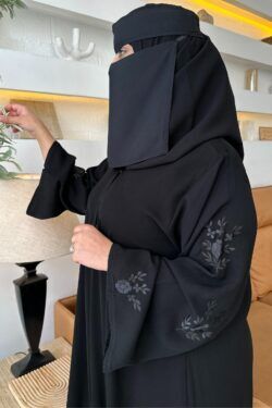 مواصفات عبايه بشك اسود على اكمام بشكل ورد :
