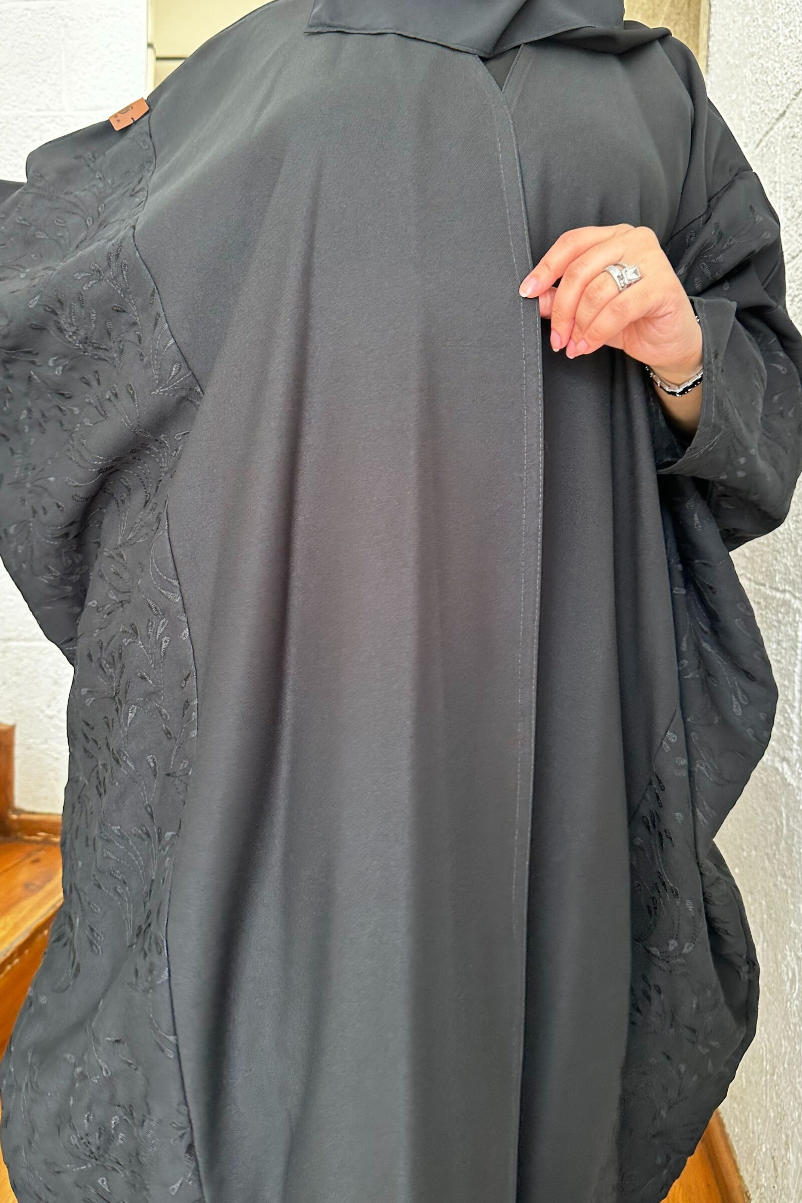 عبايه كتف بكسرات جانبيه اسود بشكل مميز