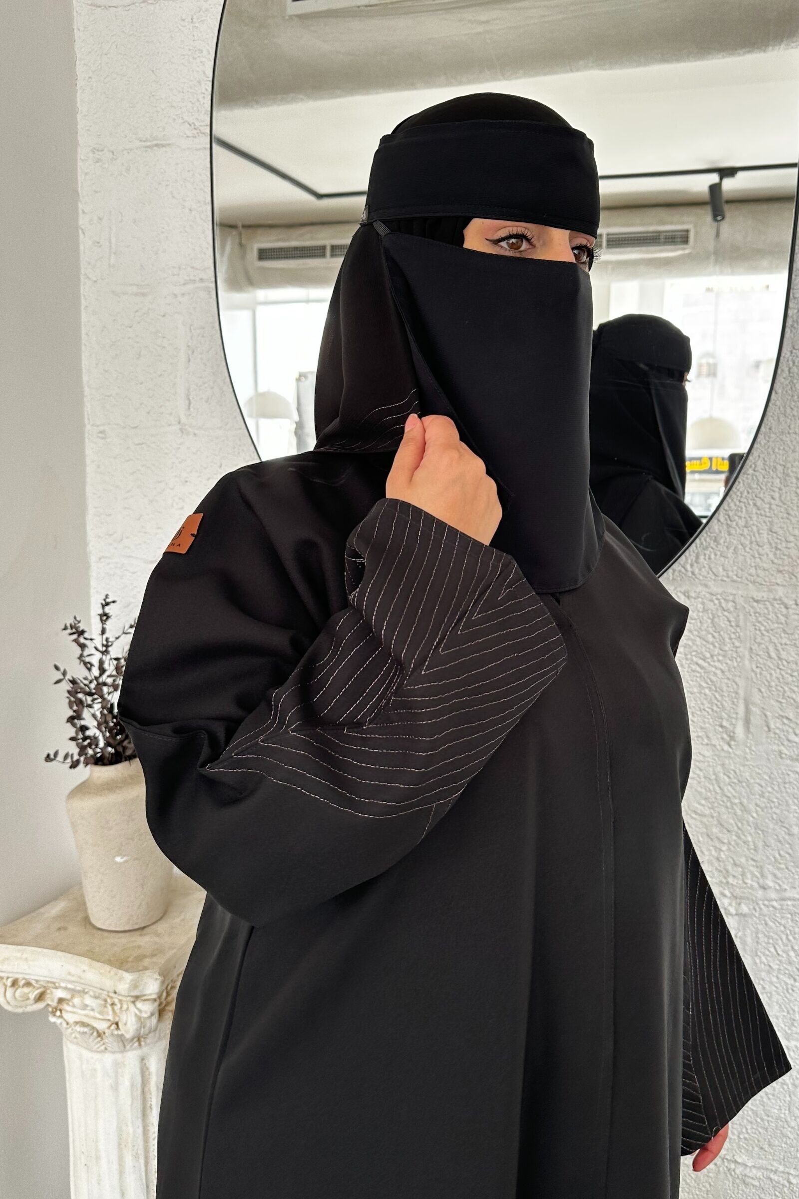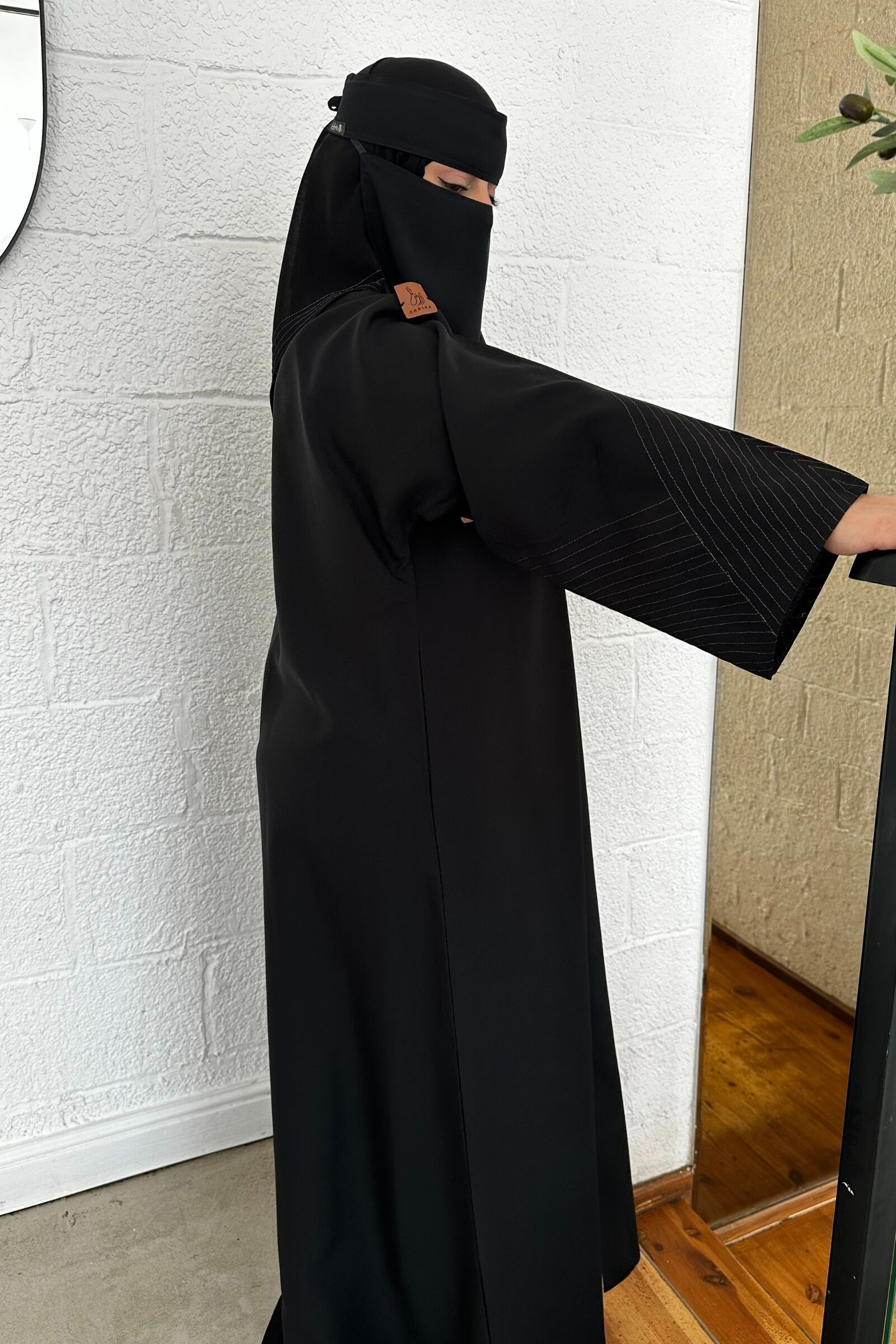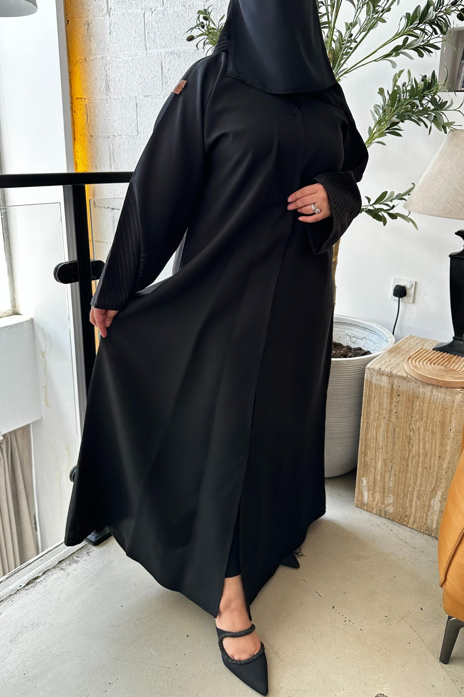•عباية سوداء بقصة رسمية مطرزة بقصب