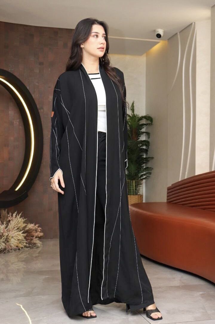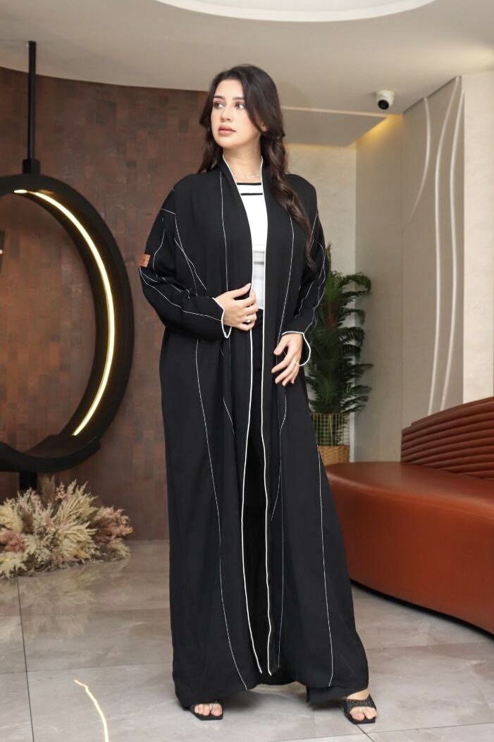 نقدم عبايه اسود ناعمه ومريح جدا المتميز بأسلوبها الرائع والأنيق، والتي تتميز بأكمام مصفوطه ودقه خياطه بلون الابيض وقصه مفتوحه ، تراعي هذه العباية الذوق والأصالة، لأنها تلبي احتياجات المرأة المحتشمة التي تحرص على تميزها وخروجها بأناقة فريدة ، كما يمكنكِ الحصول على هذه العباية بسعر جذاب ومناسب للغاية ،