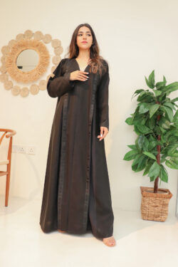 تألقي بأناقة لا مثيل لها مع هذه العباية الكلاسيكية المزينة بتطريز على اجناب. تتميز هذه العباية بتصميمها الراقي والفخم الذي يضفي لمسة من الجمال والأنوثة على مظهرك.