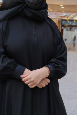 عبايه مغلقة بكسرة كلوش بجيوب مخفى وكم مطاط