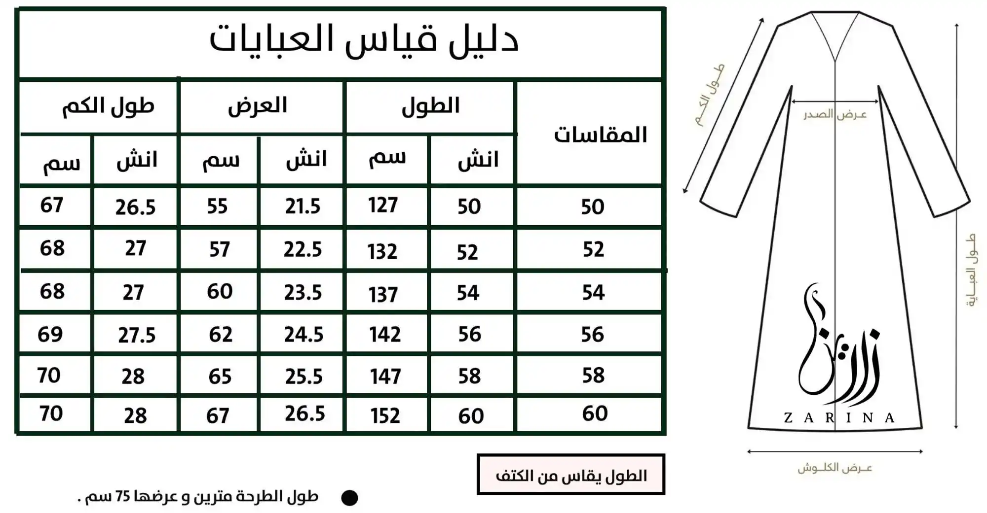 دليل مقاس العبايات