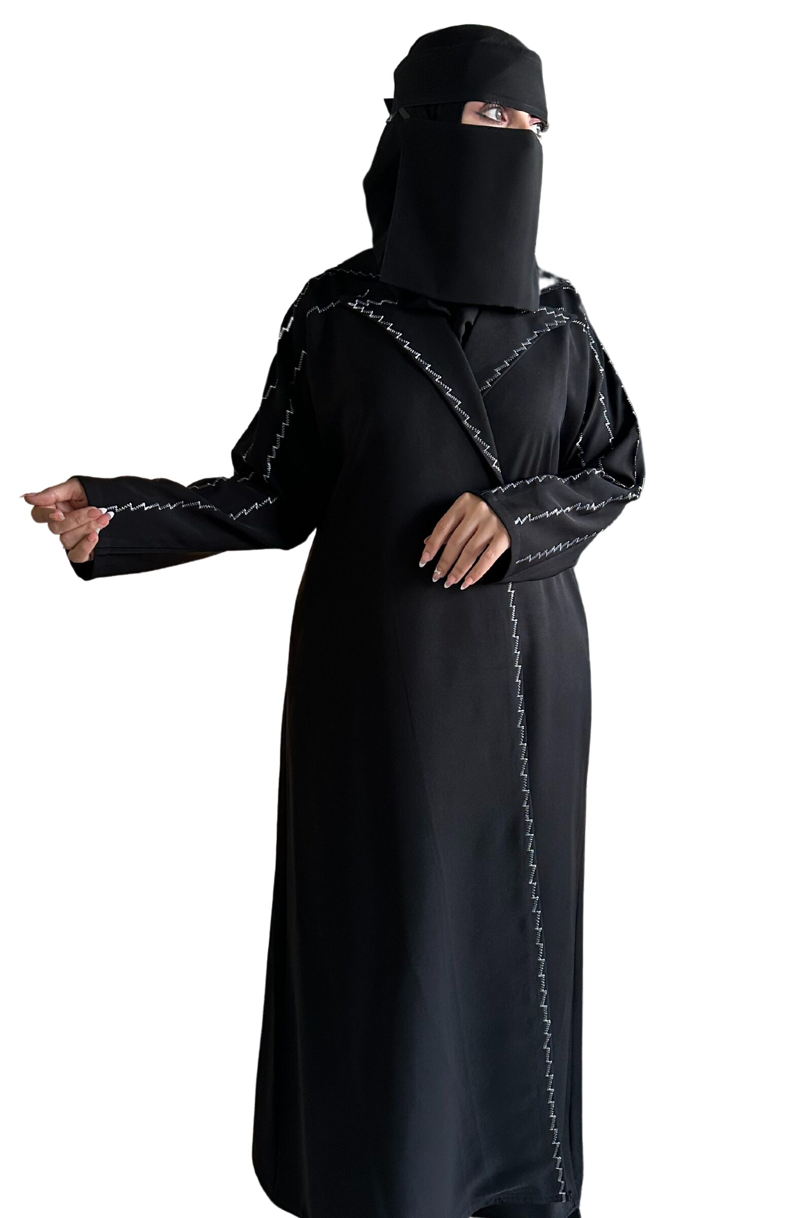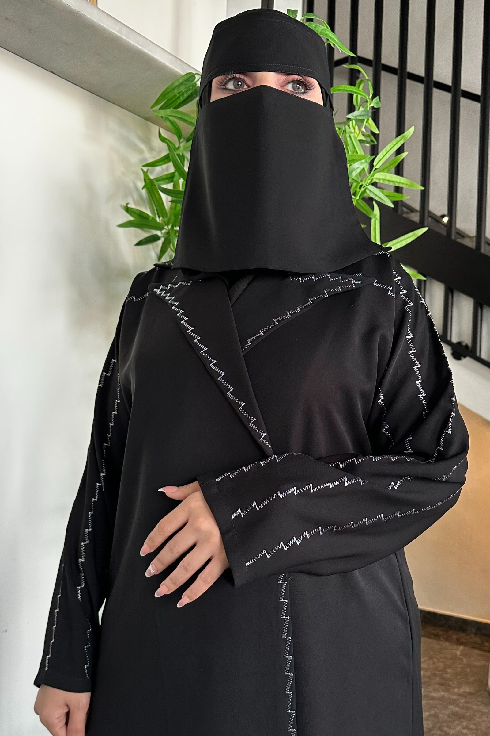 العباية كويتية خفيفة وسوداء بالكامل مميزة بأنها بلف او بالطقطق