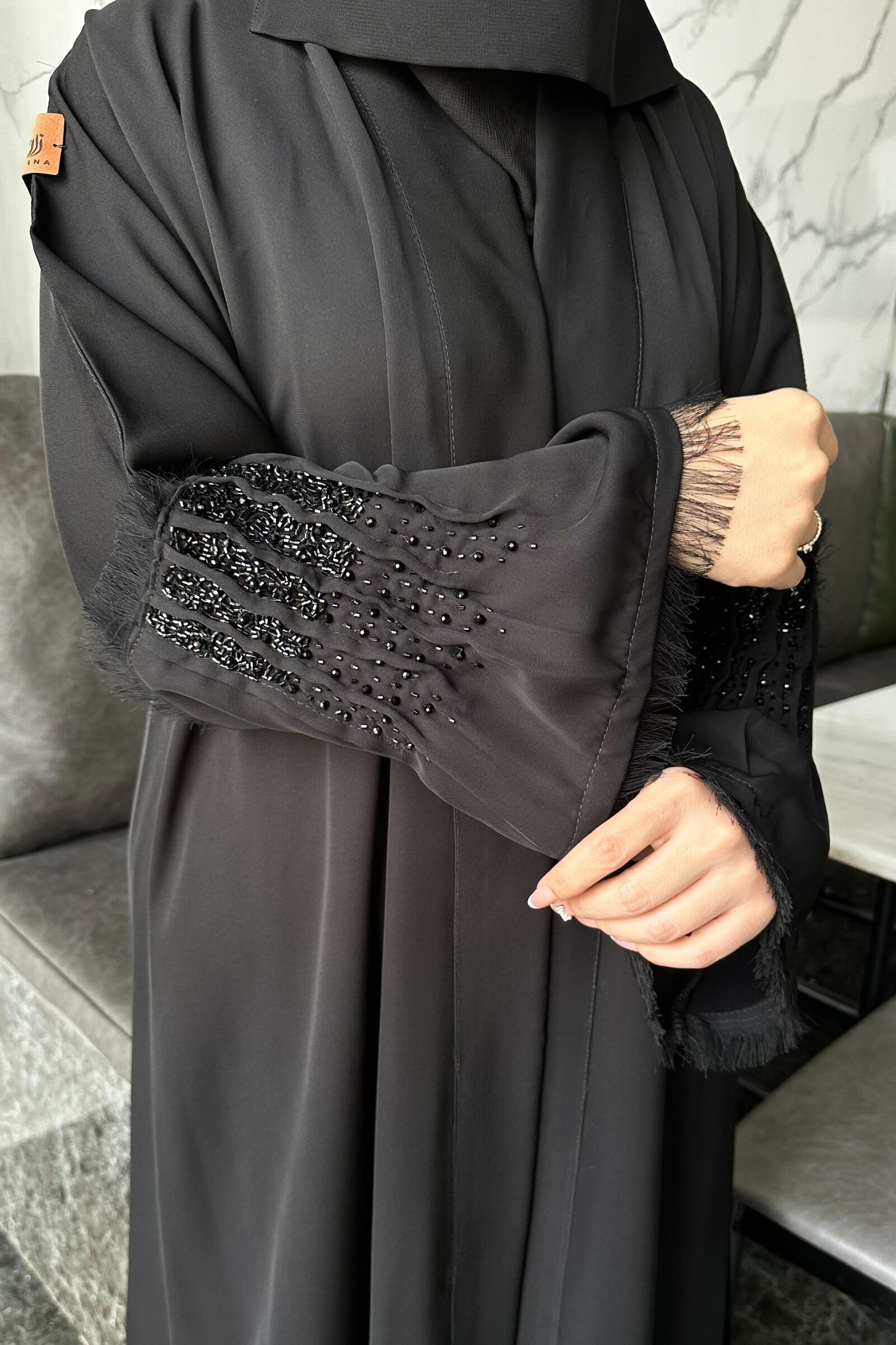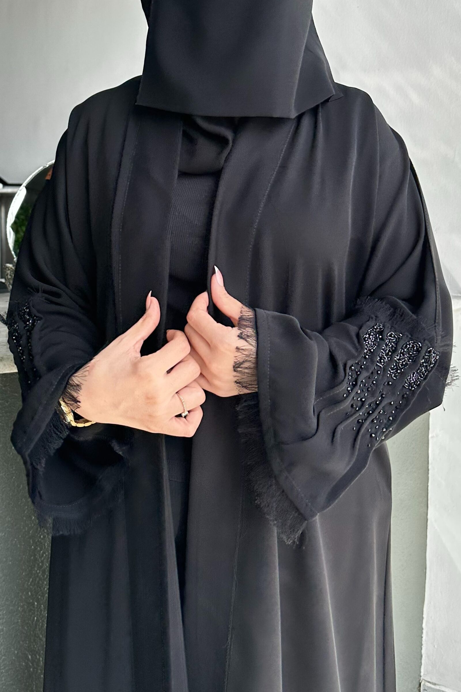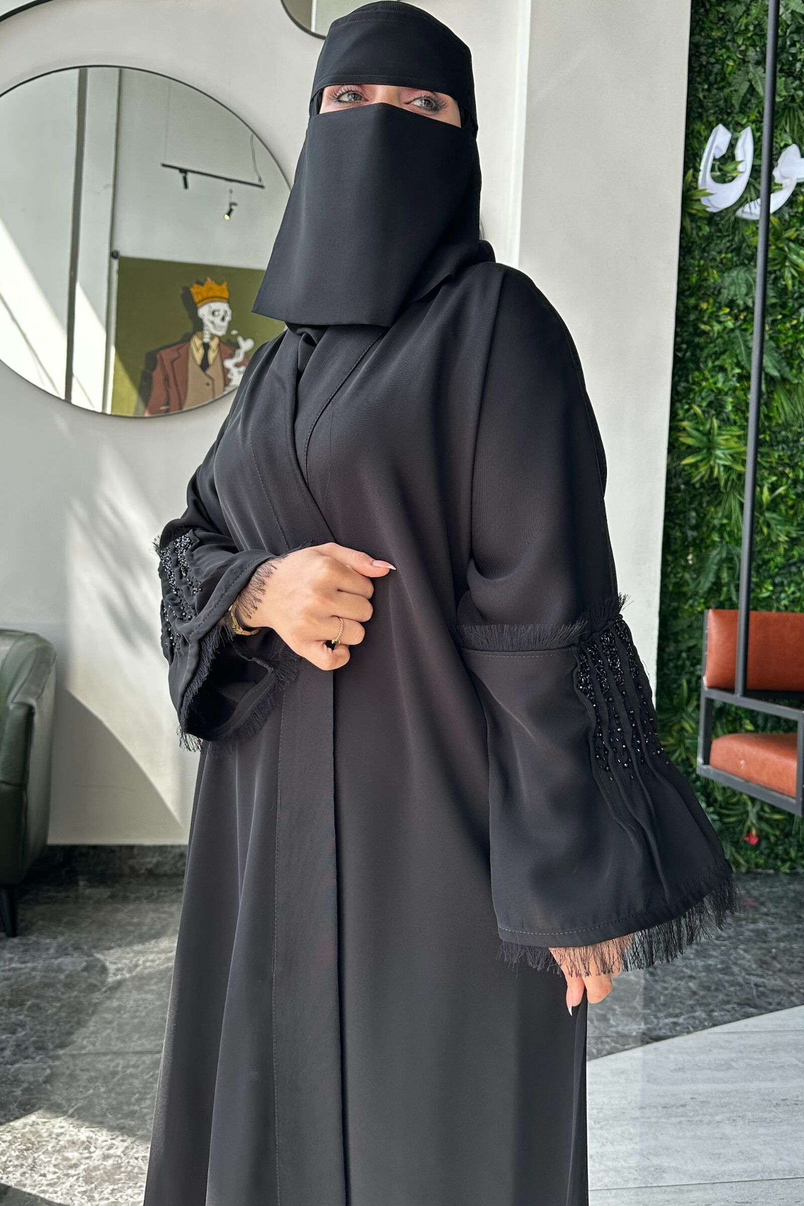 عباية شيك اسود على يد بلون اسود و محدد بكسر