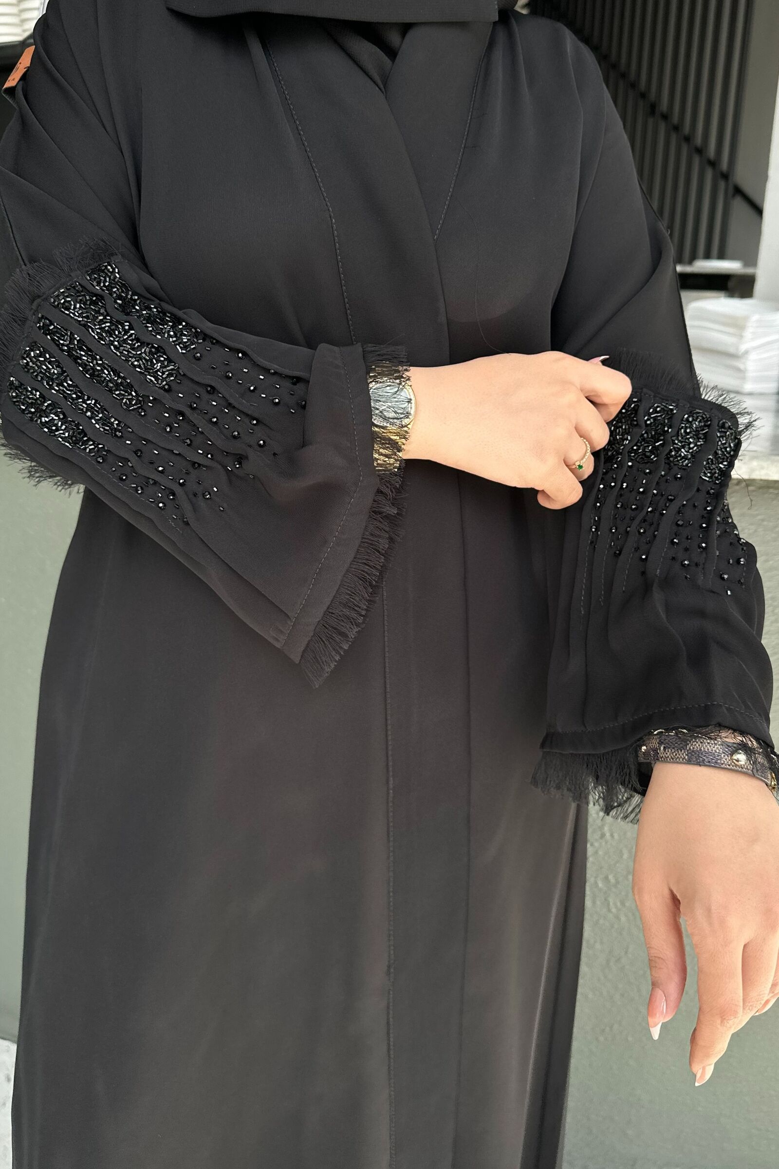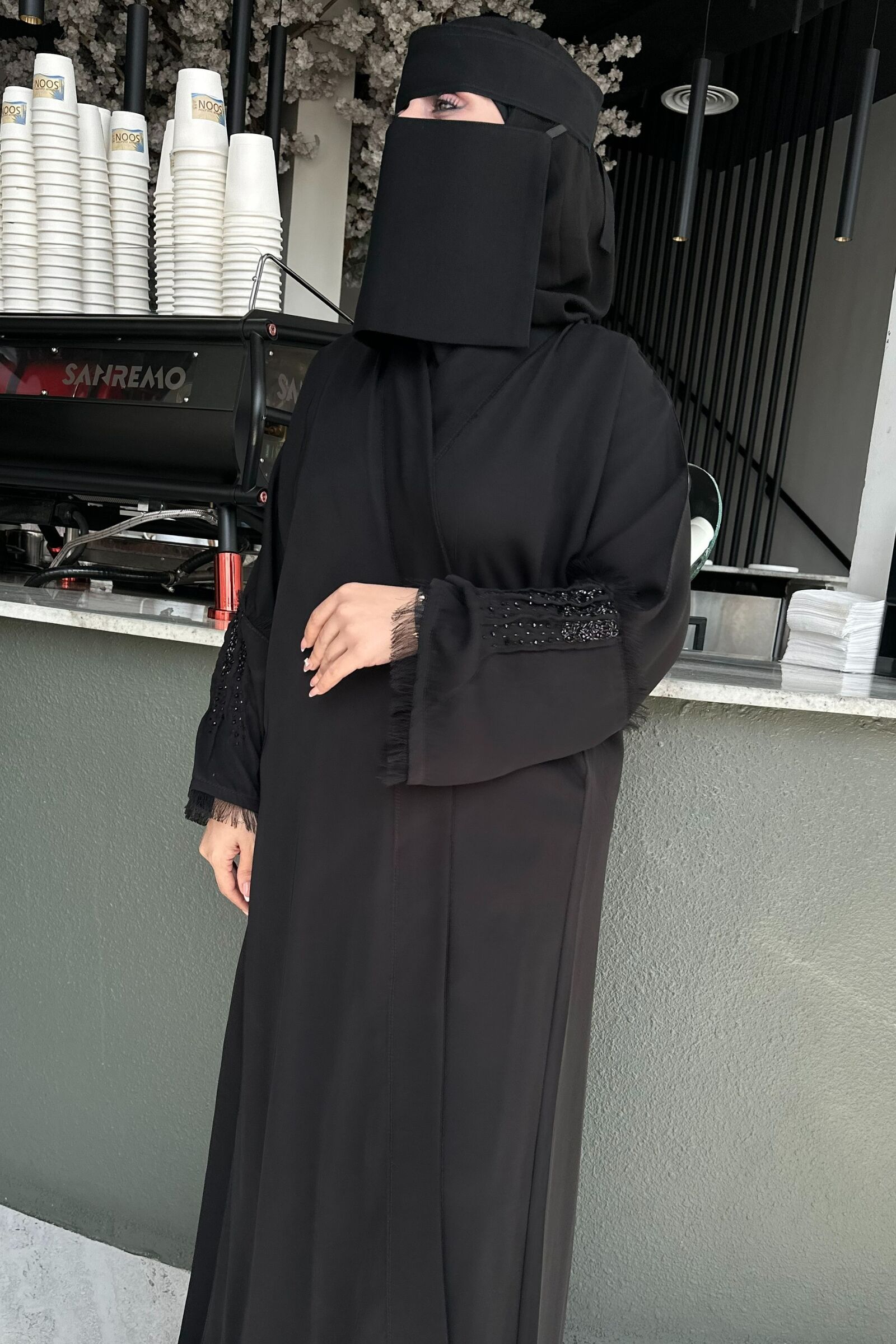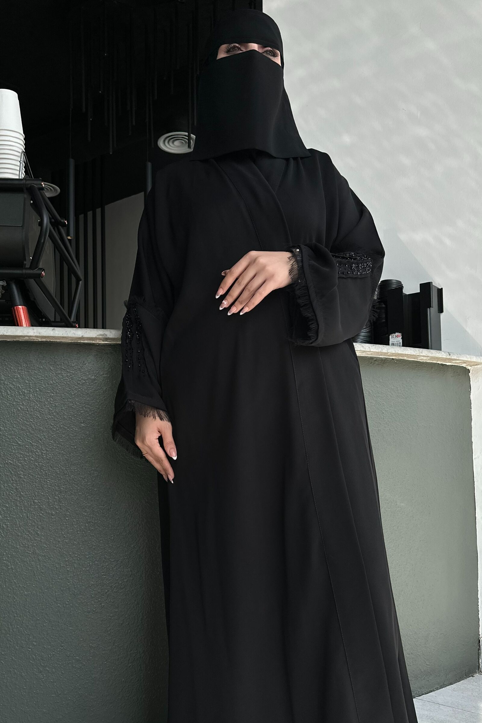 عباية شيك اسود على يد بلون اسود و محدد بكسر