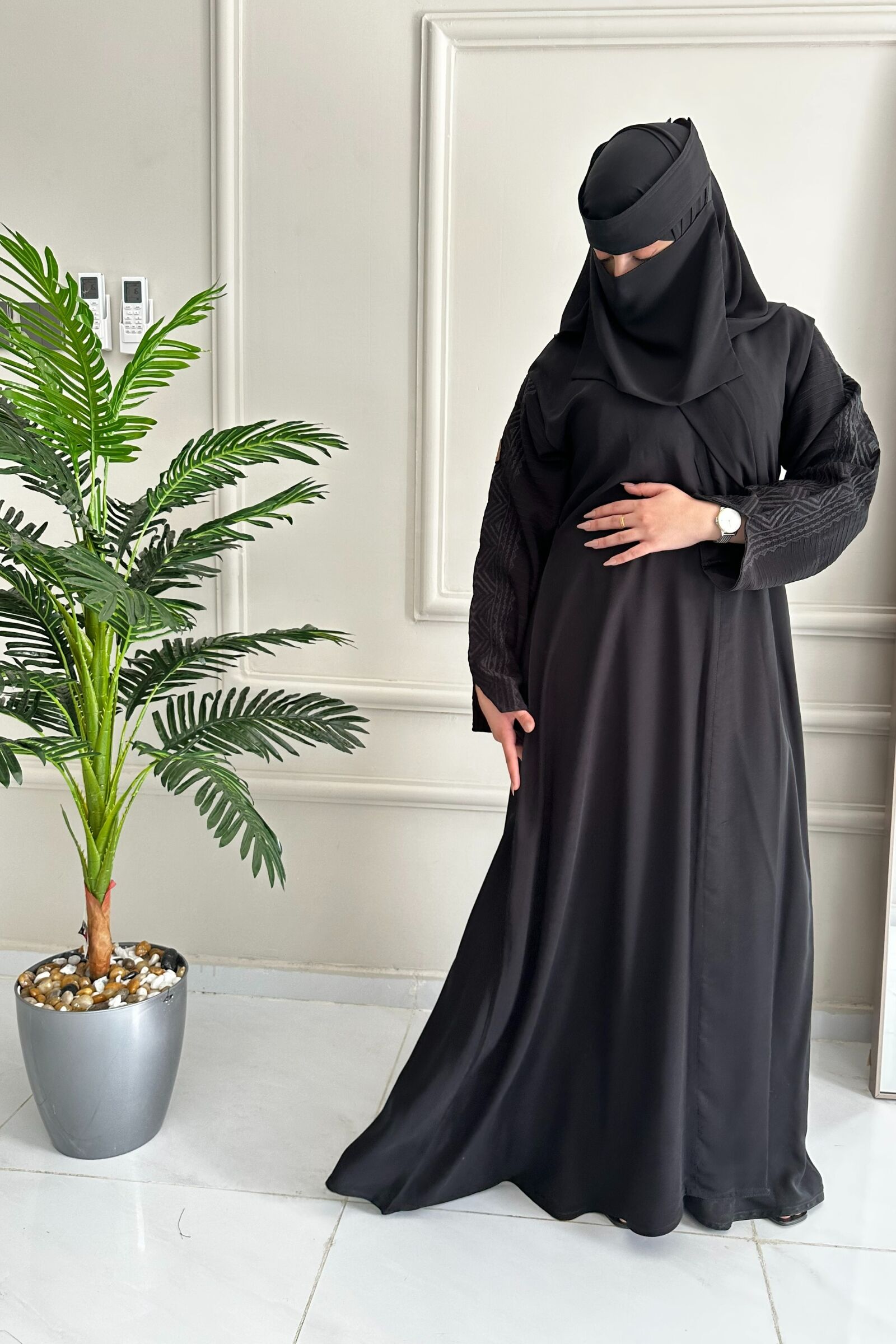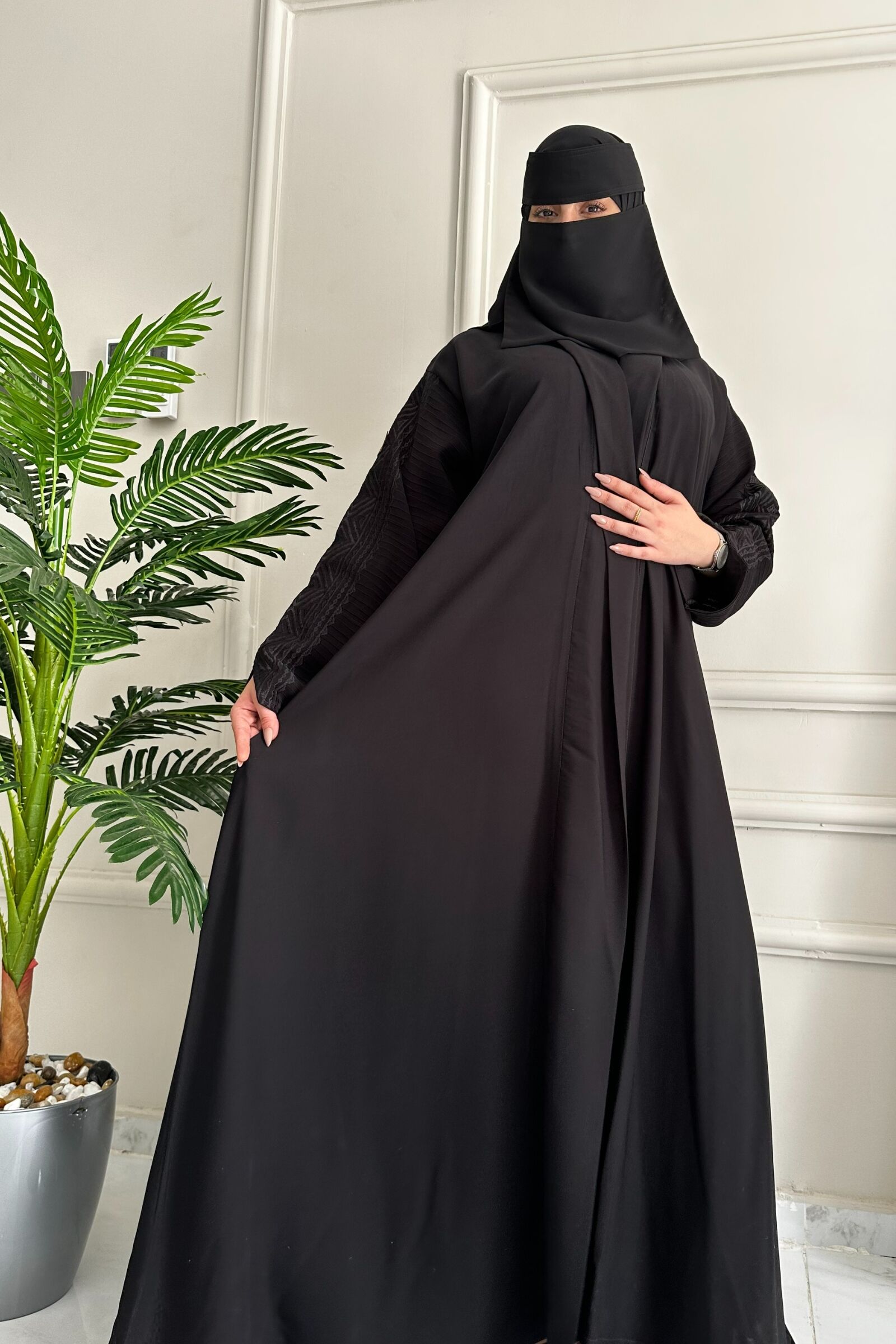 اختاري هذه العباية بشك ناعم على الأكمام لتتألقي بإطلالة عصرية وجذابة تجمع بين الأناقة والراحة في جميع المناسبات. ستضيف هذه العباية المميزة لمسة فريدة من الجاذبية والأناقة إلى خزانتك.
