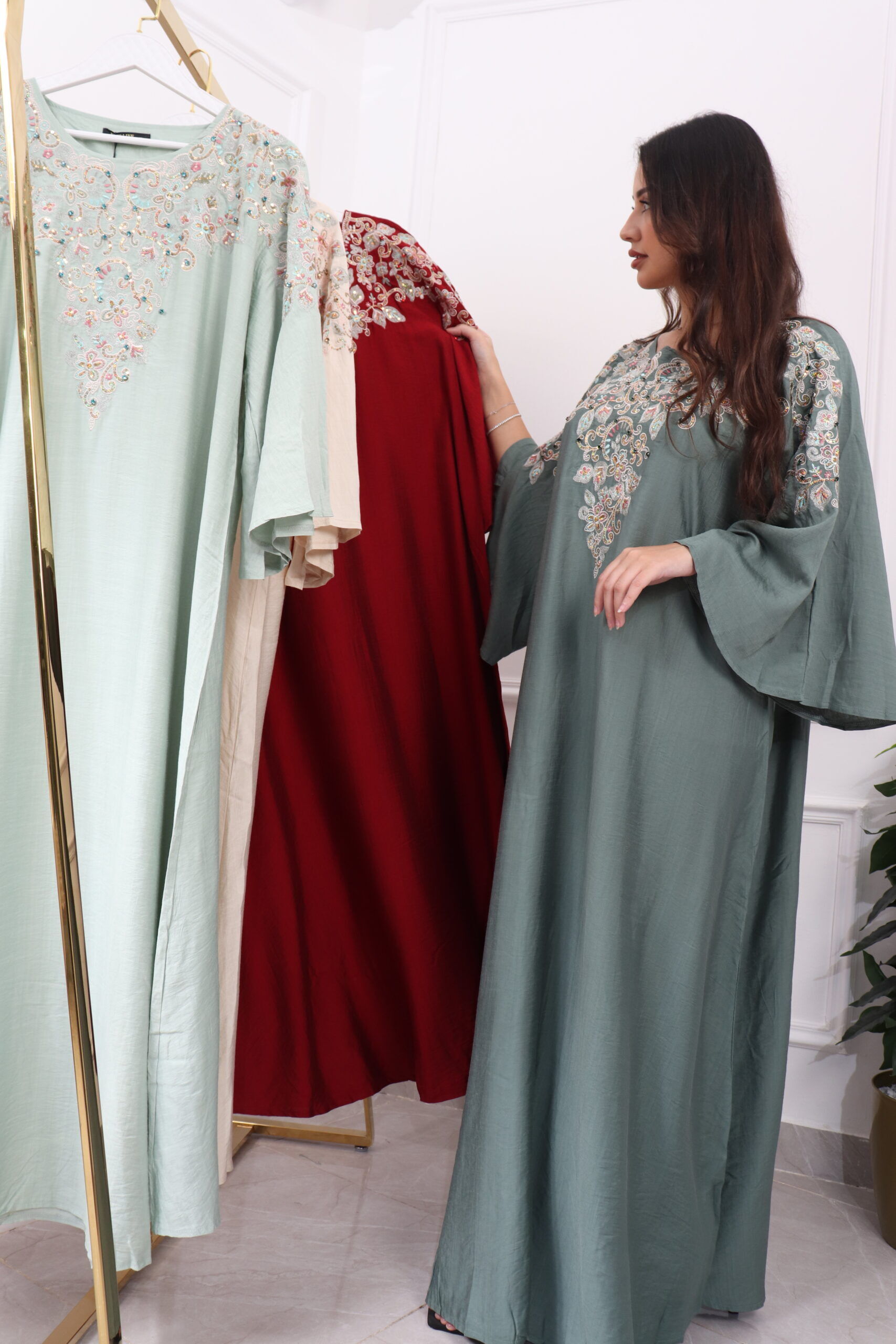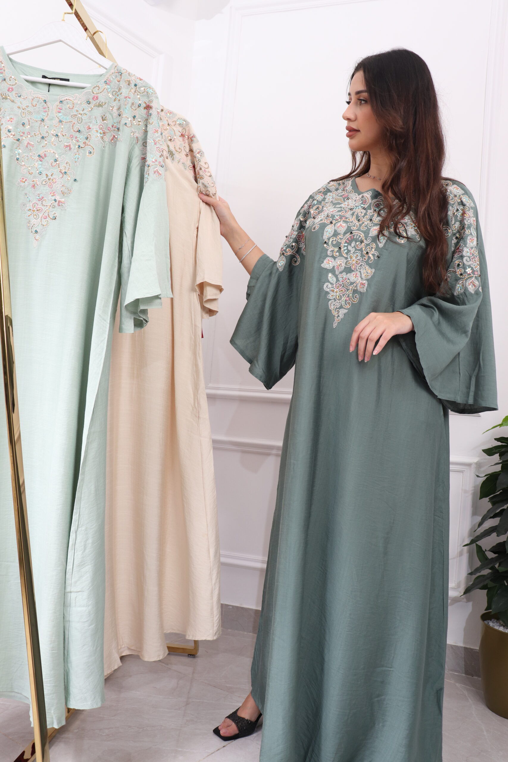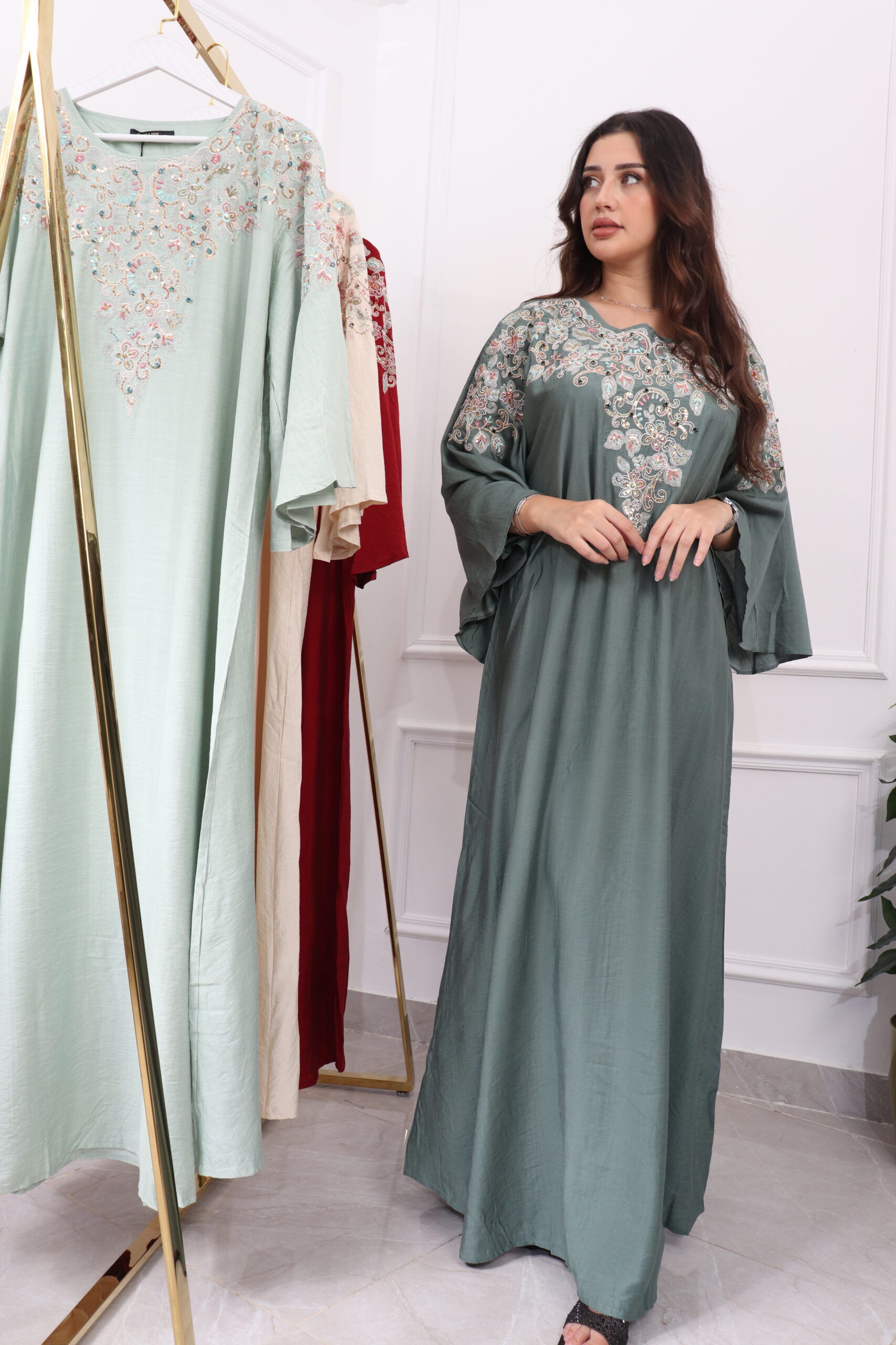 جلابية مطرزة بترتر فخمة وأنيقة لإطلالة تميز حضورك في المناسبات والجمعات العائلية.