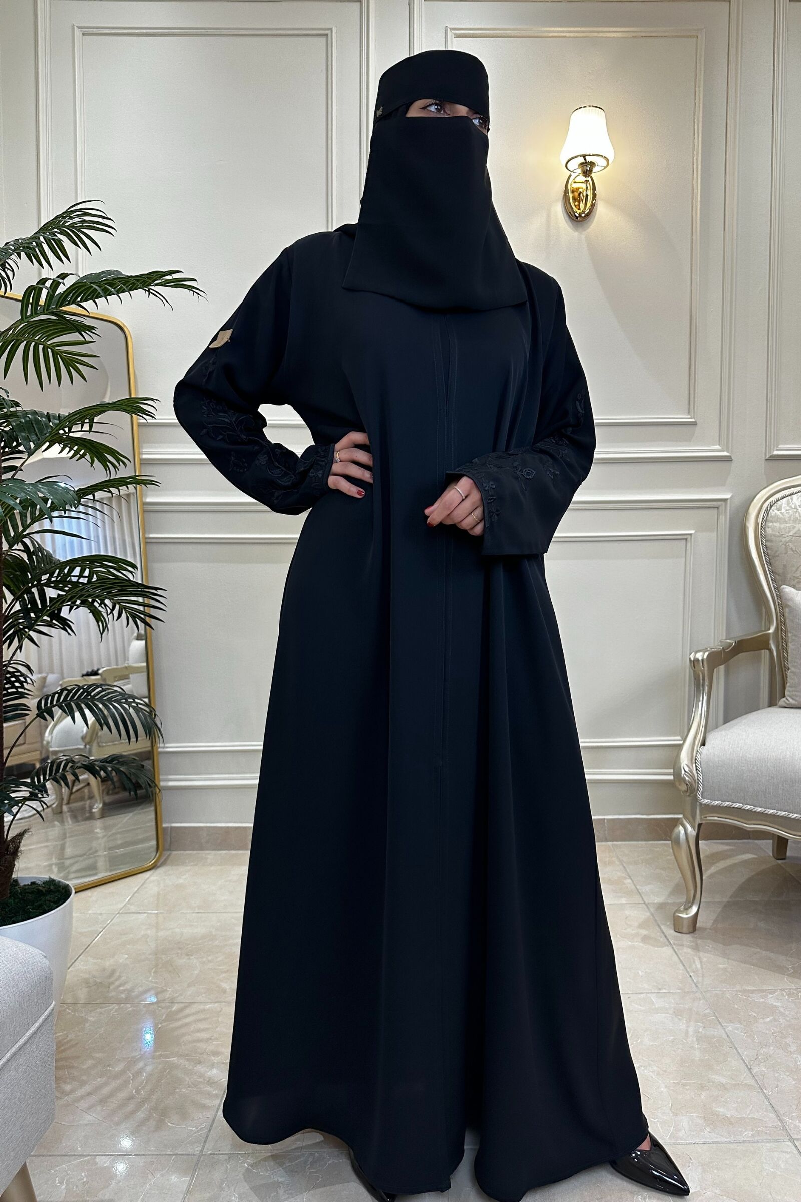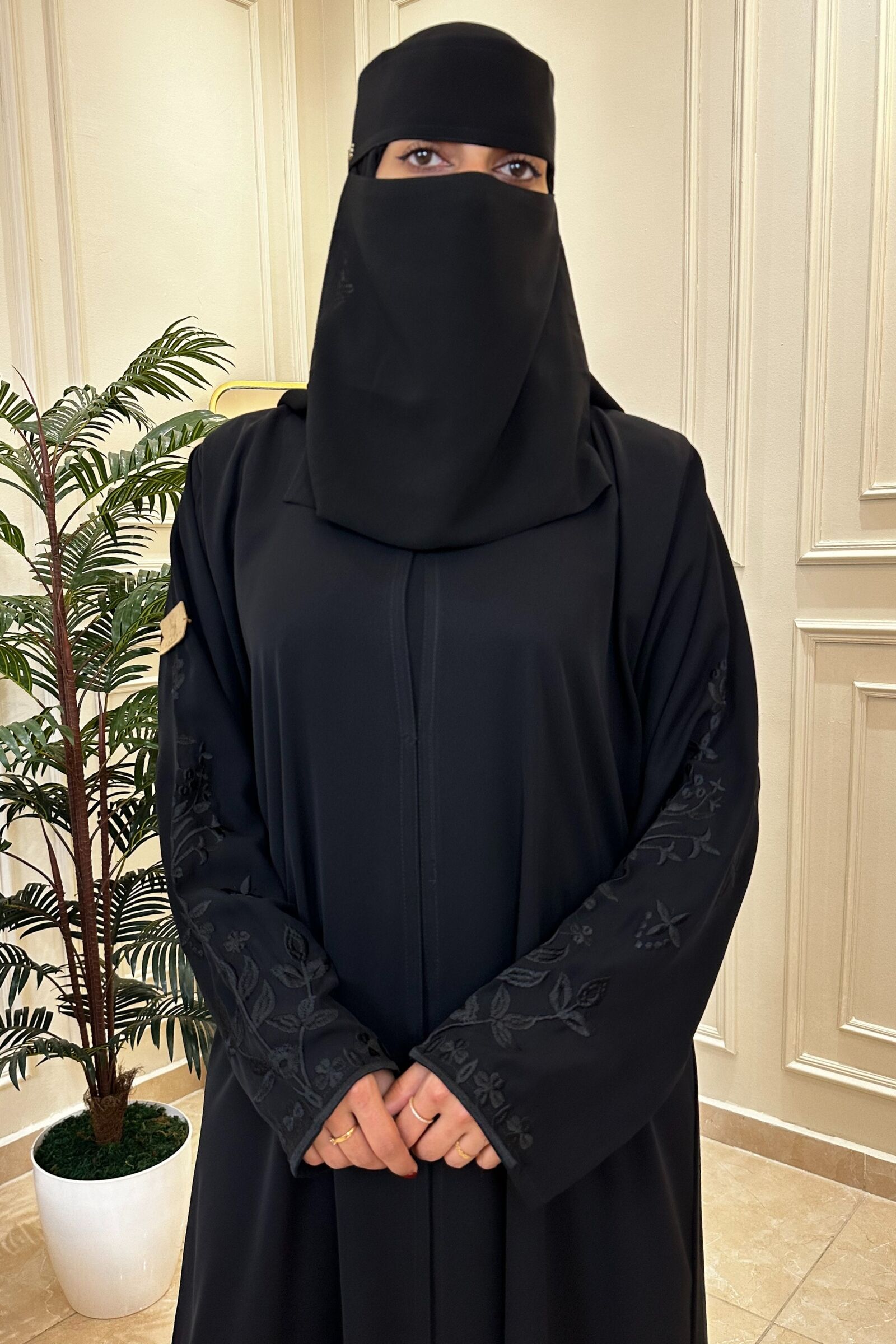 مميزات عبايه كتف بتطريز اسود على اكمام كامل :