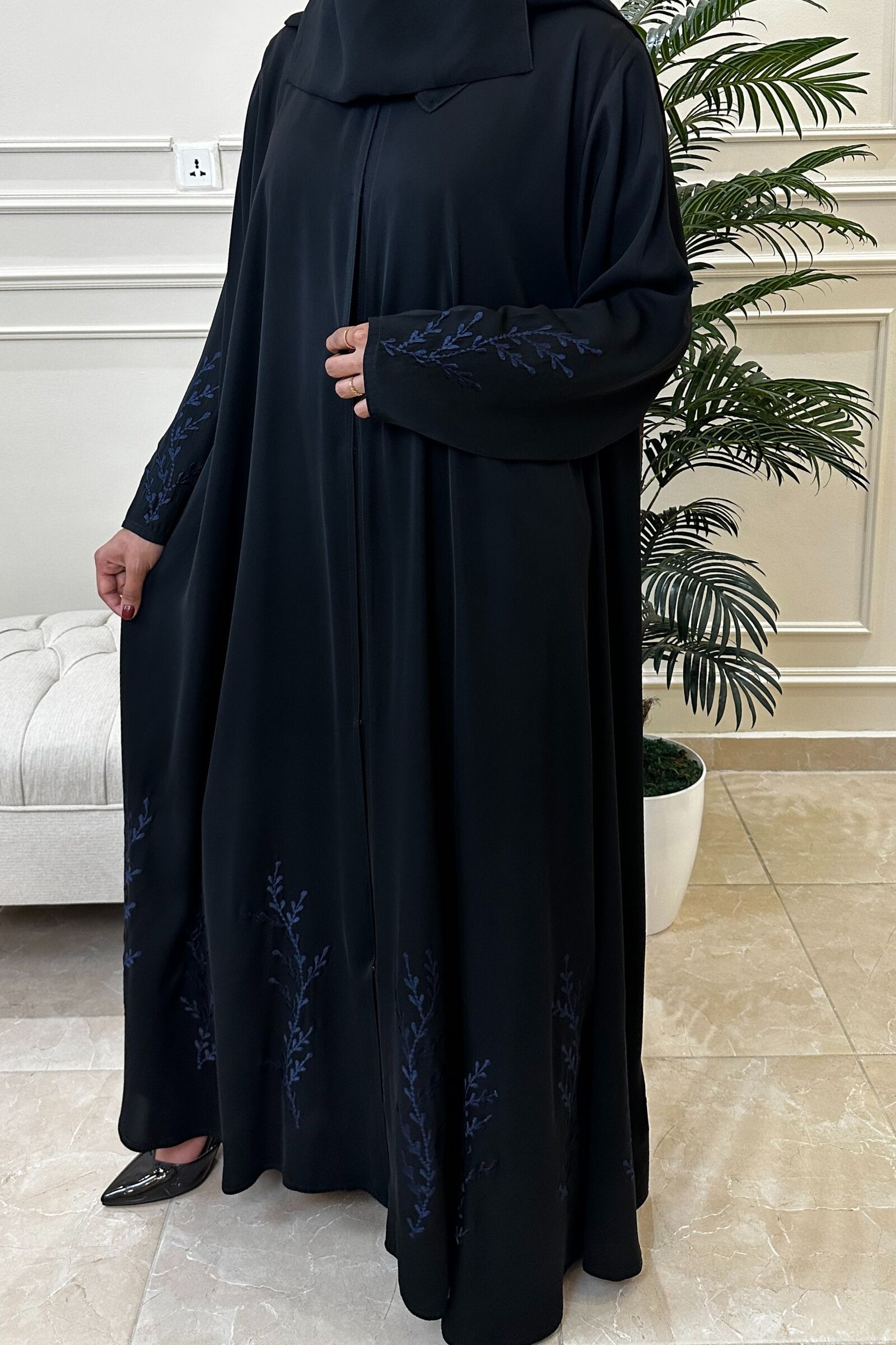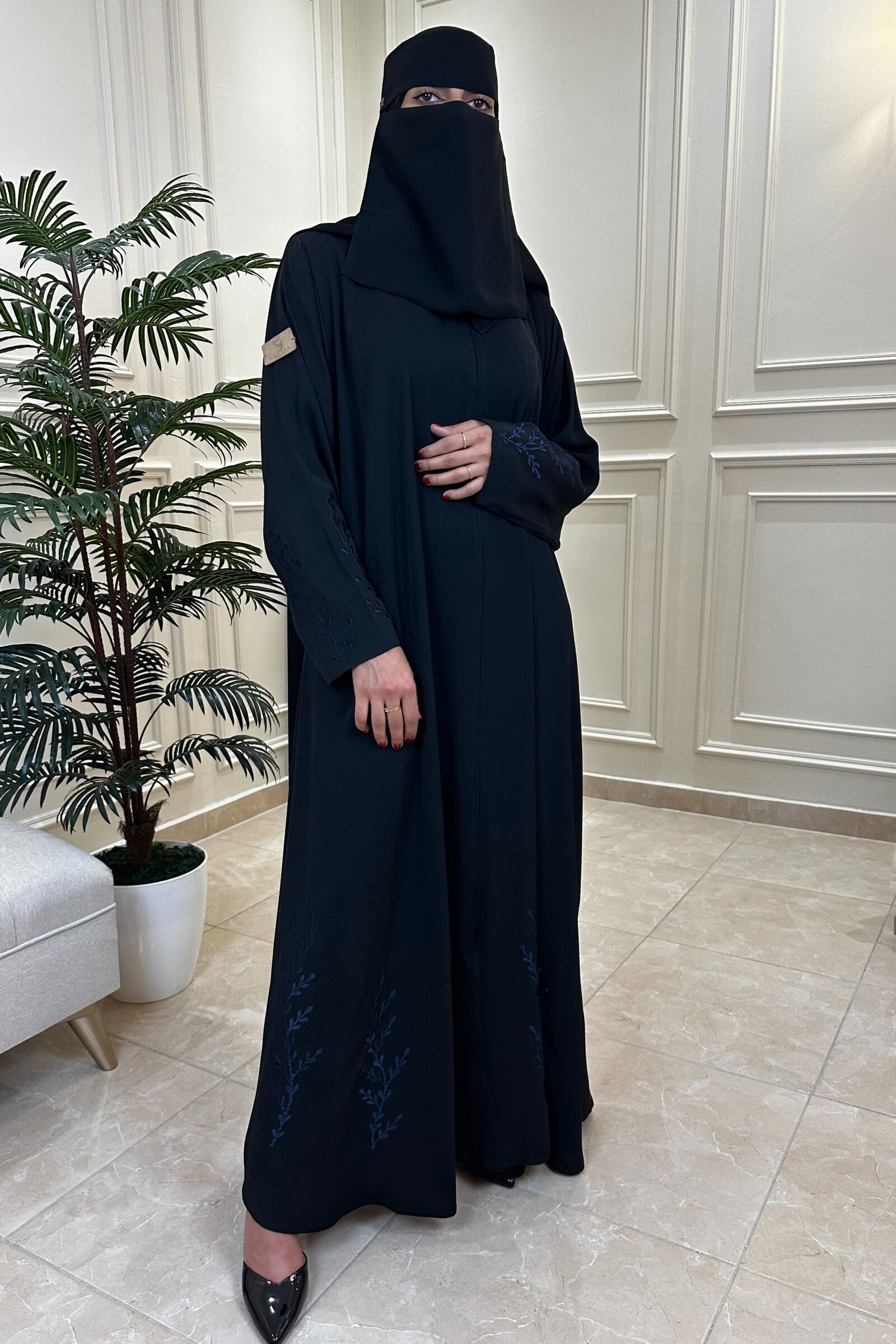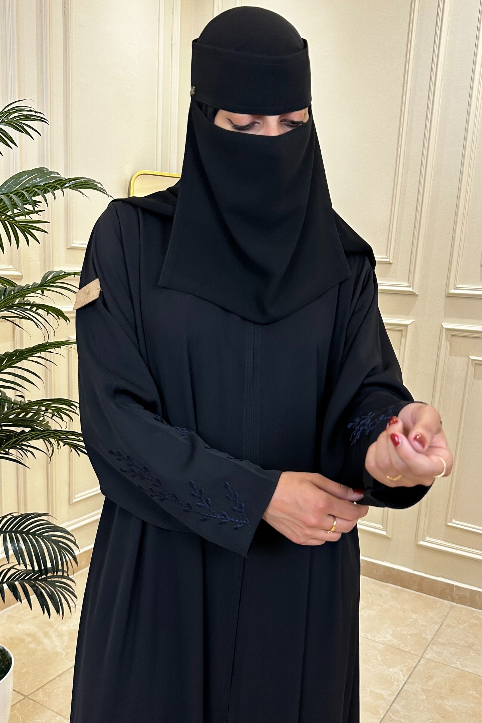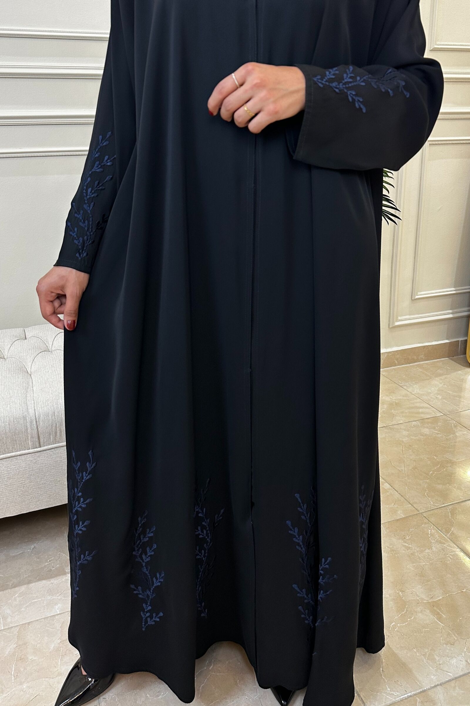 عبايه كلوش بتطريز كحلى مخفي من كم واسفل العبايه