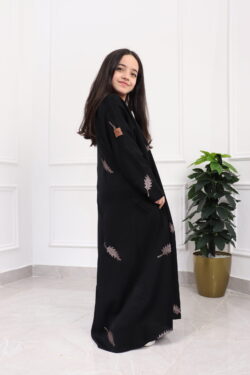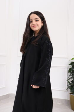 عباية بناتي بتطريز أسود على الأكمام كامل