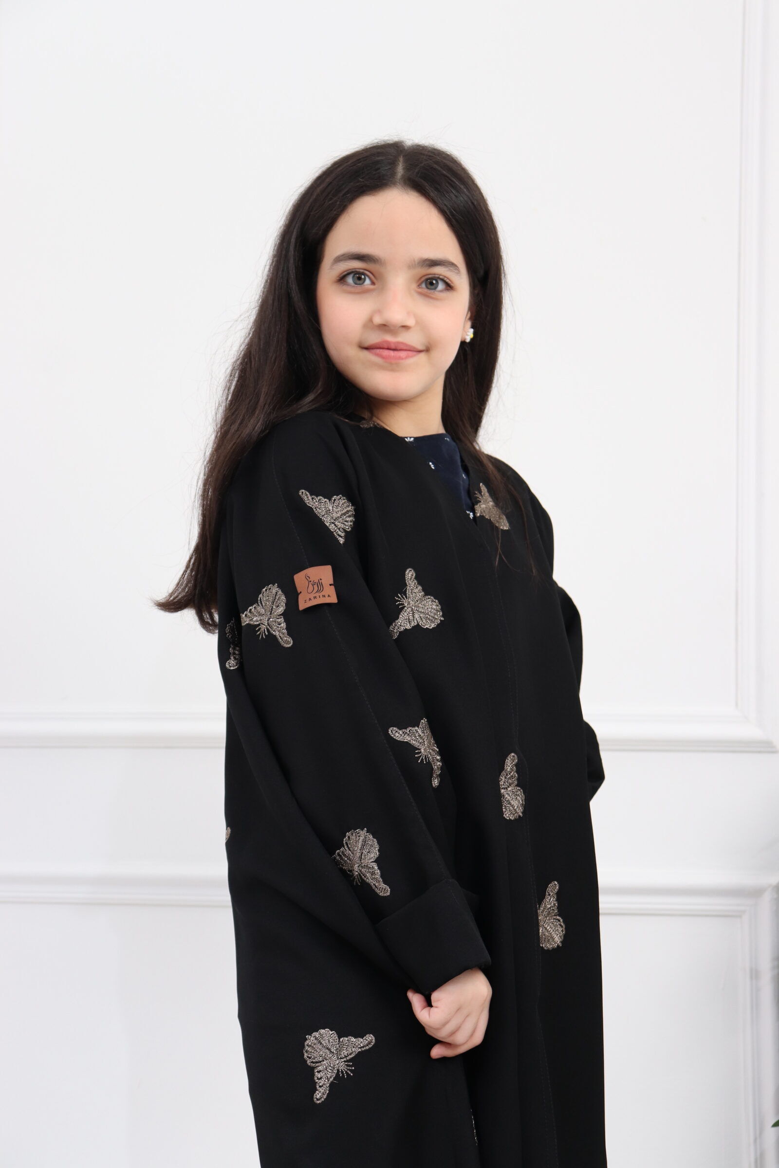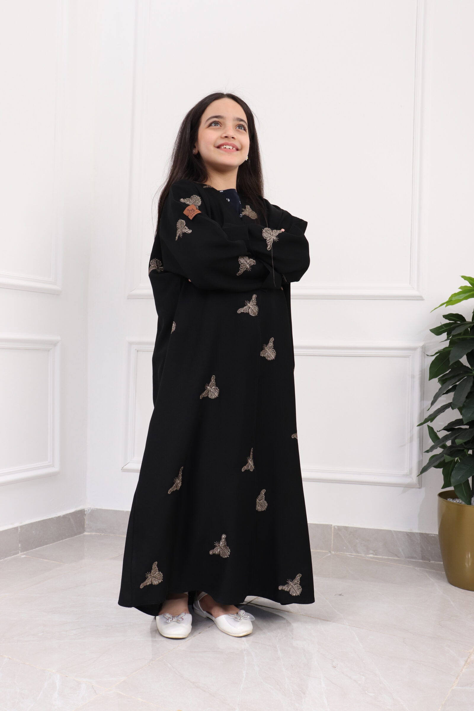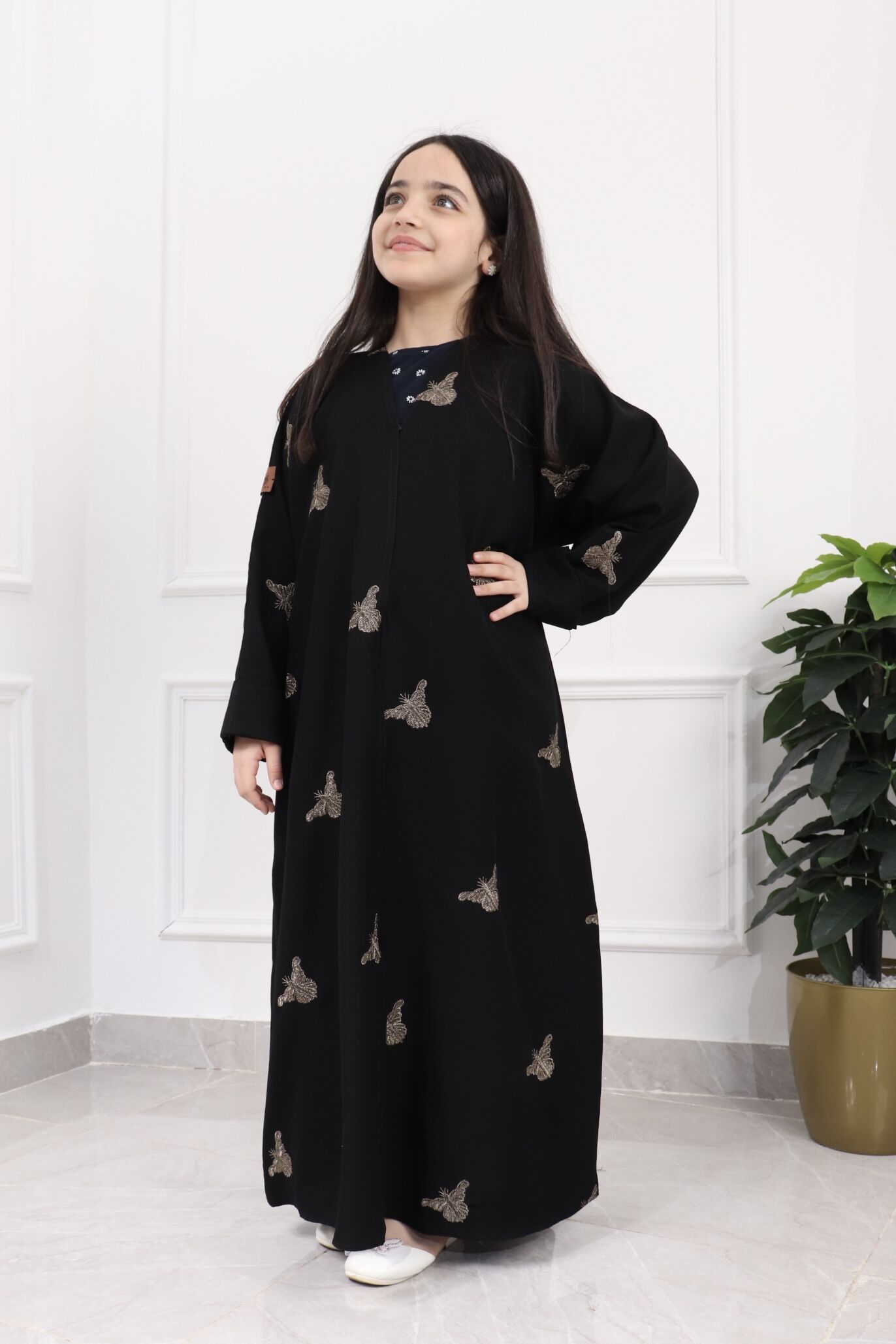 عبايه بناتي بتطريز فراشه كامل بلون النحاسي