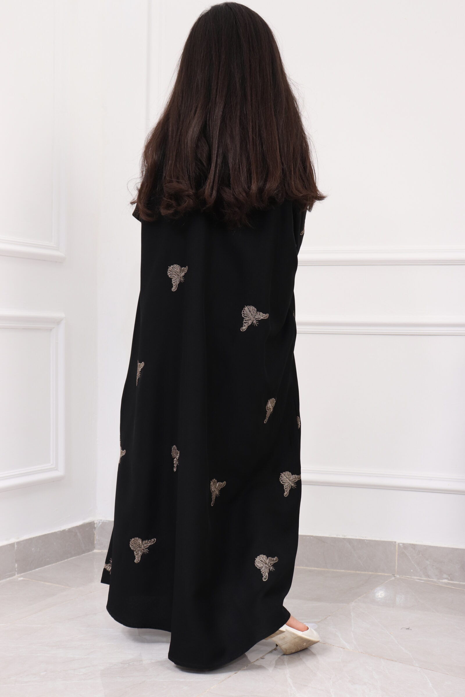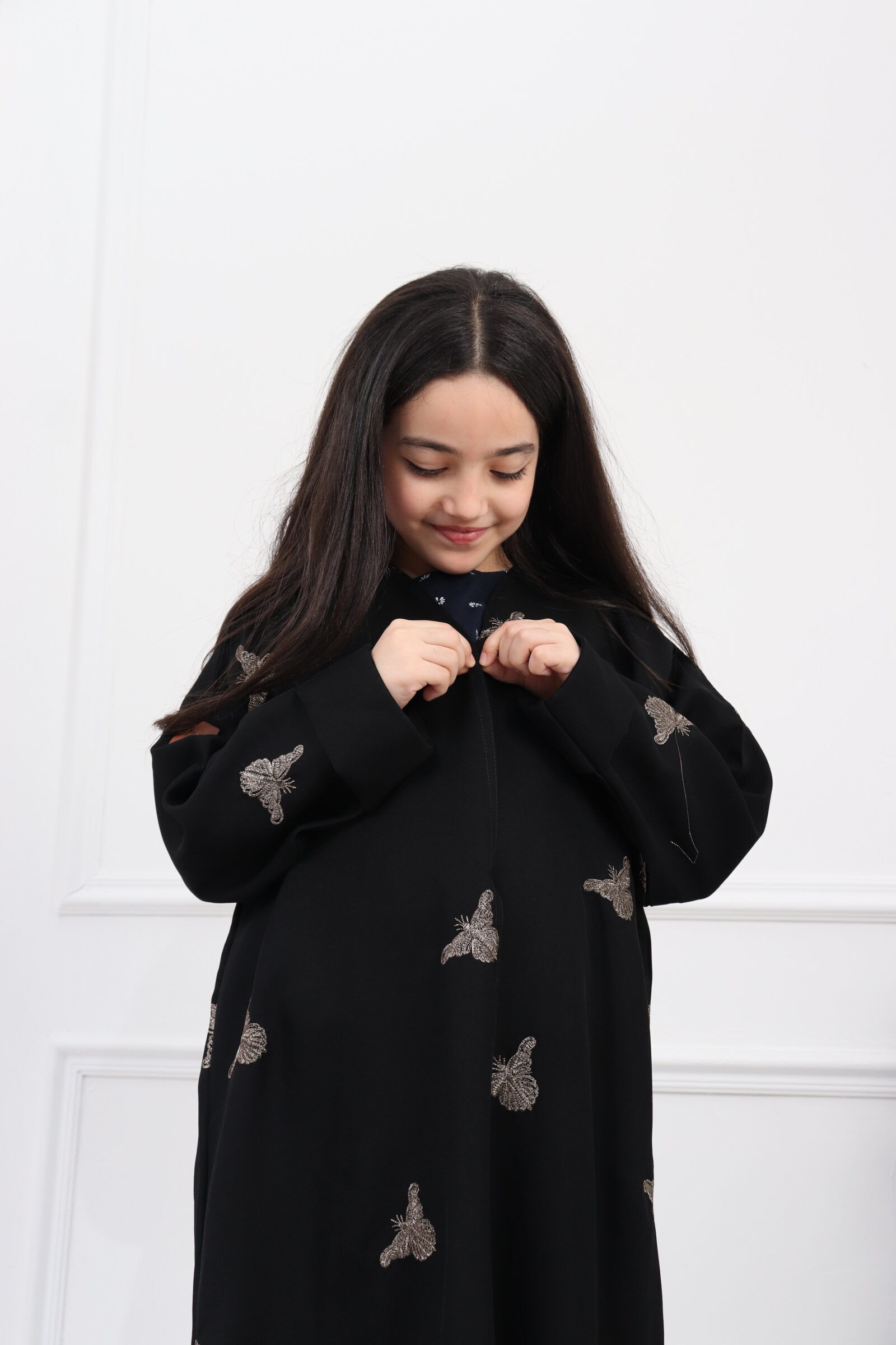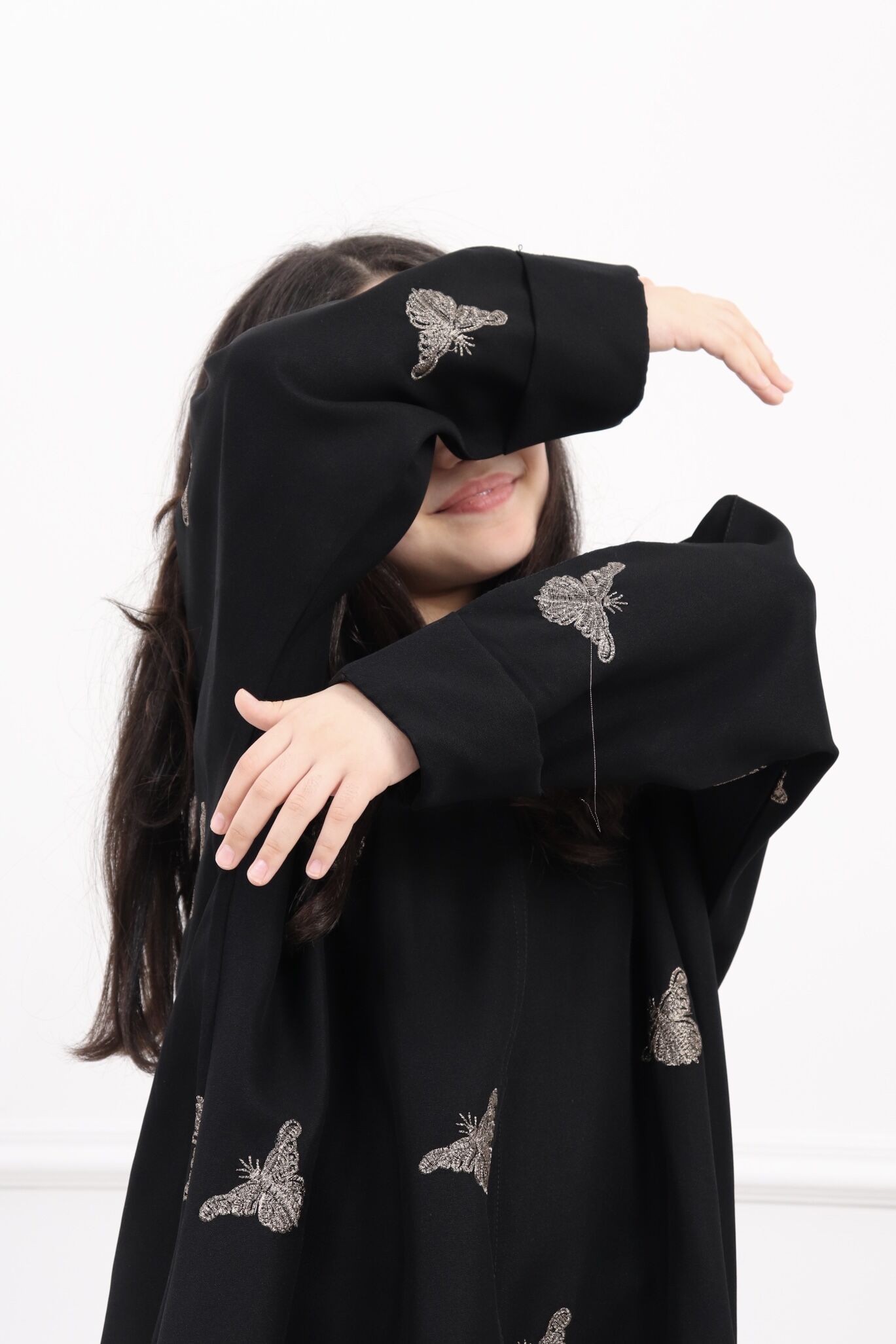 عبايه بناتي بتطريز فراشه كامل بلون النحاسي
