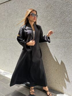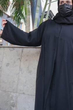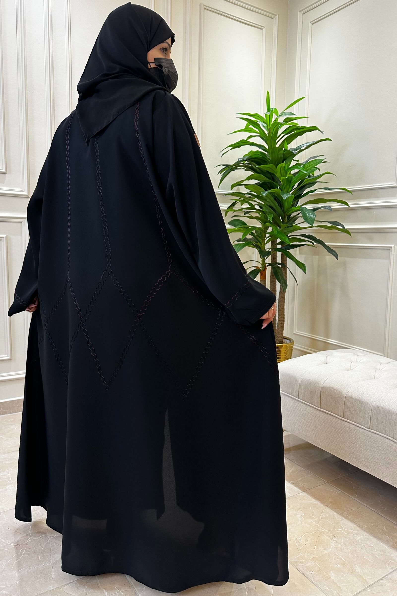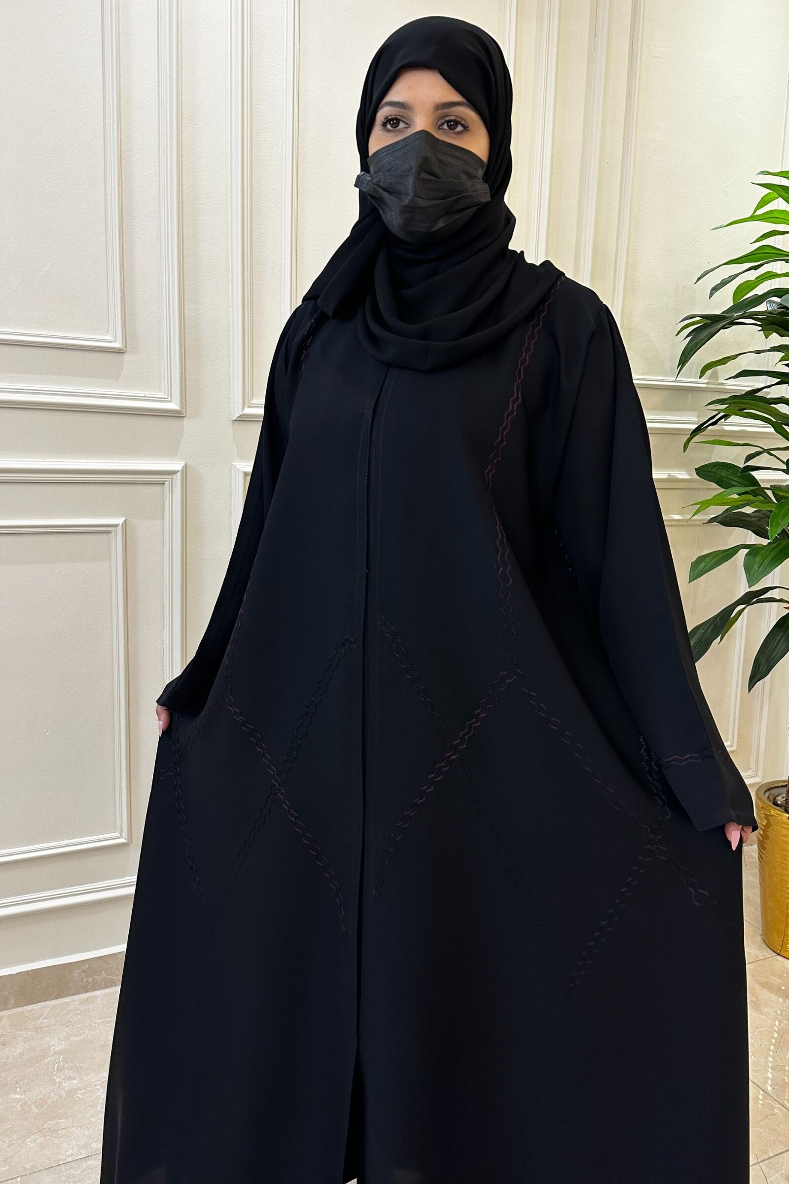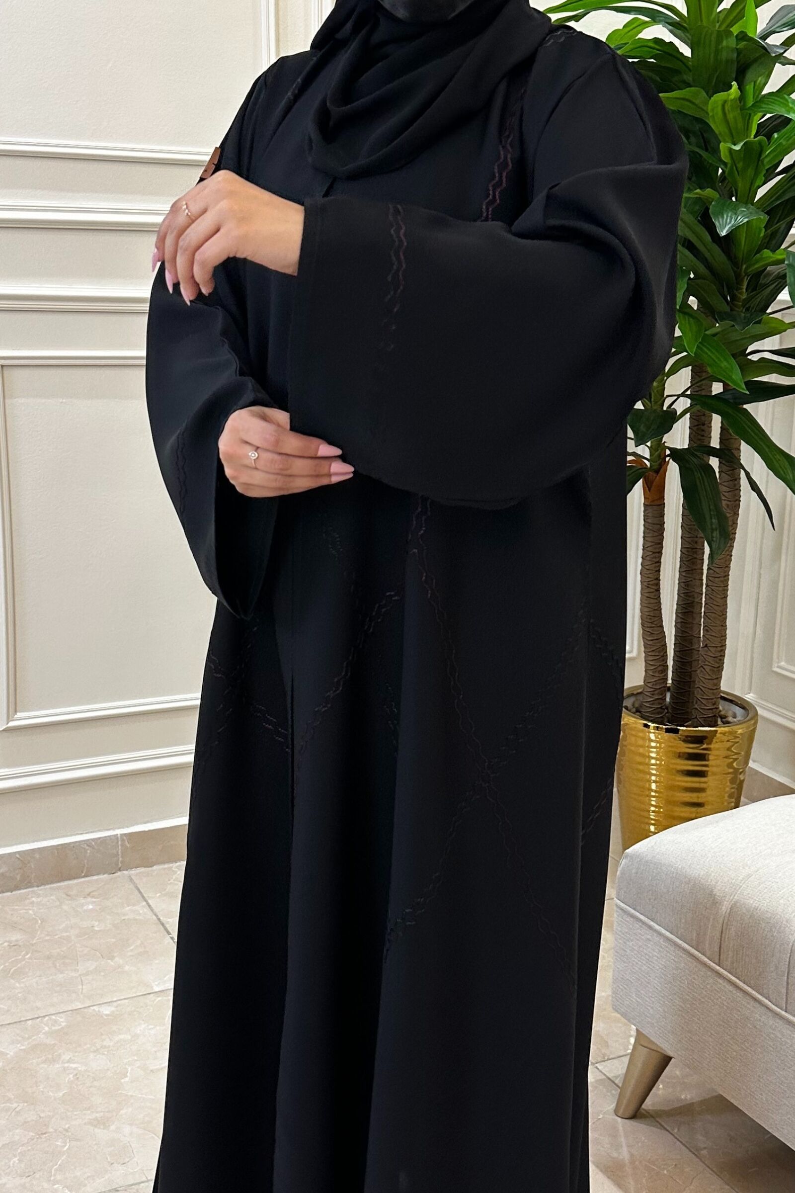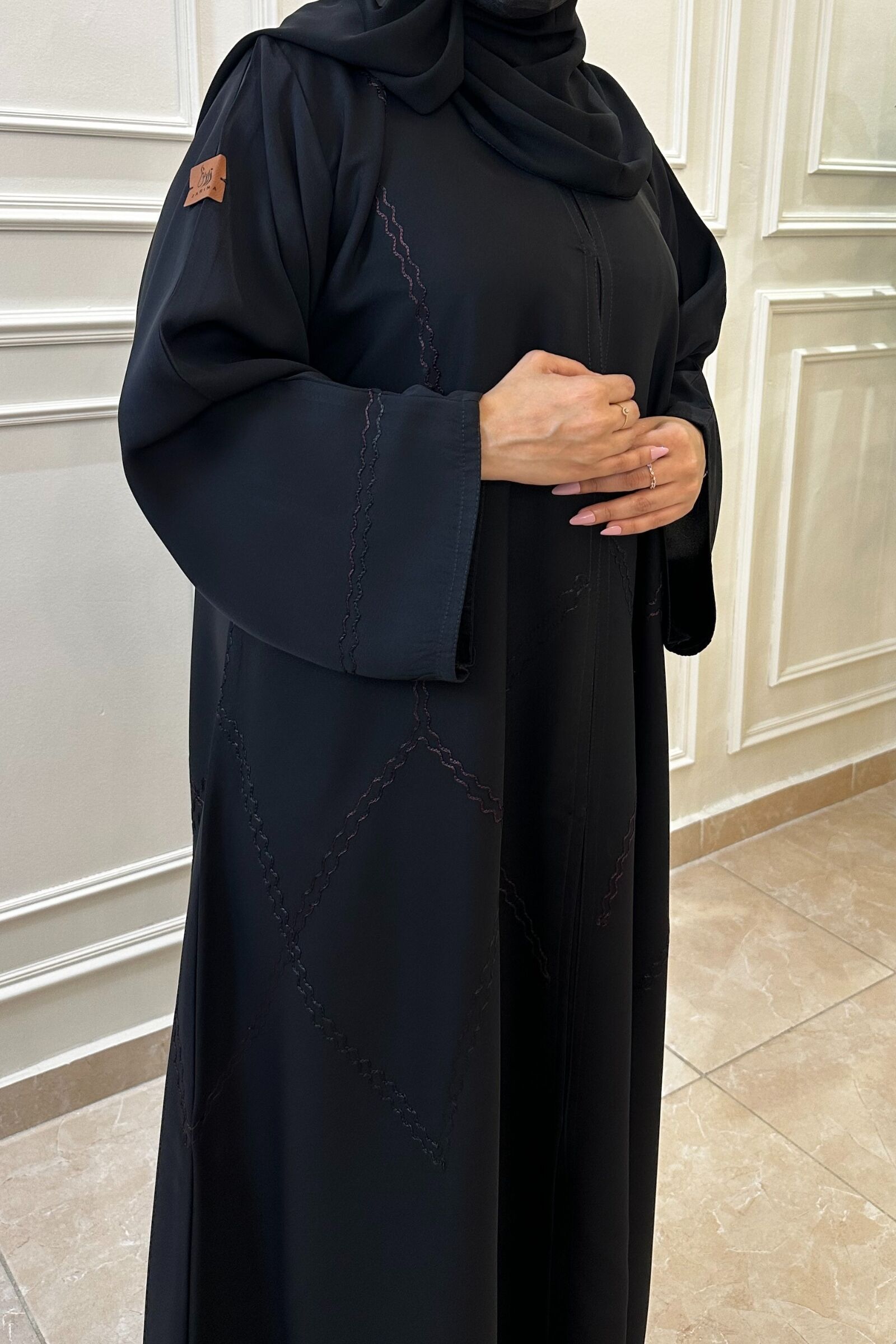 فخامة اللون الأسود لا يضاهيها شيء ، فما بالك بعبايه كلاسيك فخمه بتطريز من امام وخلف ، مصممه بإبداع من قماش انترنت عالي الجودة ، وخطوط مبتكر و مميزة بلون اسود من امام وخلف ليعطي شكل مميز ، ستكون اكثر عباية سوداء ، تناسب مختلف المناسبات و الأوقات و دوام .