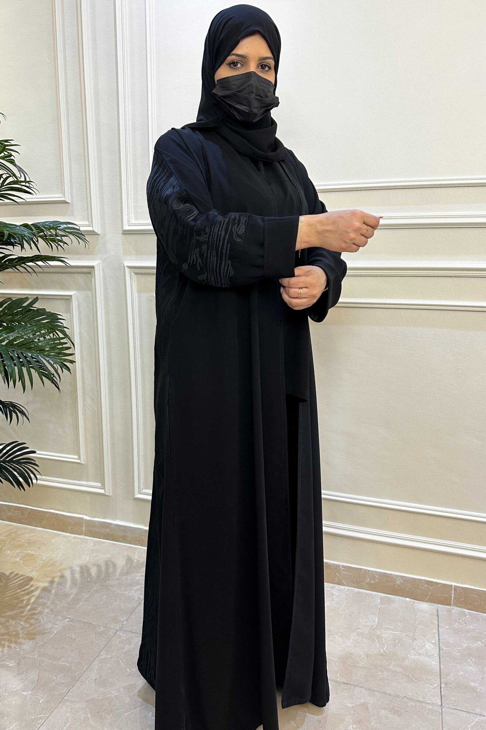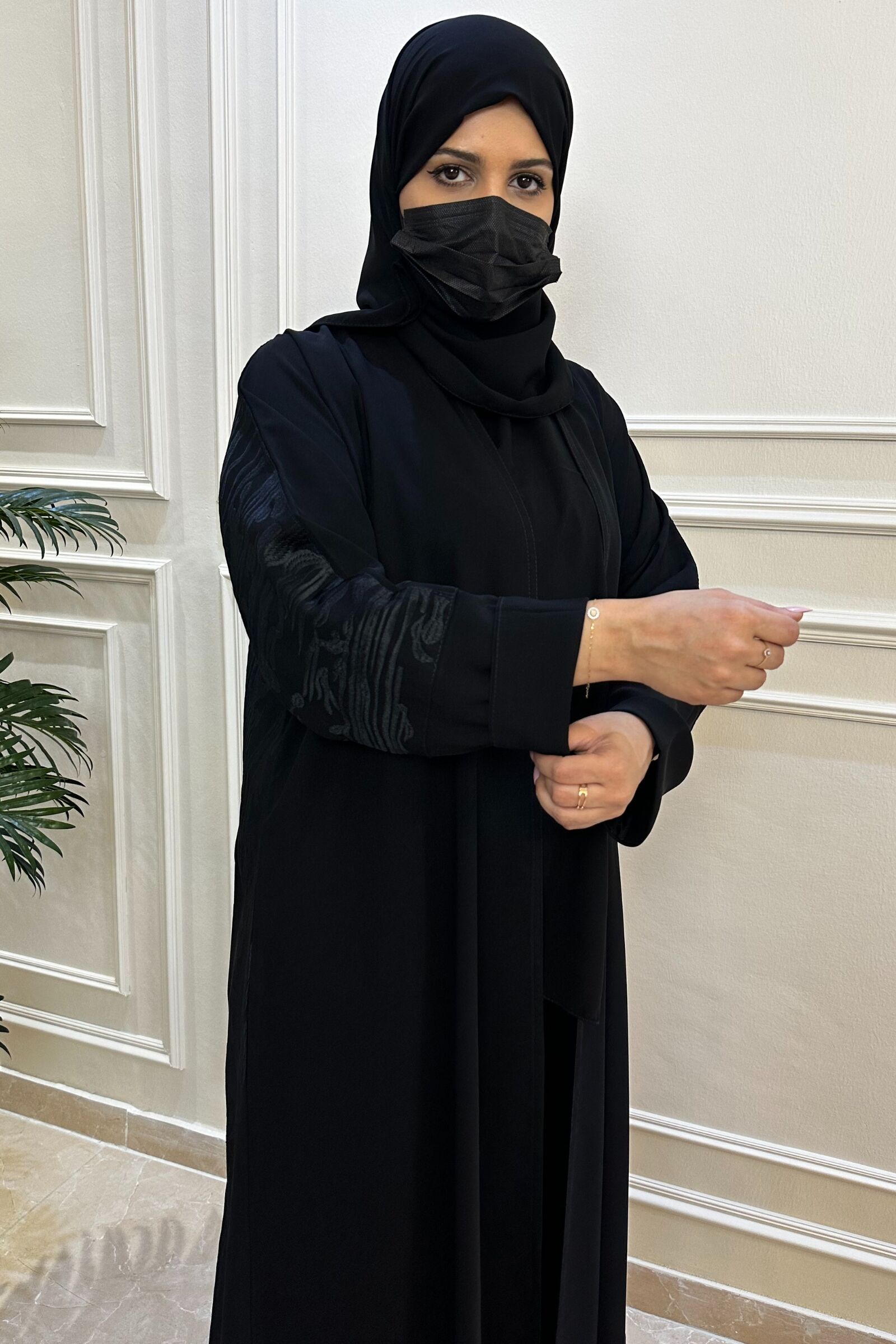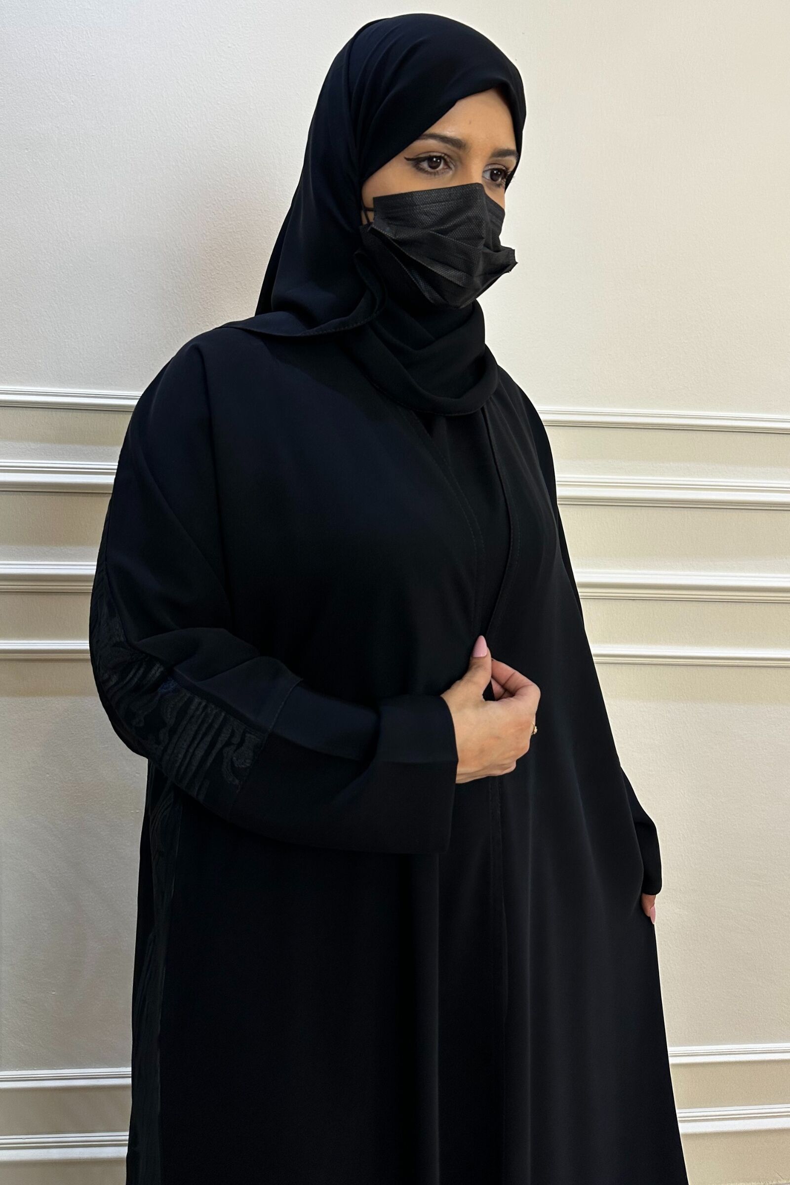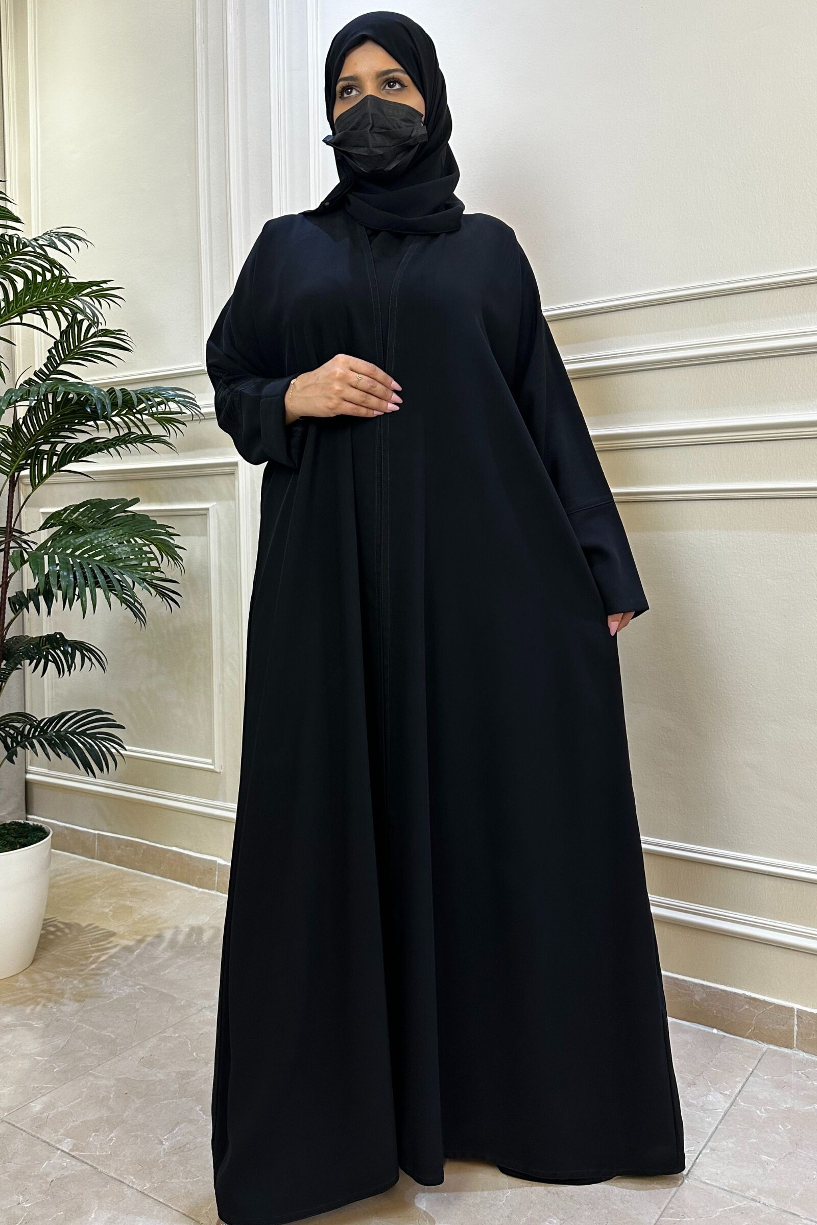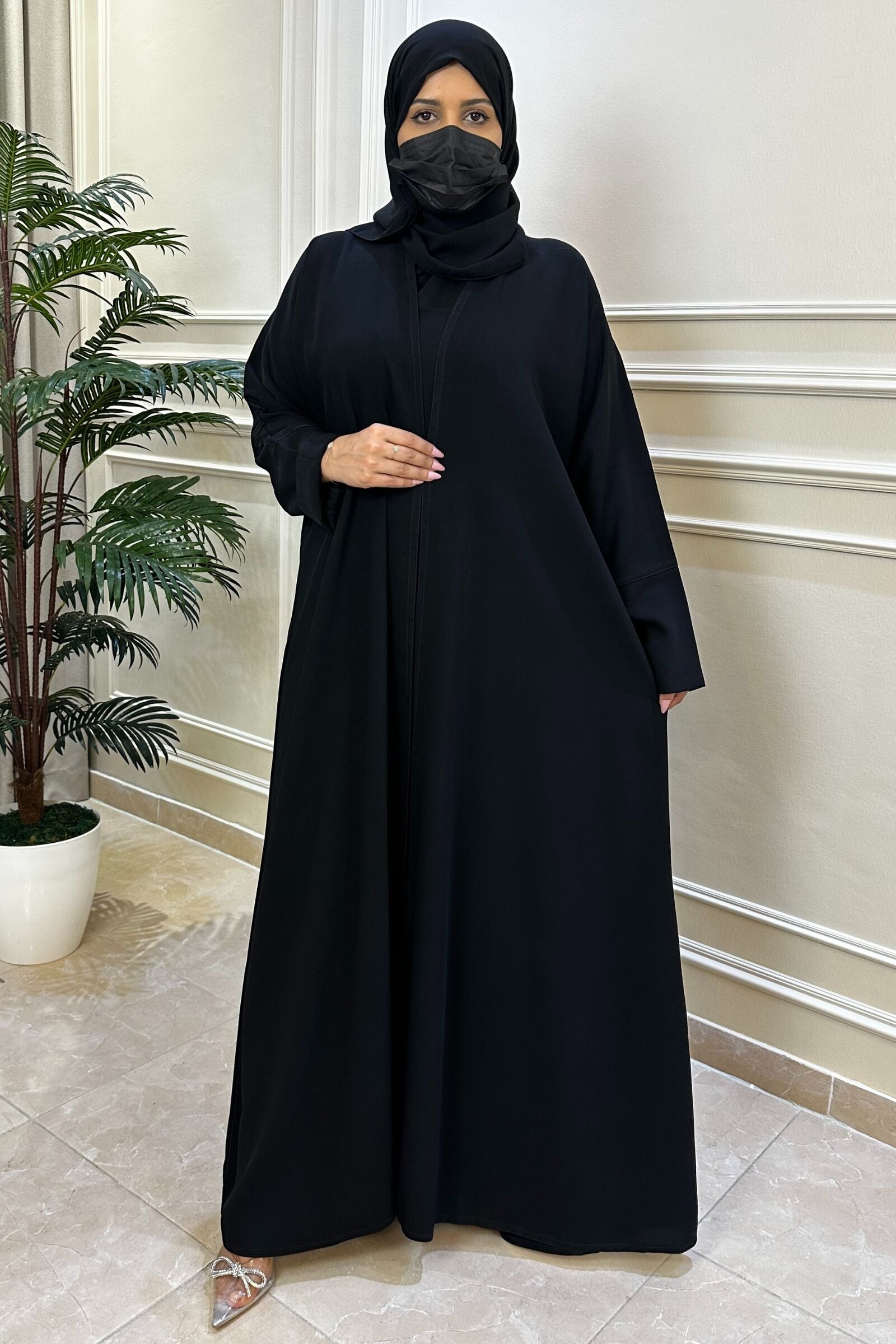 عبايه قطريه بتطريز شك اسود مخفى من امام
