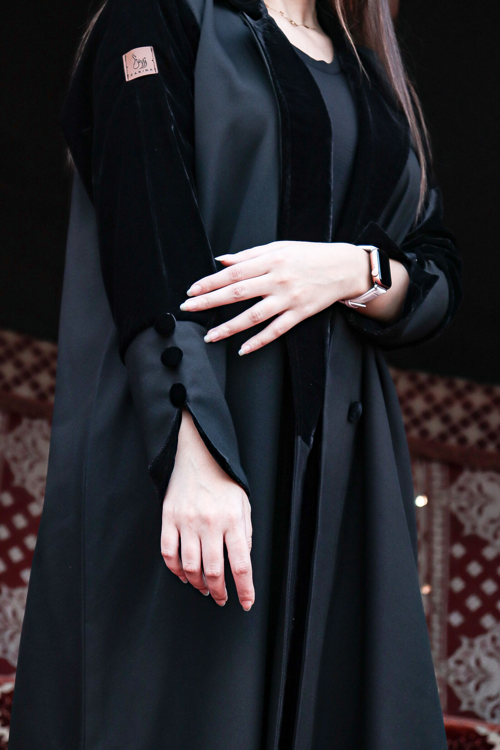 تتزين أكمام العباية بقماش المخمل