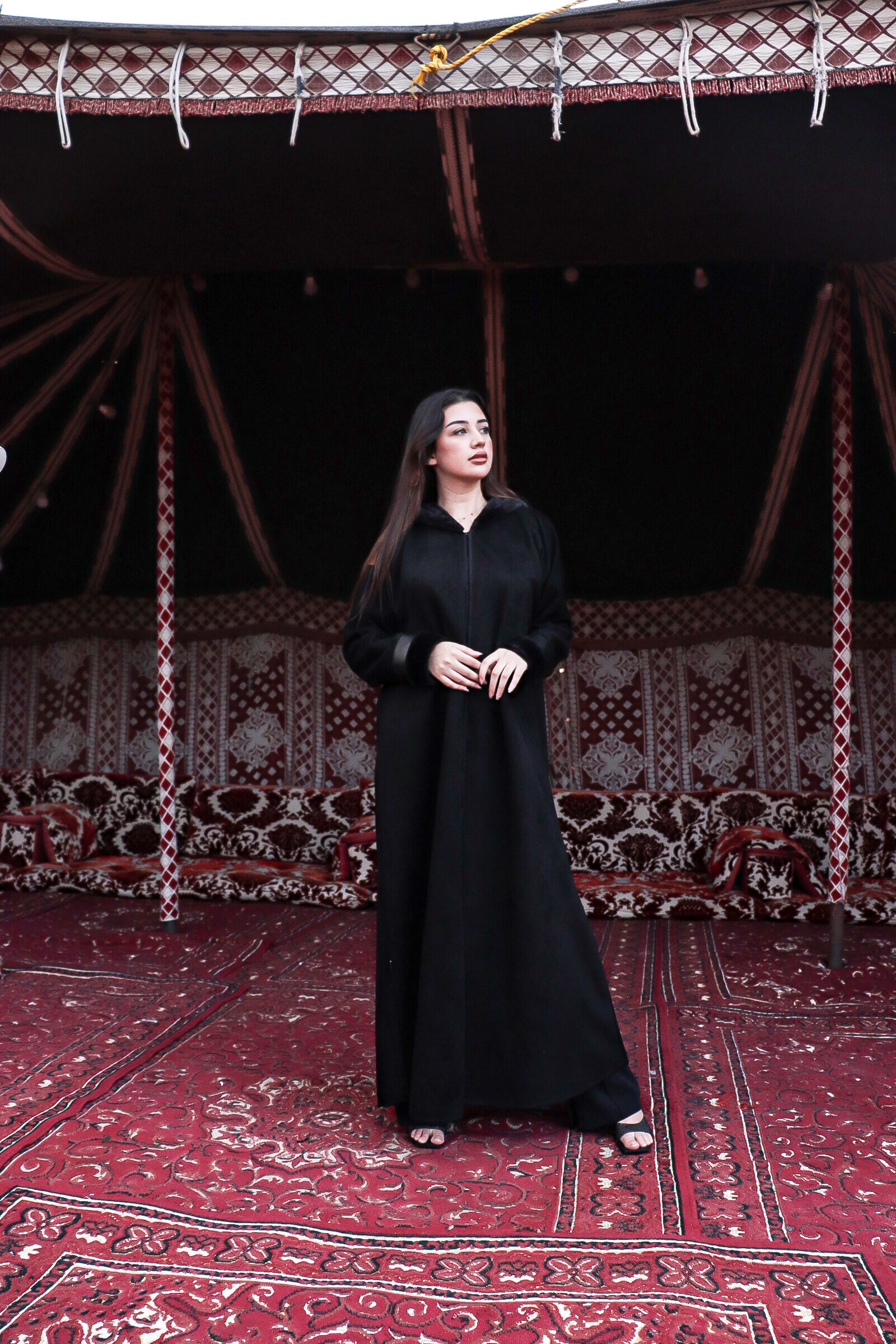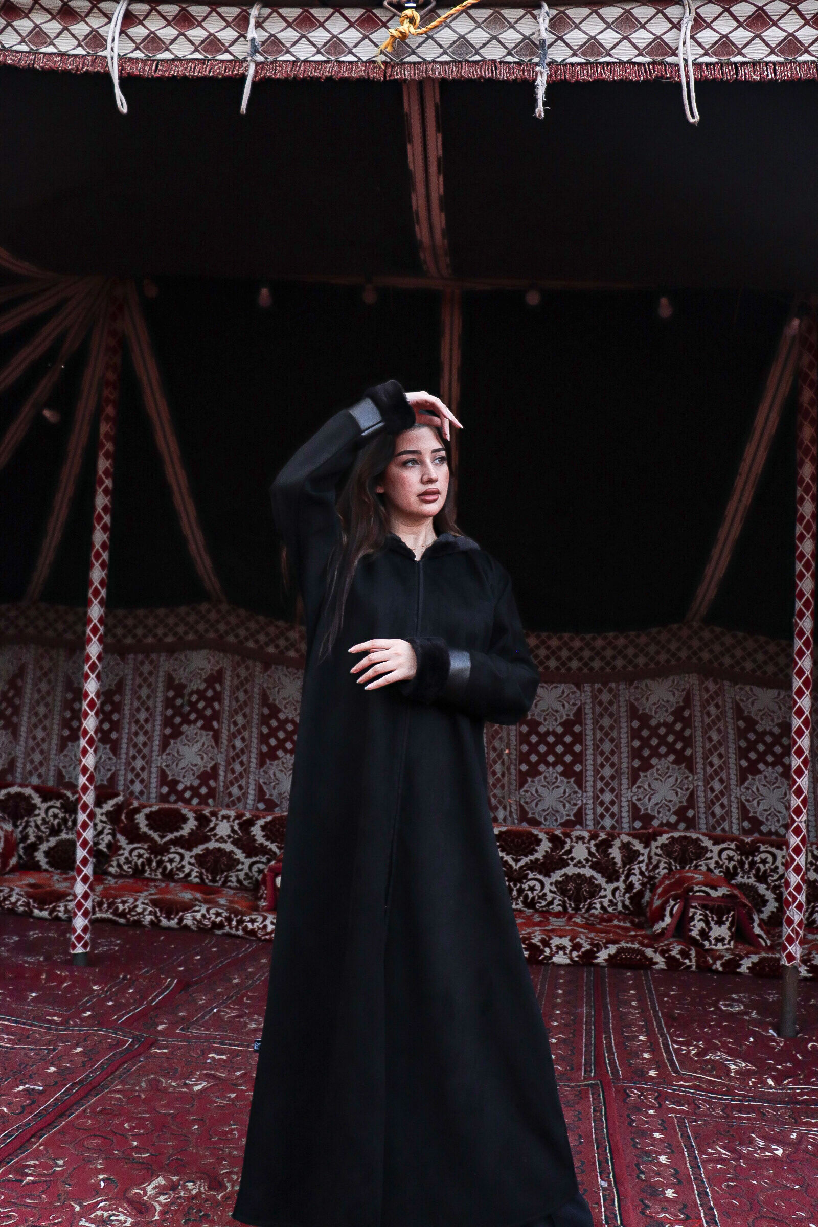 عباية شتوية رسمية جوخ بقصة ربع كلوش