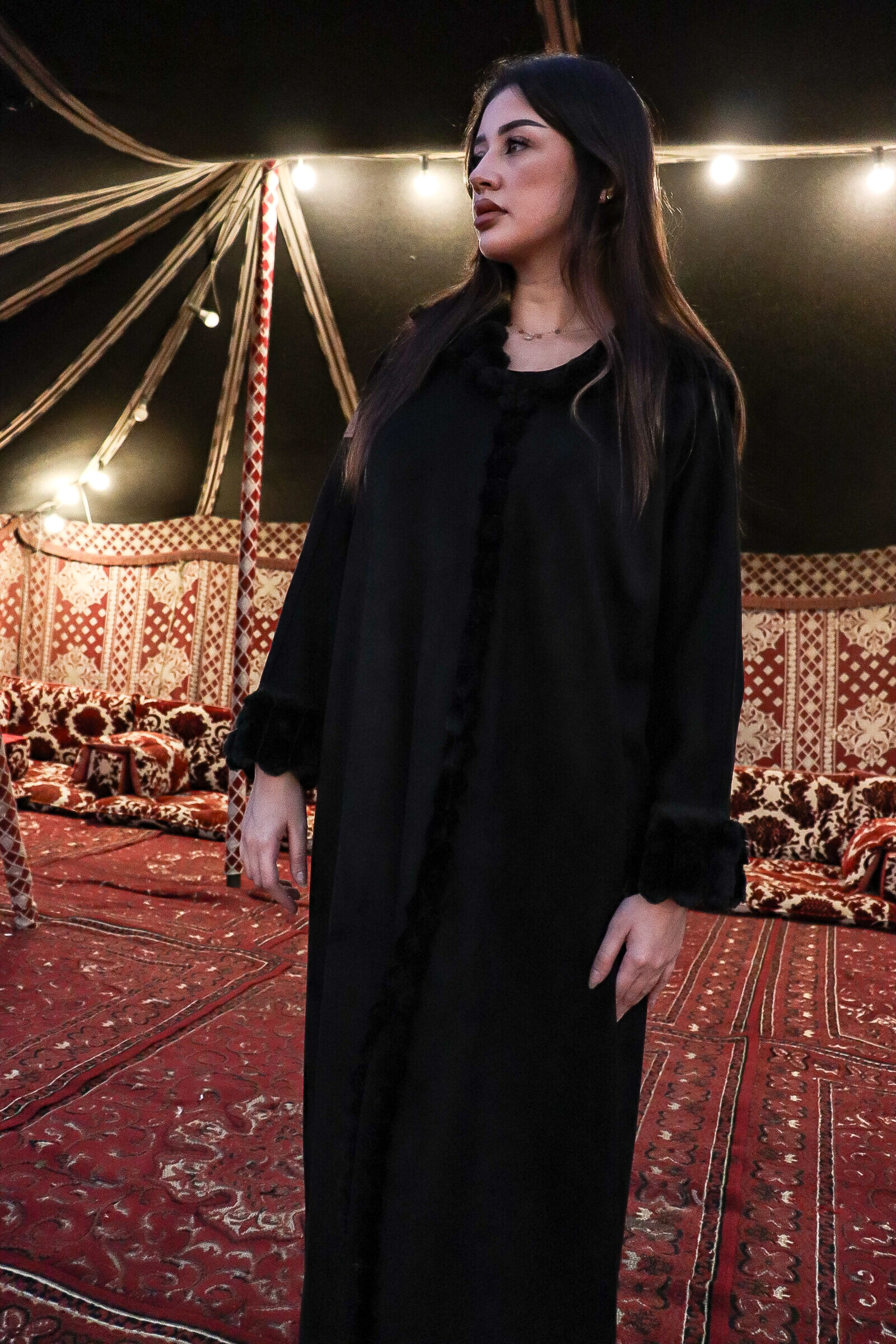 عباية فروه شتوي اسود 2224
