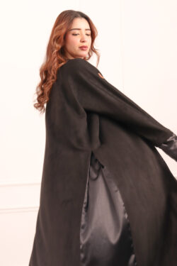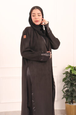 عباية بطبقة داخلية مع ربطة جانبية بكم جلد مفتوحة