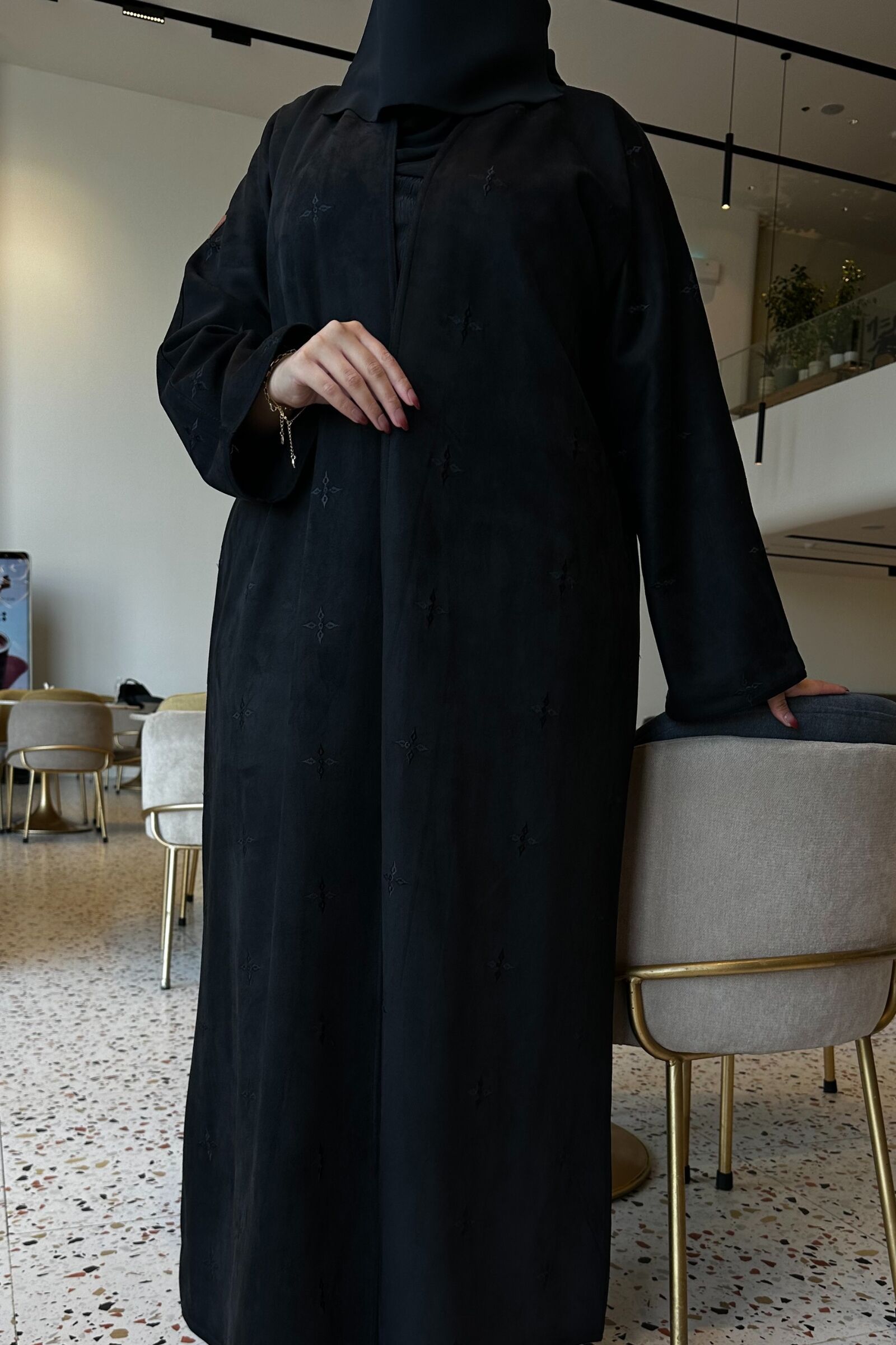 | الاضافات المميزة : | تطريز كامل العباية على شكل ورق شجر |