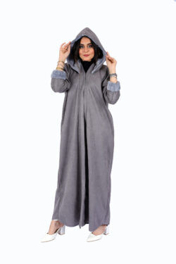 عباية شامواه محدد بجلد وبياقة و اكمام مخمل بقصه A قماش شامواه انيقه و تدفي