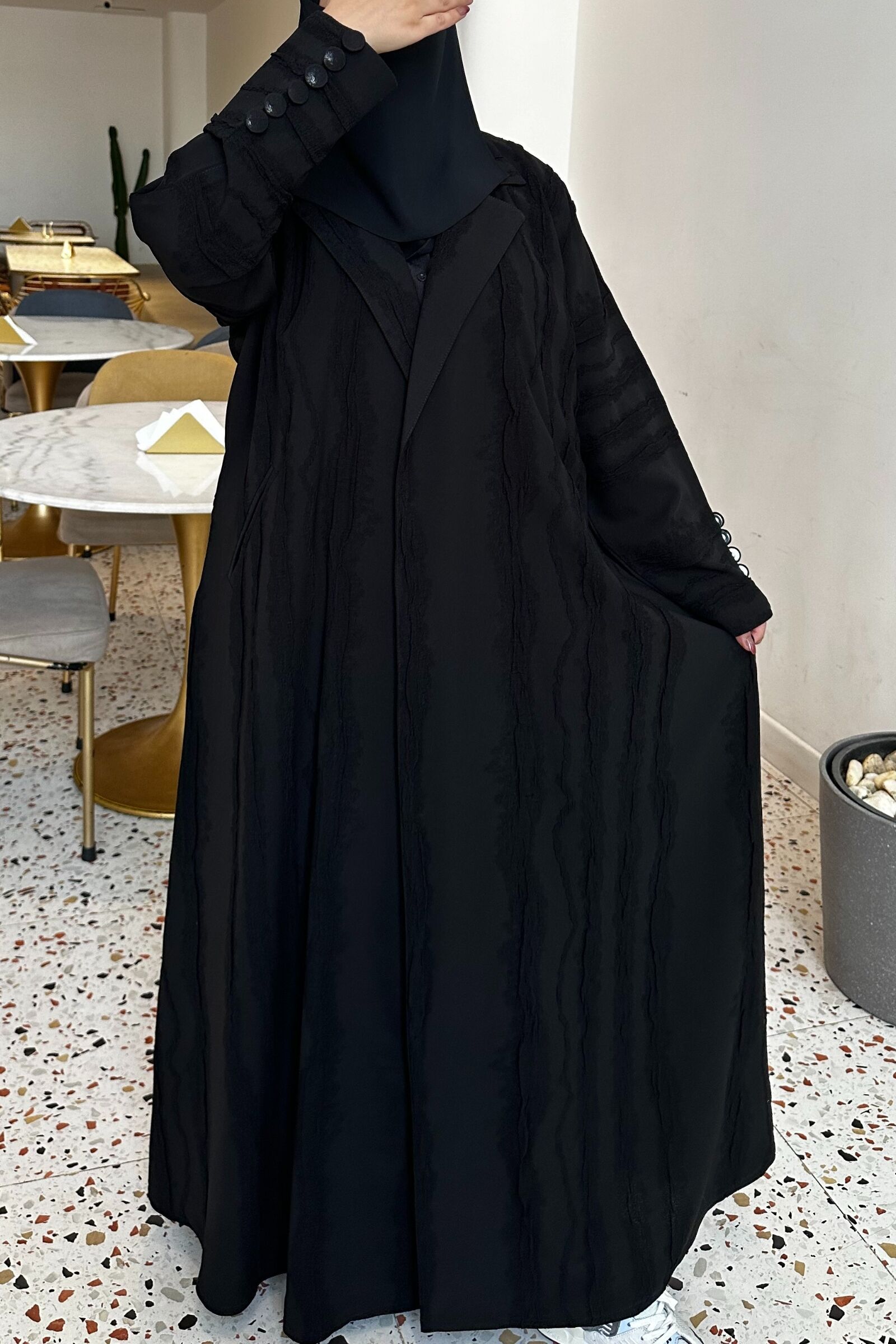 احصل على عباية كلوش بقصه مميزه ناعم بقماش ناعمه الفخمة لإضفاء لمسة من الجاذبية والأناقة على إطلالتك.