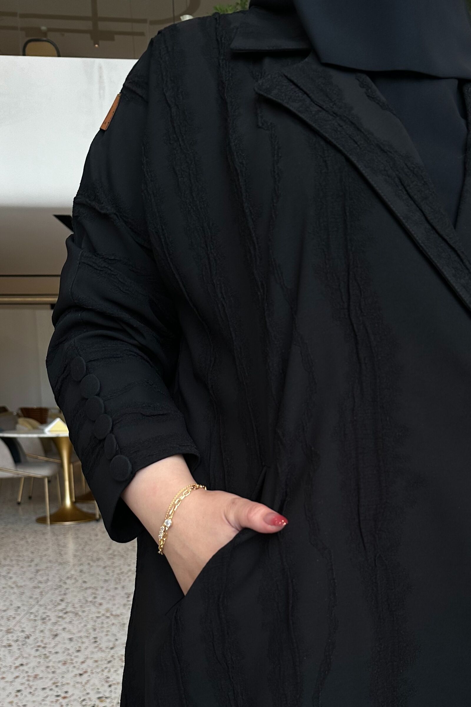 عبايه فكرو لياقه و جيوب بزراير على اكمام