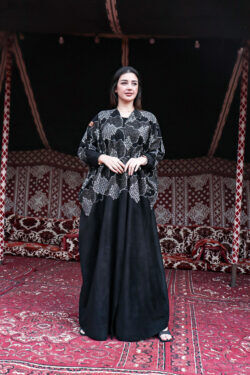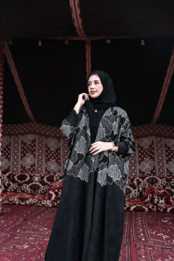 عباية نص بشت شمواه بتطرير اسود على الاكتاف بتطريز على شكل جذور