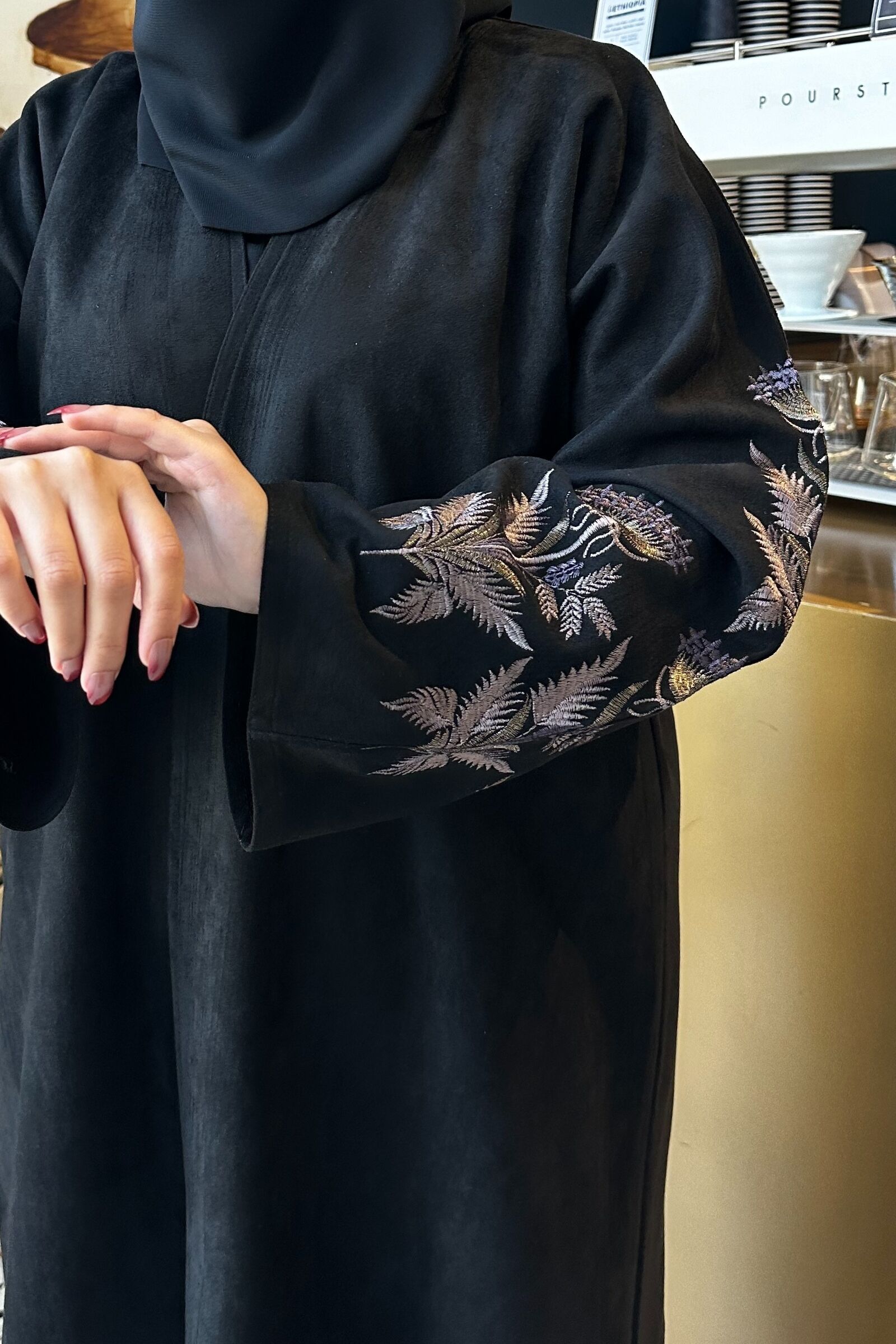 عبايه شتويه بتصميم انيق على اكمام بنحاسي و اسود