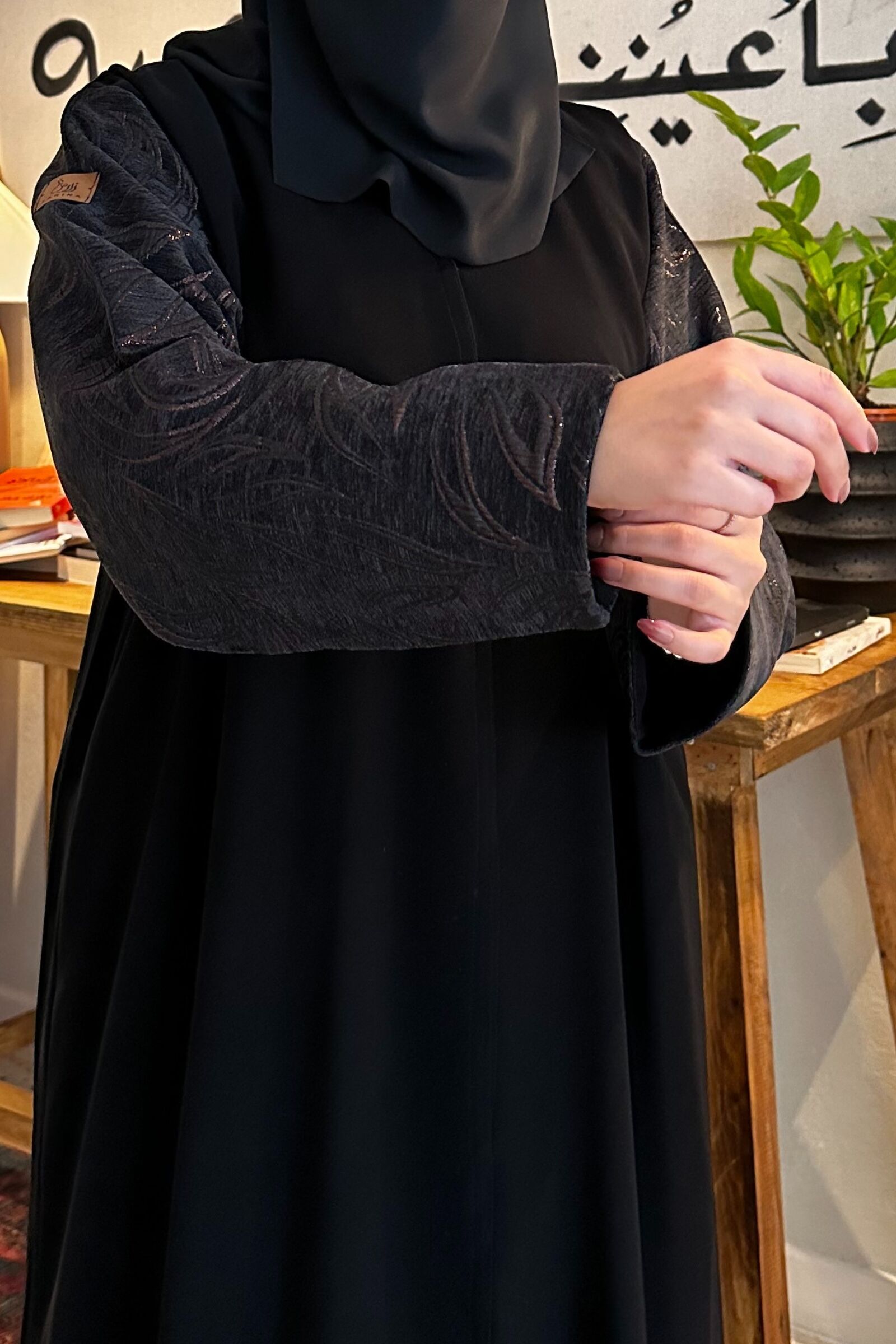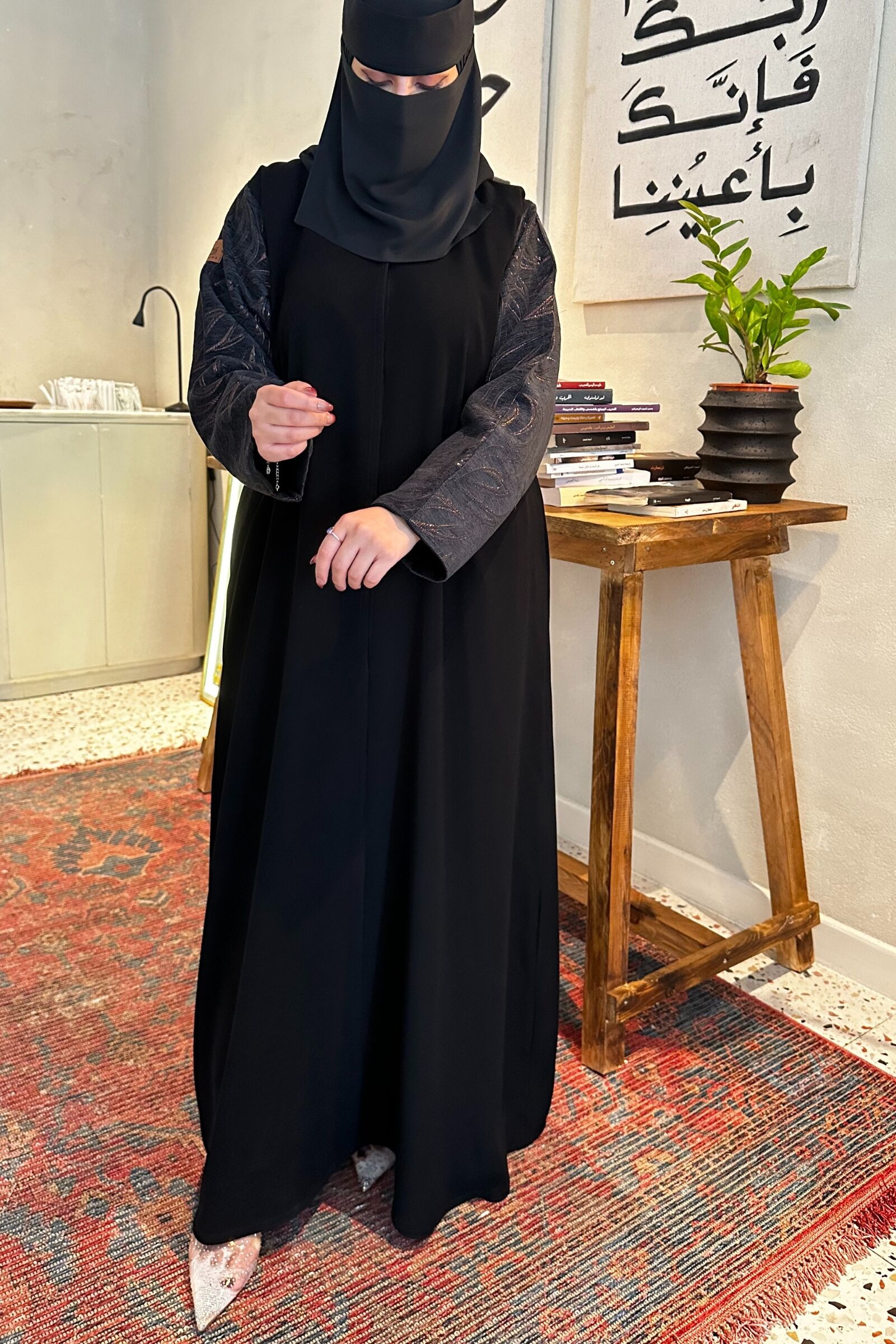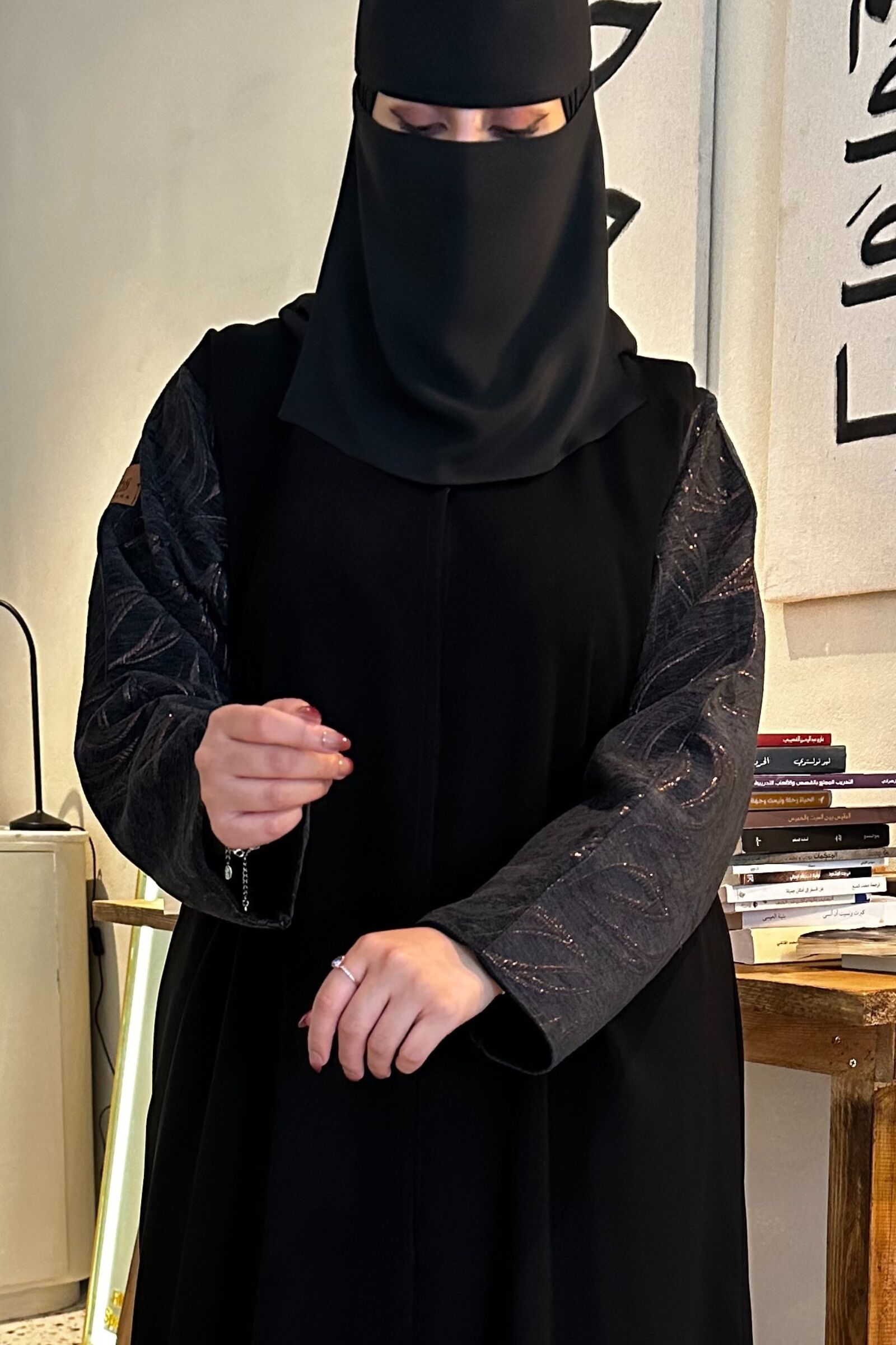 عبايه بدقات بكم مفصول مشجره بلاسود و نحاسي