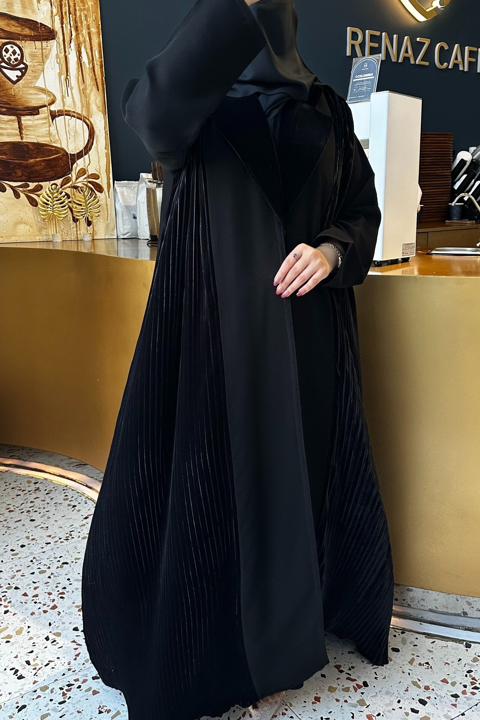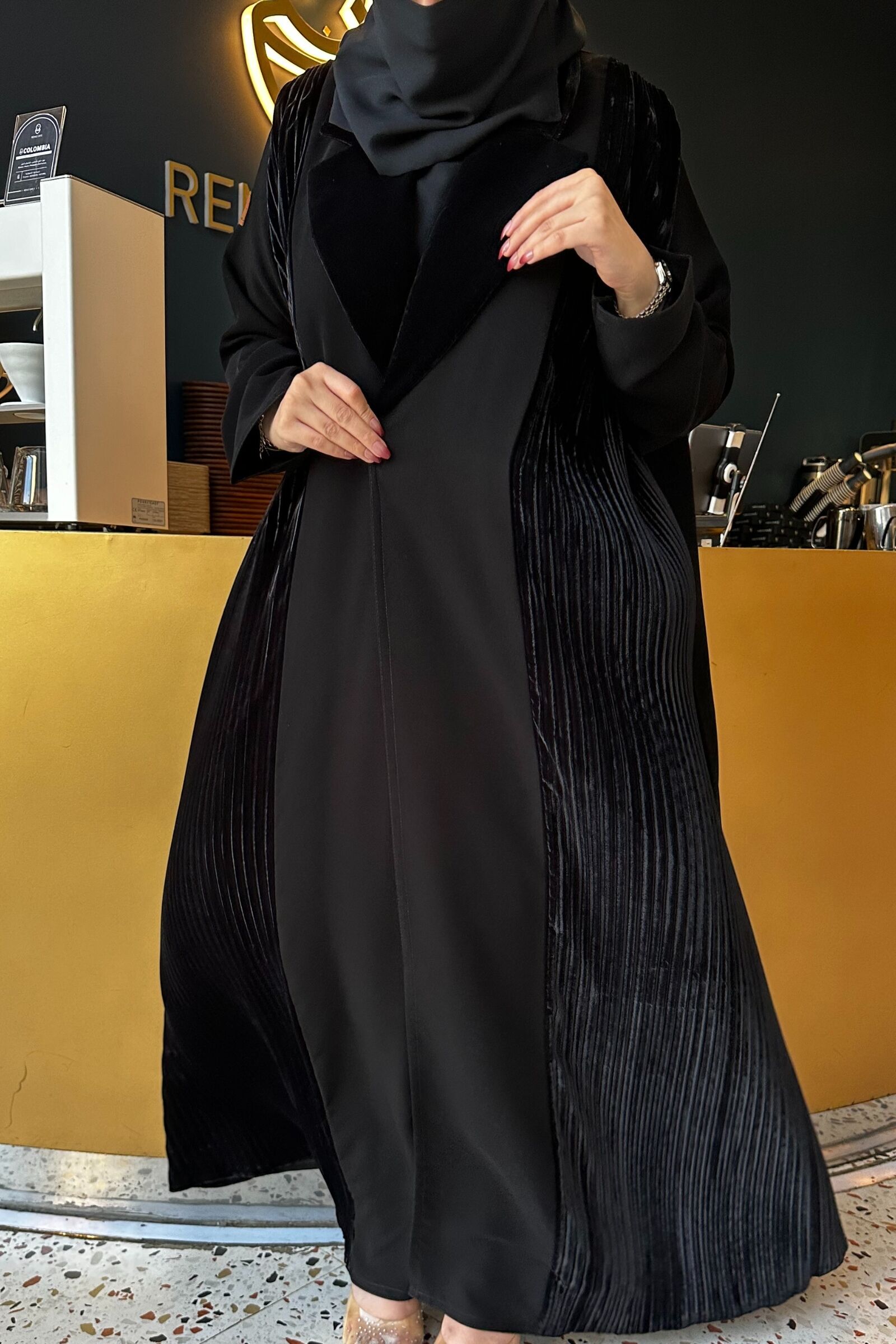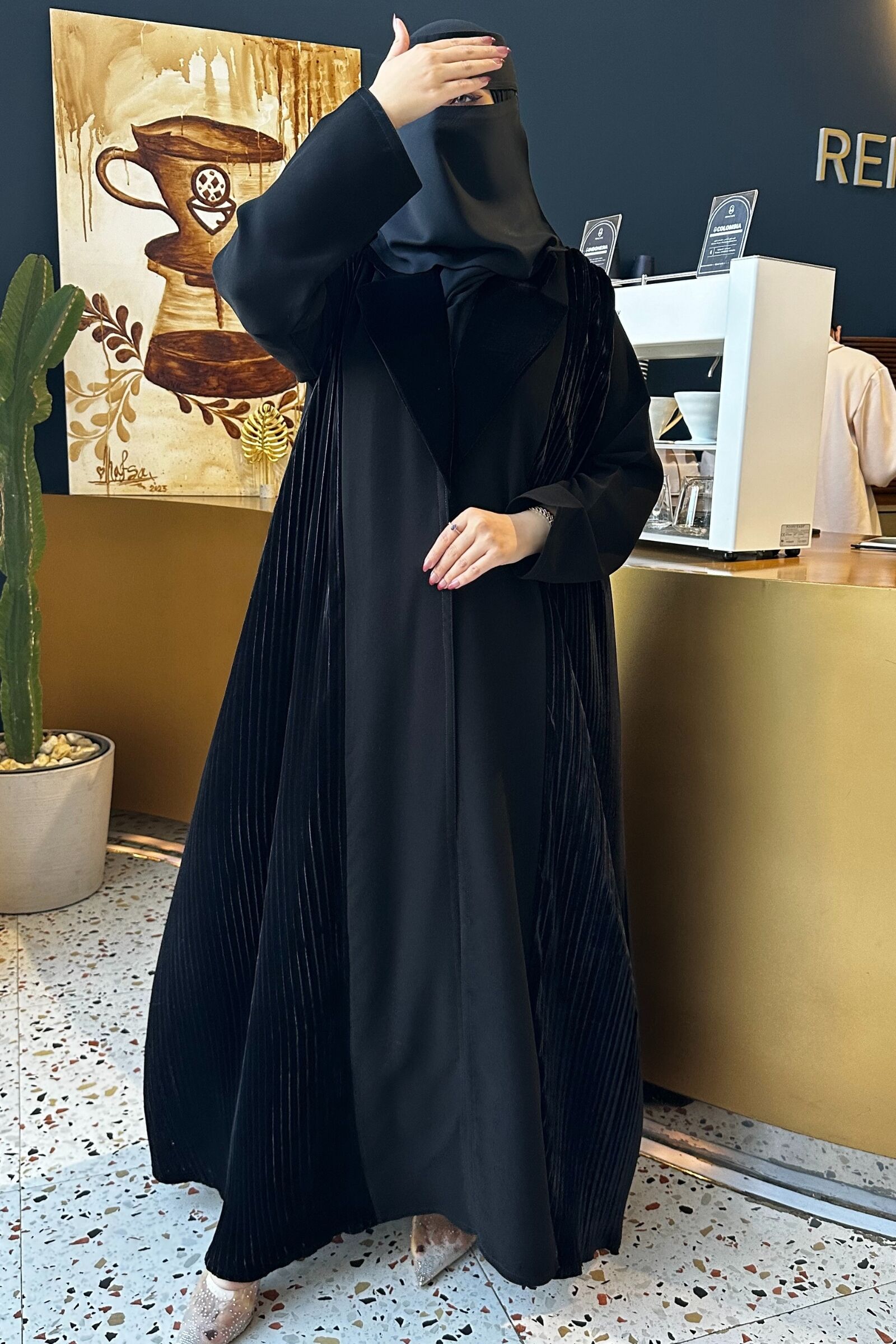 فخامة اللون الأسود لا يضاهيها شيء ، فما بالك بعبايه كلاسيك فخمه بتدخل قماش مكسر بمخمل، مصممه بإبداع من قماش الماس عالي الجودة ، وخطوط مبتكر و مميزة بلون اسود من اجناب ليعطي شكل مميز ، ستكون اكثر عباية سوداء ، تناسب مختلف المناسبات و الأوقات و دوام .