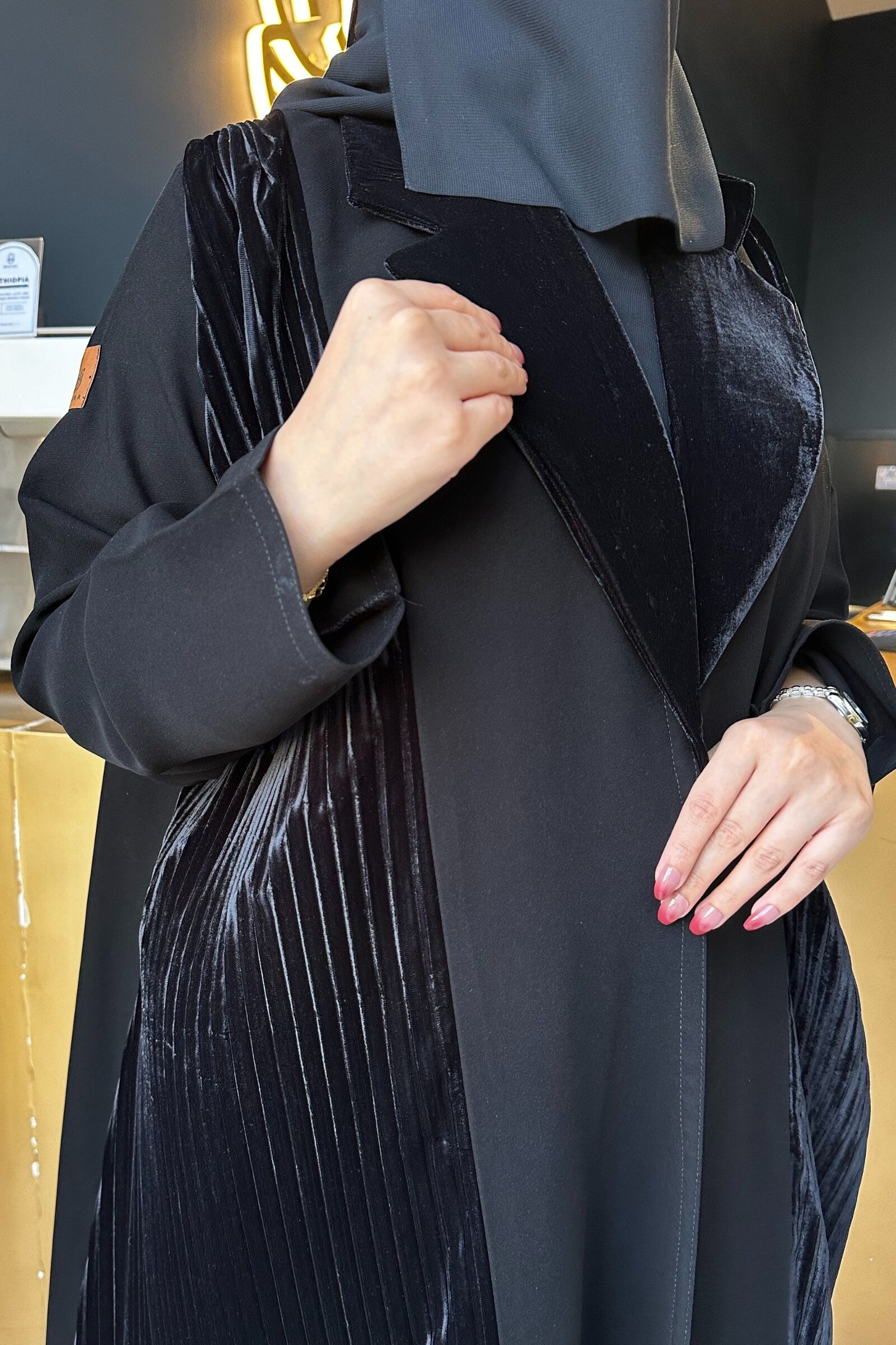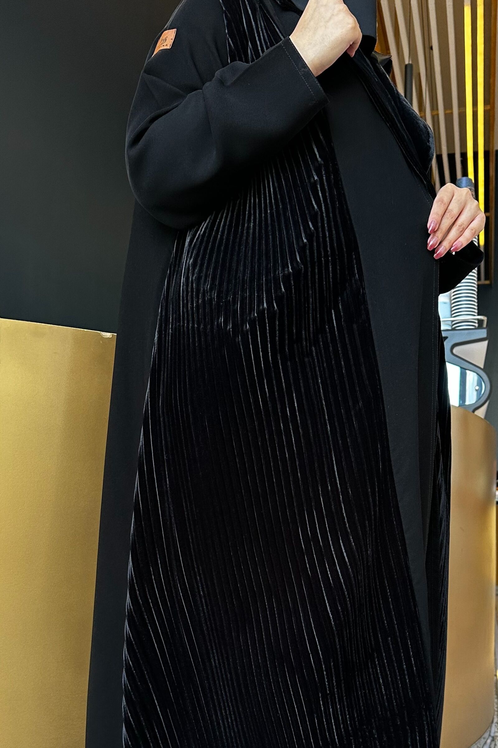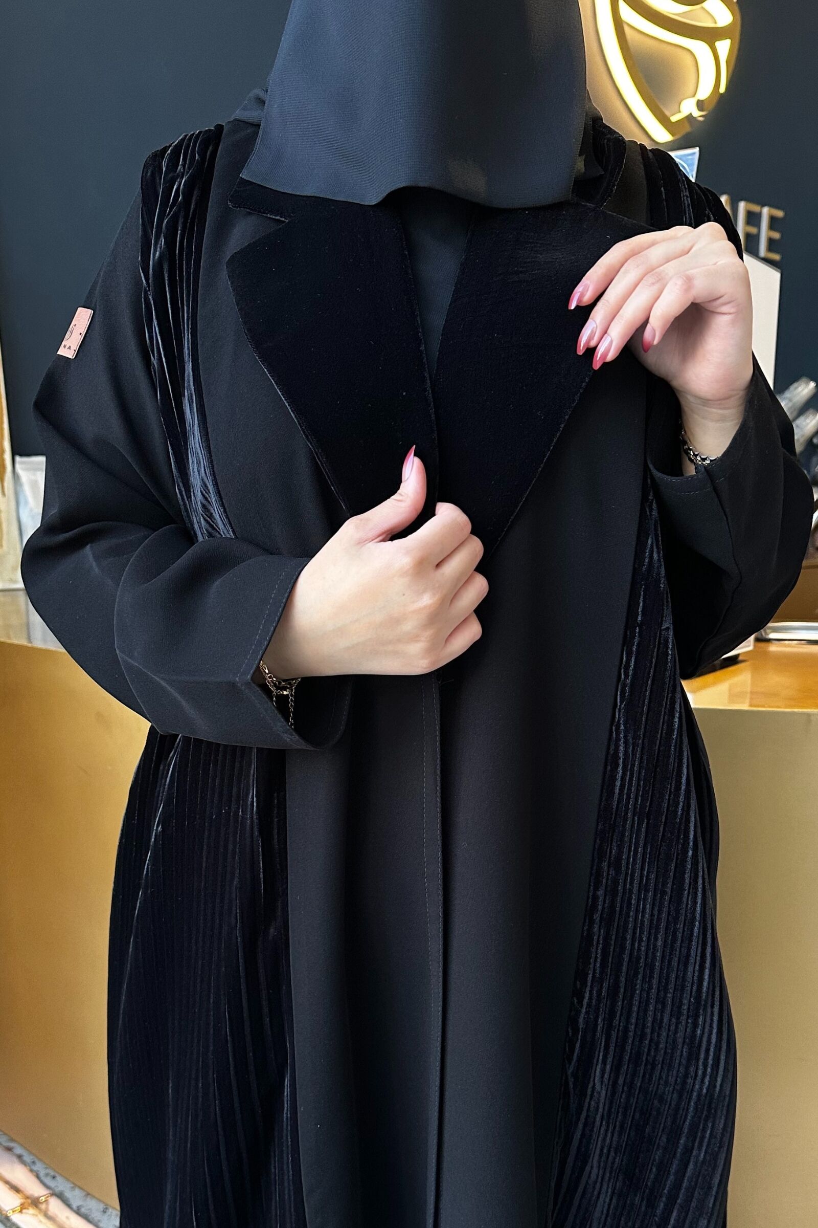 فخامة اللون الأسود لا يضاهيها شيء ، فما بالك بعبايه كلاسيك فخمه بتدخل قماش مكسر بمخمل، مصممه بإبداع من قماش الماس عالي الجودة ، وخطوط مبتكر و مميزة بلون اسود من اجناب ليعطي شكل مميز ، ستكون اكثر عباية سوداء ، تناسب مختلف المناسبات و الأوقات و دوام .