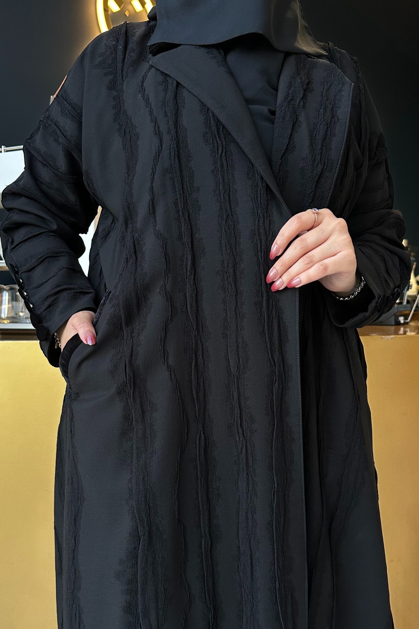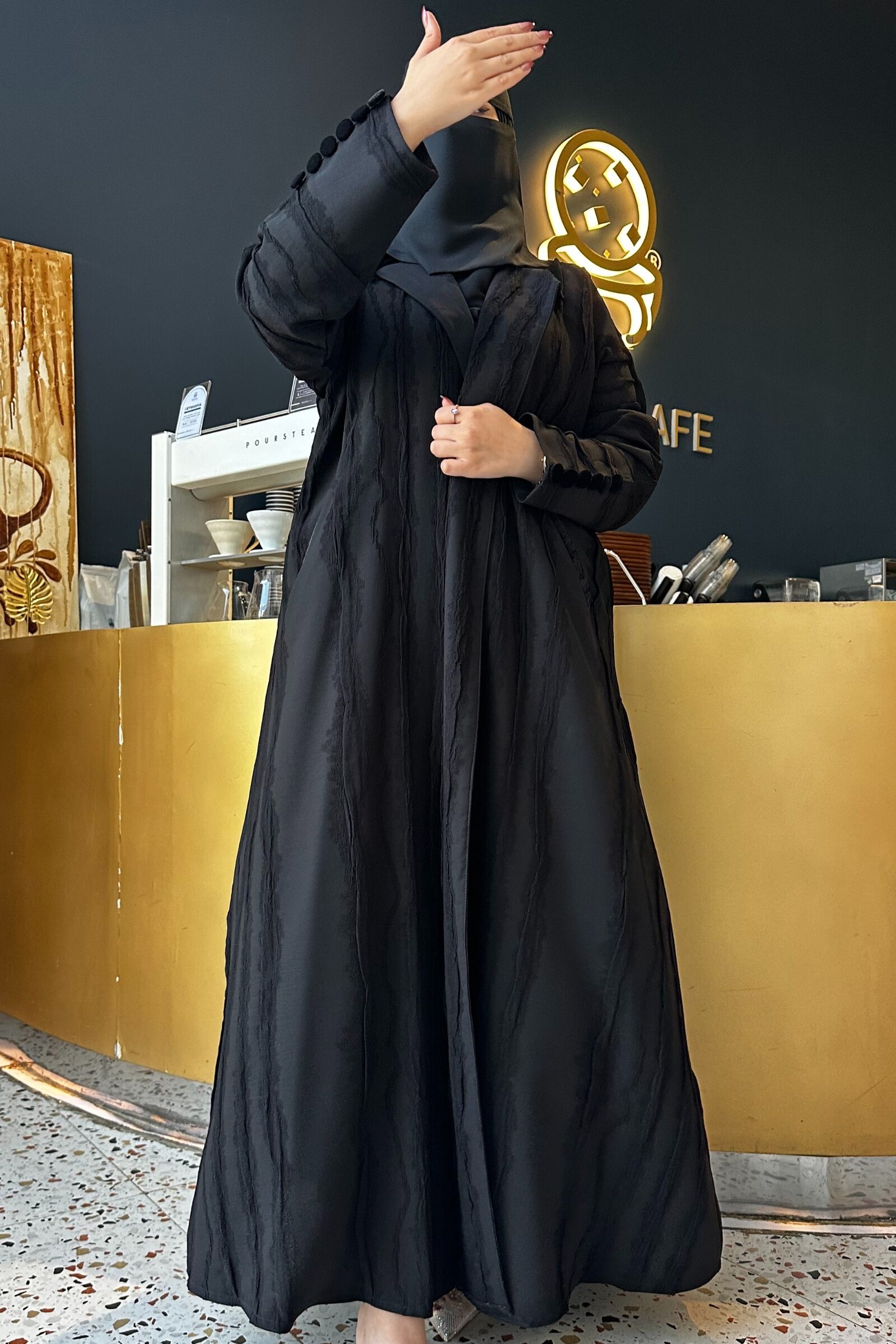 احصل على عباية كلوش بقصه مميزه ناعم بقماش ناعمه الفخمة لإضفاء لمسة من الجاذبية والأناقة على إطلالتك.