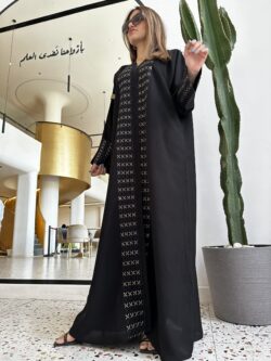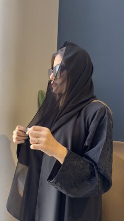 عبايه كتف مطرزه بخيوط اسود ناعم