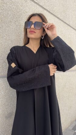 عباية ازدهار مزينة على الأكمام بلون الاسود
