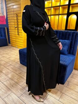 عبايه مزينه بتطريز مخفي بلون نحاس واسود من امام وكم