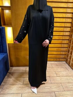 عبايه بشك زاهية على اكمام بلون اسود