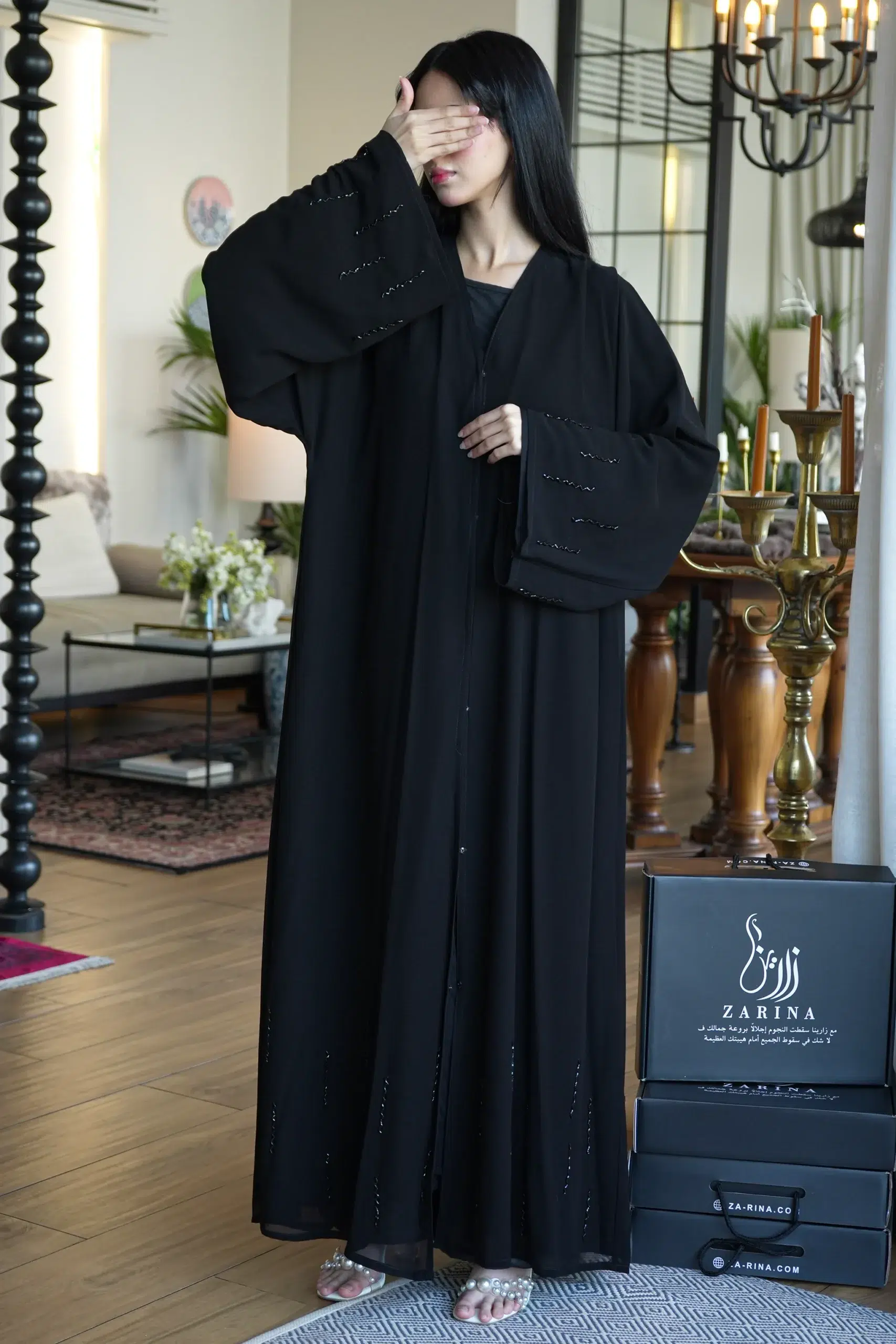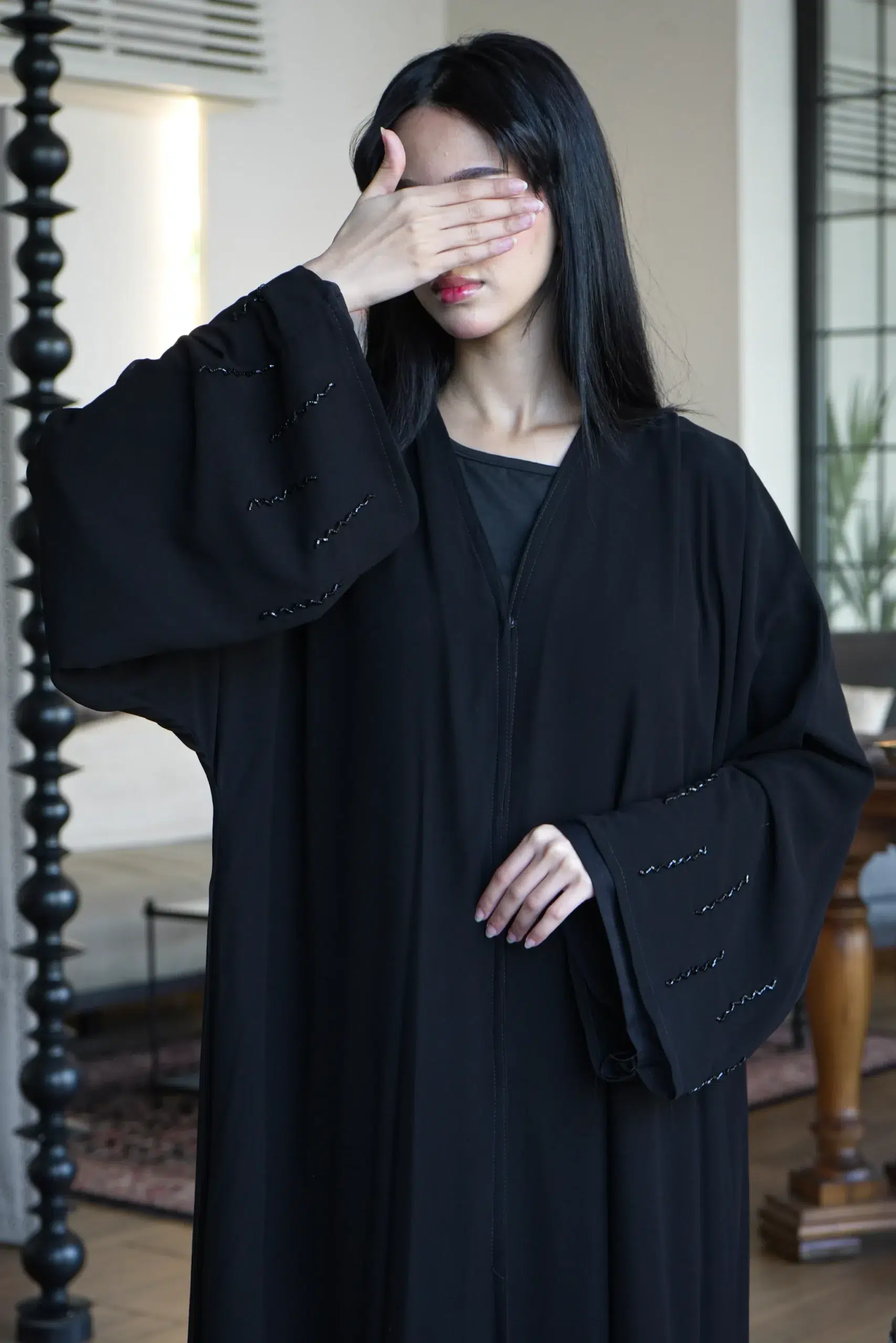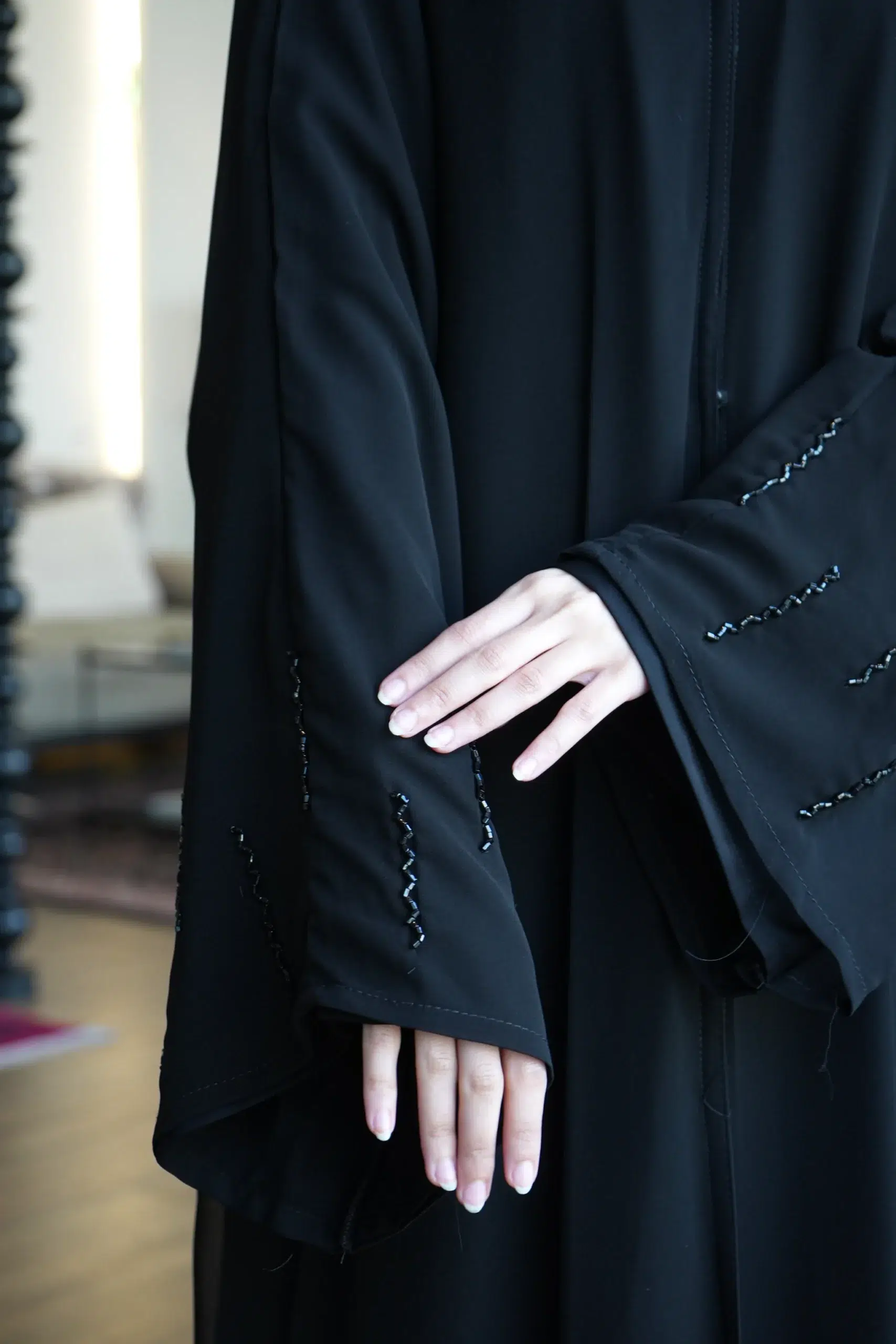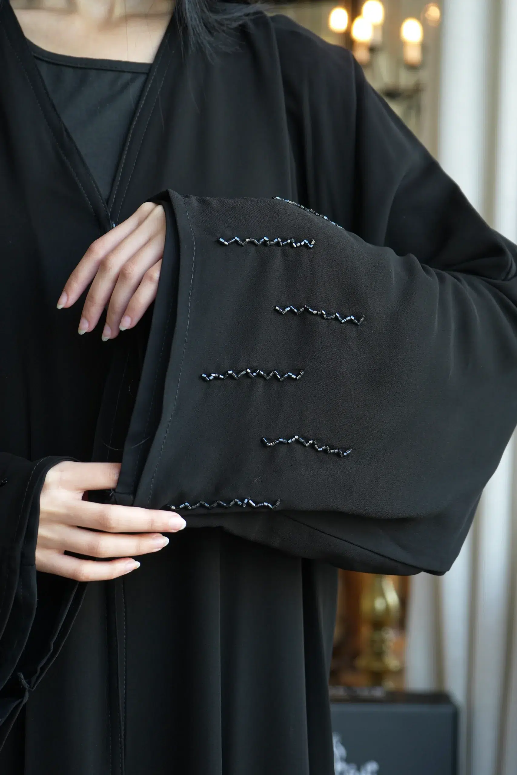 عباية بطبقة داخلية مع ربطة جانبية بكم جلد مفتوحة