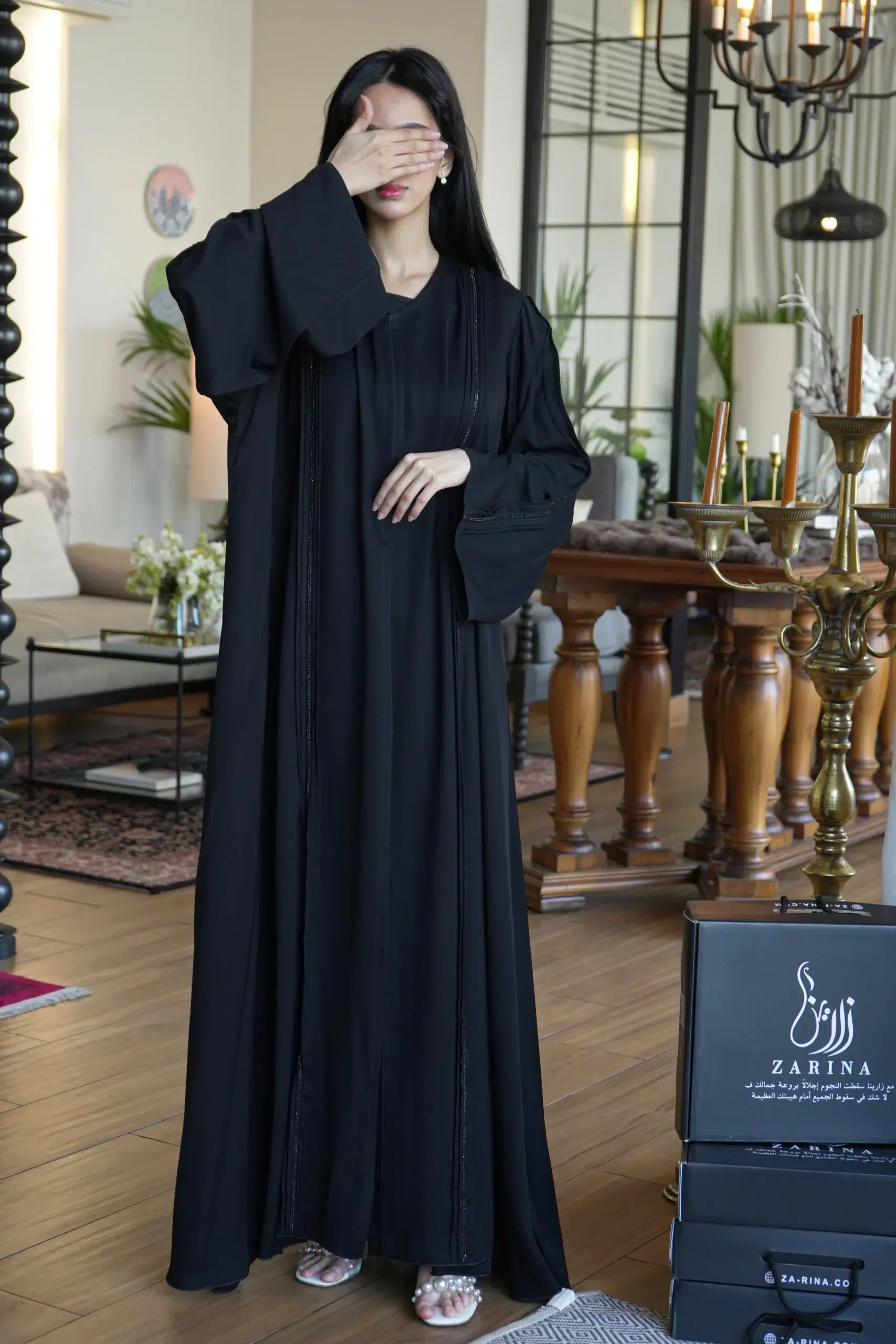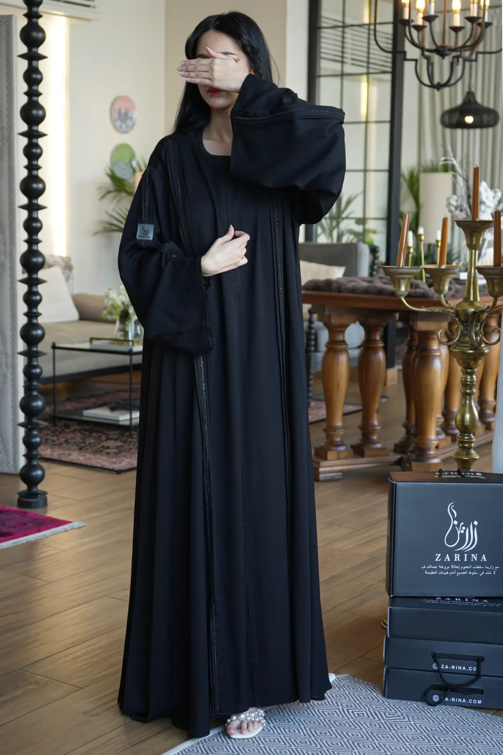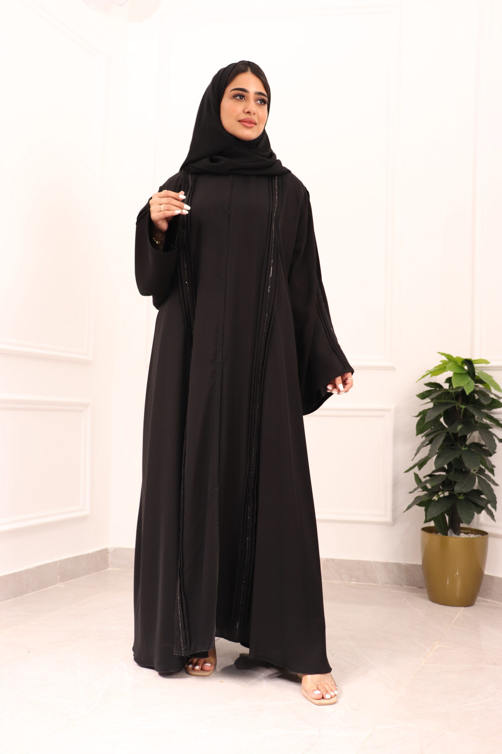 عباية كلوش بدقات زري و شريط فصوص اسود
