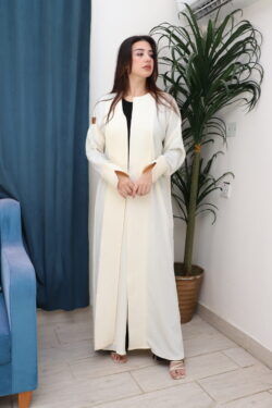 عباية ثلاث قطع بيج طقم قماش كريب واقف